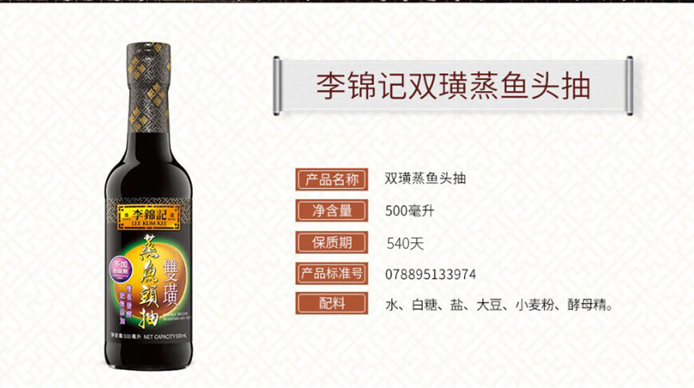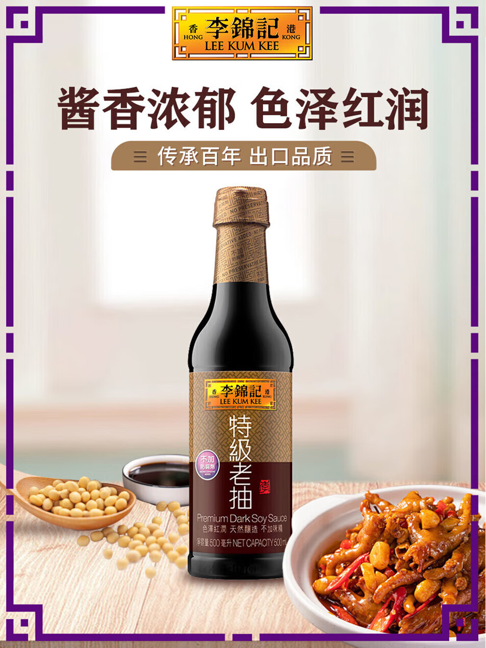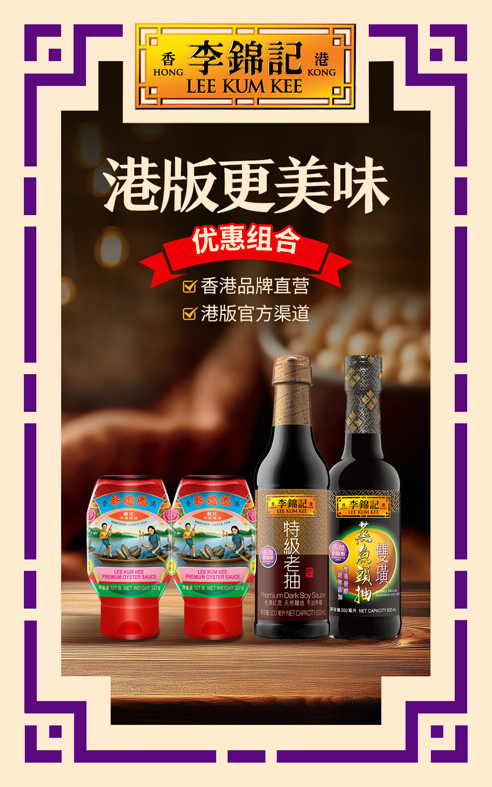 李锦记【港版经典调味组合】特级老抽+旧庄蚝油2支+双璜蒸鱼头抽 家用