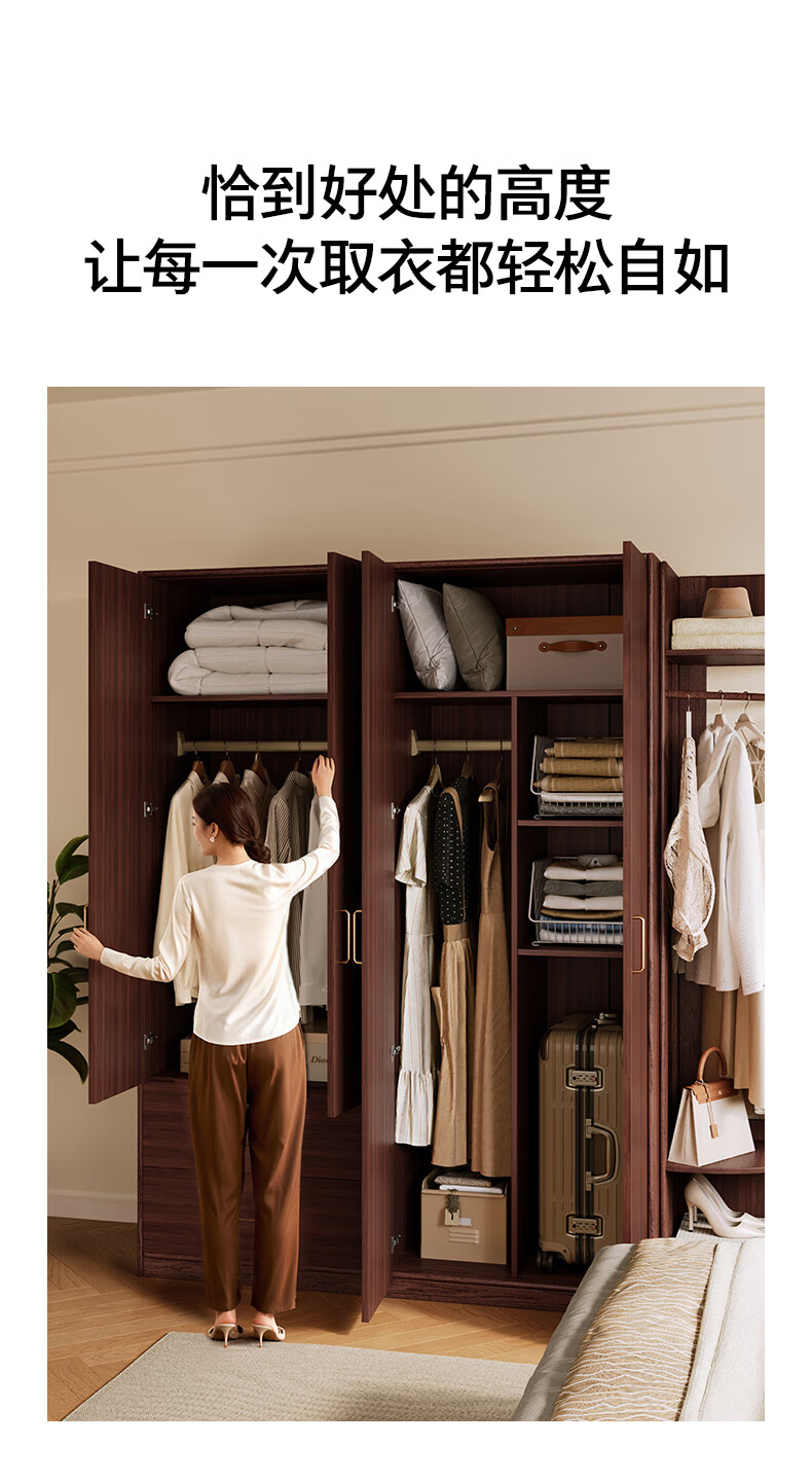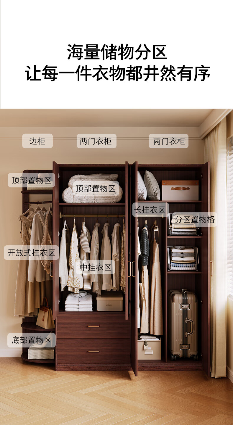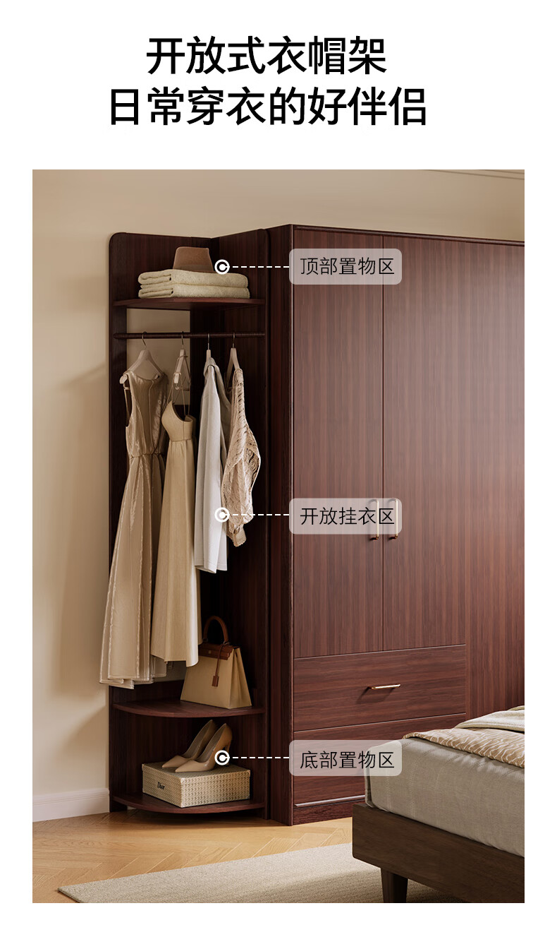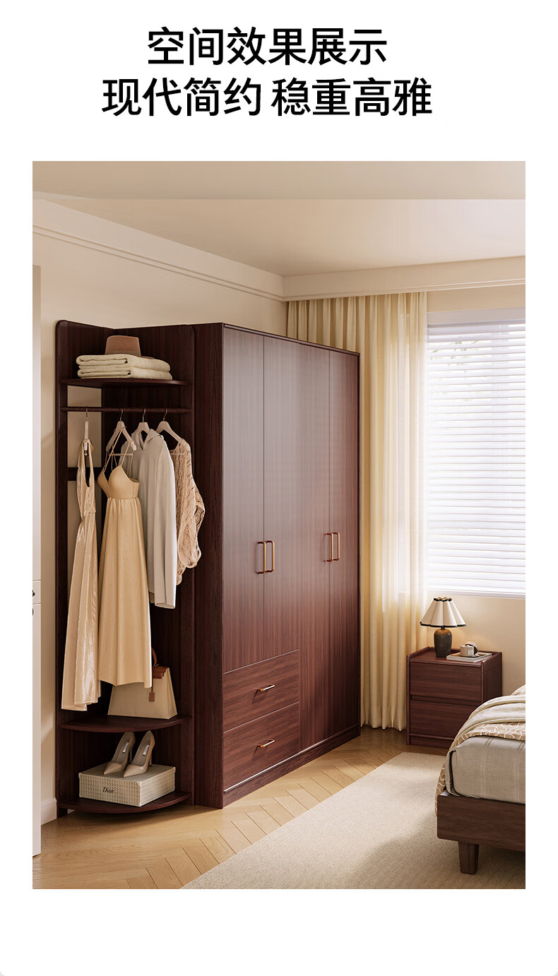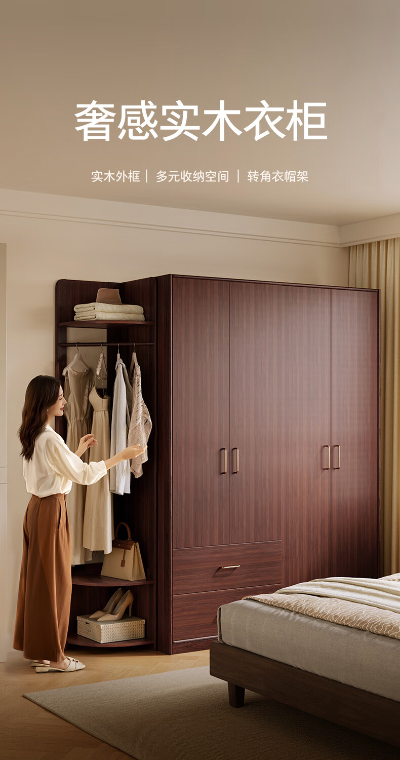 顾家家居(KUKA)轻奢风实木衣柜双层储物抽屉开放式衣架多元收纳空间DS8028GW 【宽2.05米】经典实木红胡桃色衣柜+实木开放式转角柜