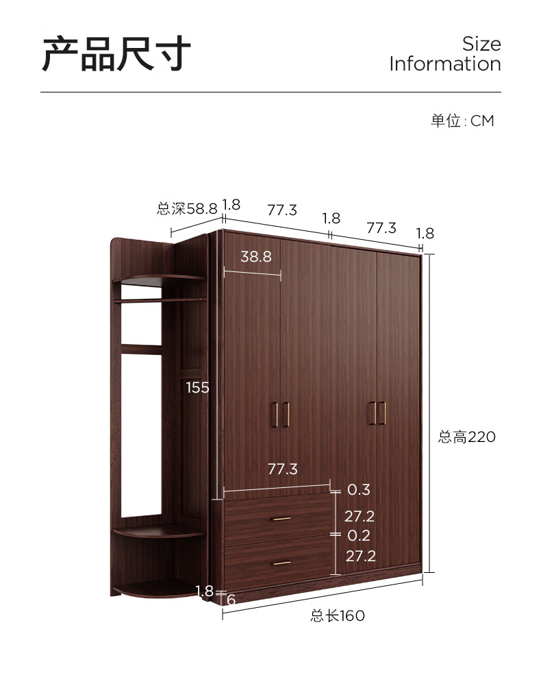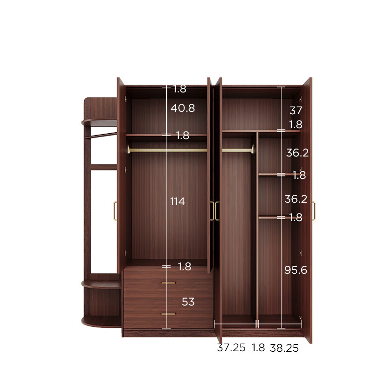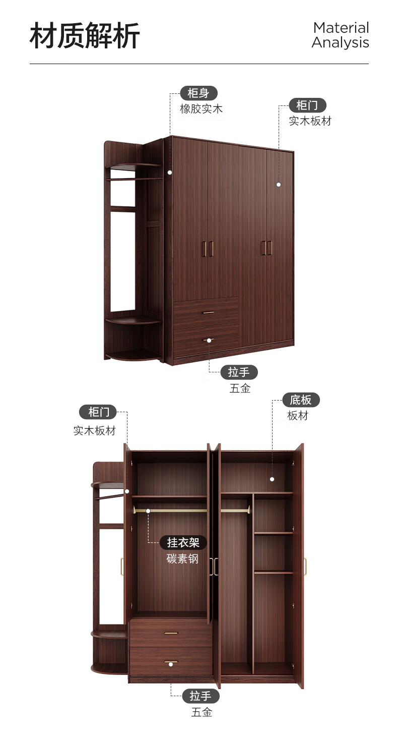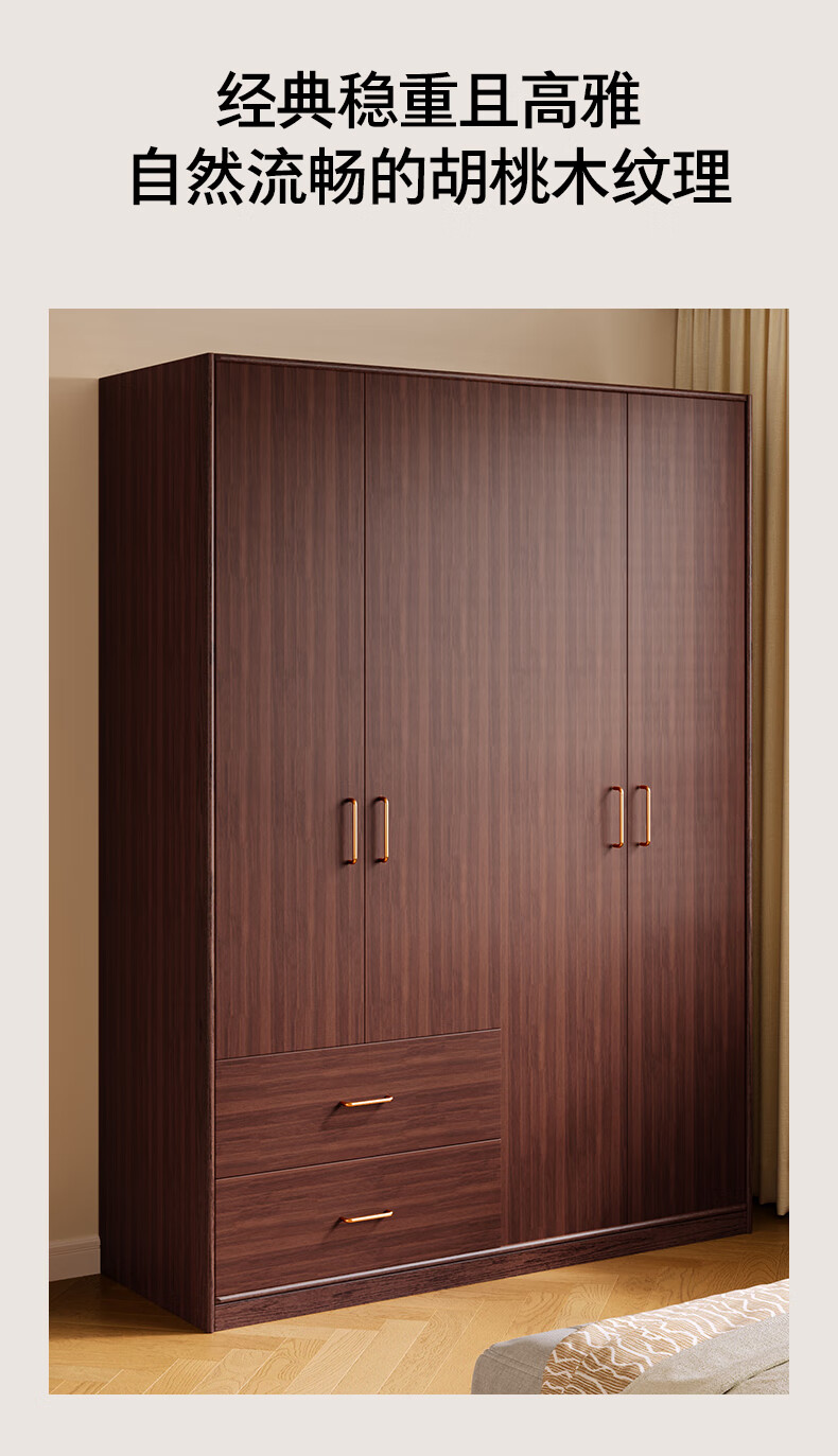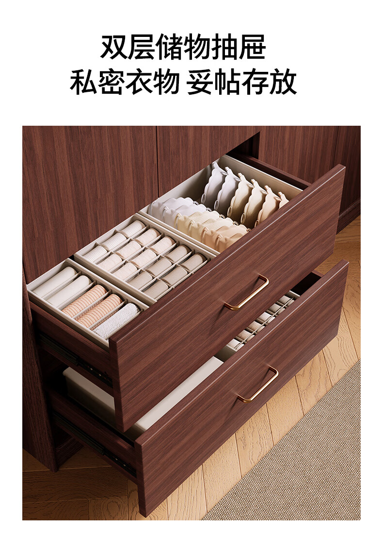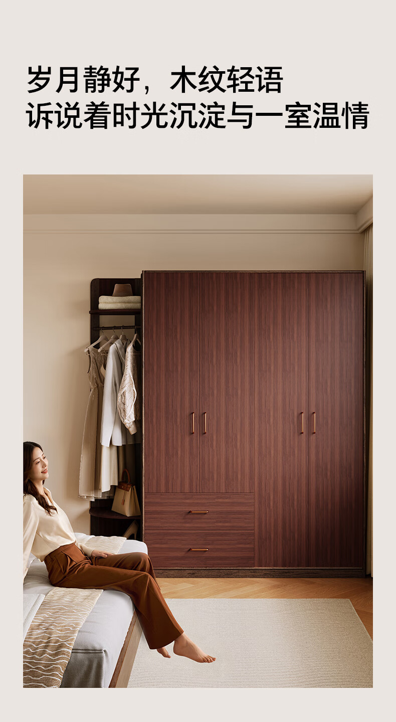 顾家家居(KUKA)轻奢风实木衣柜双层储物抽屉开放式衣架多元收纳空间DS8028GW 【宽2.05米】经典实木红胡桃色衣柜+实木开放式转角柜