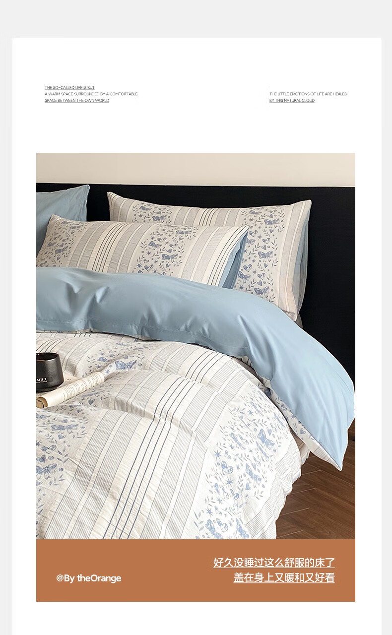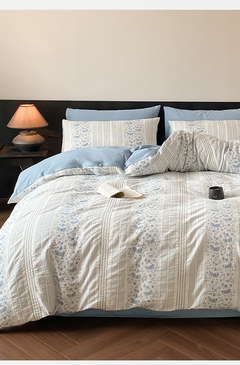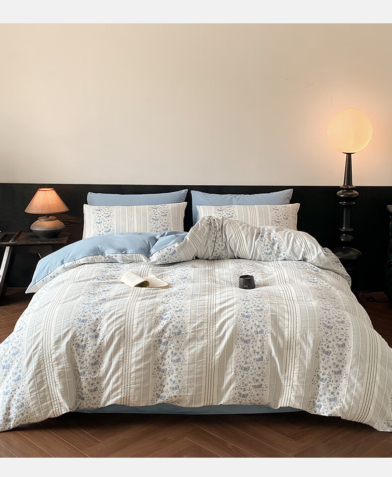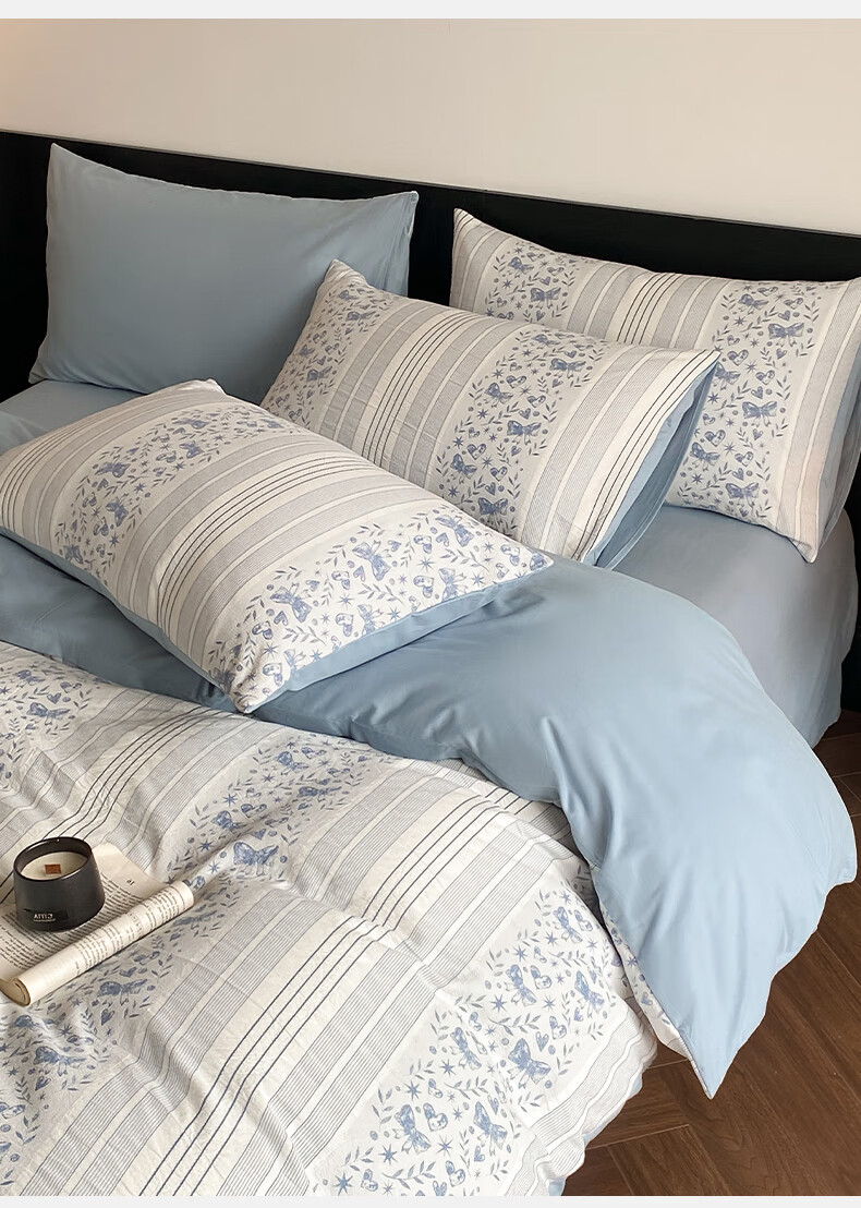 雅兰家纺 100%纯棉ins小清新花卉四件套裸睡床单被套床上用品亲肤套件 云梦 40支 床单款 丨1.5米四件套丨 被套203*230cm