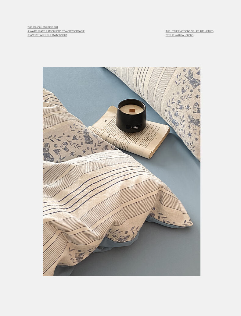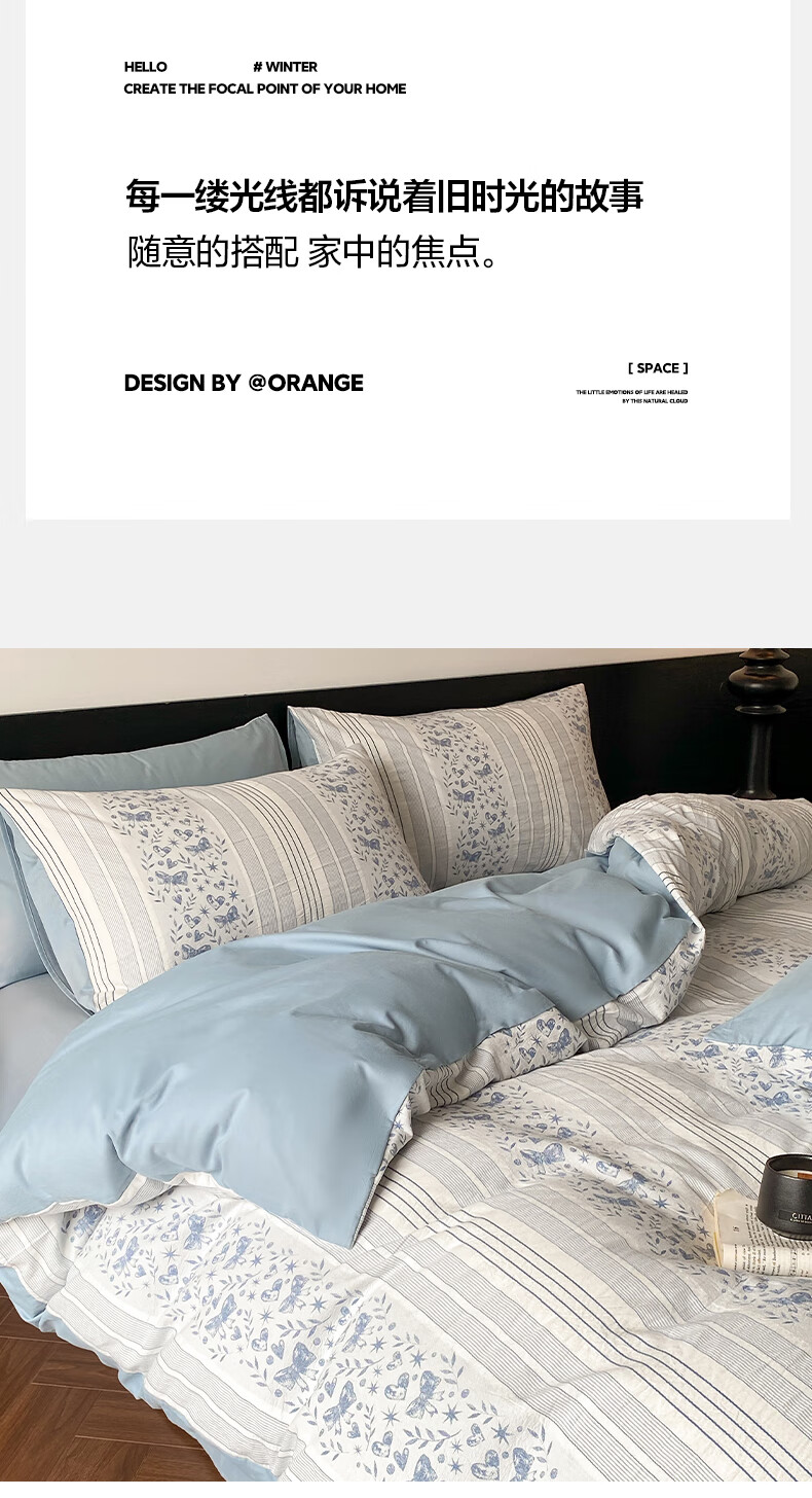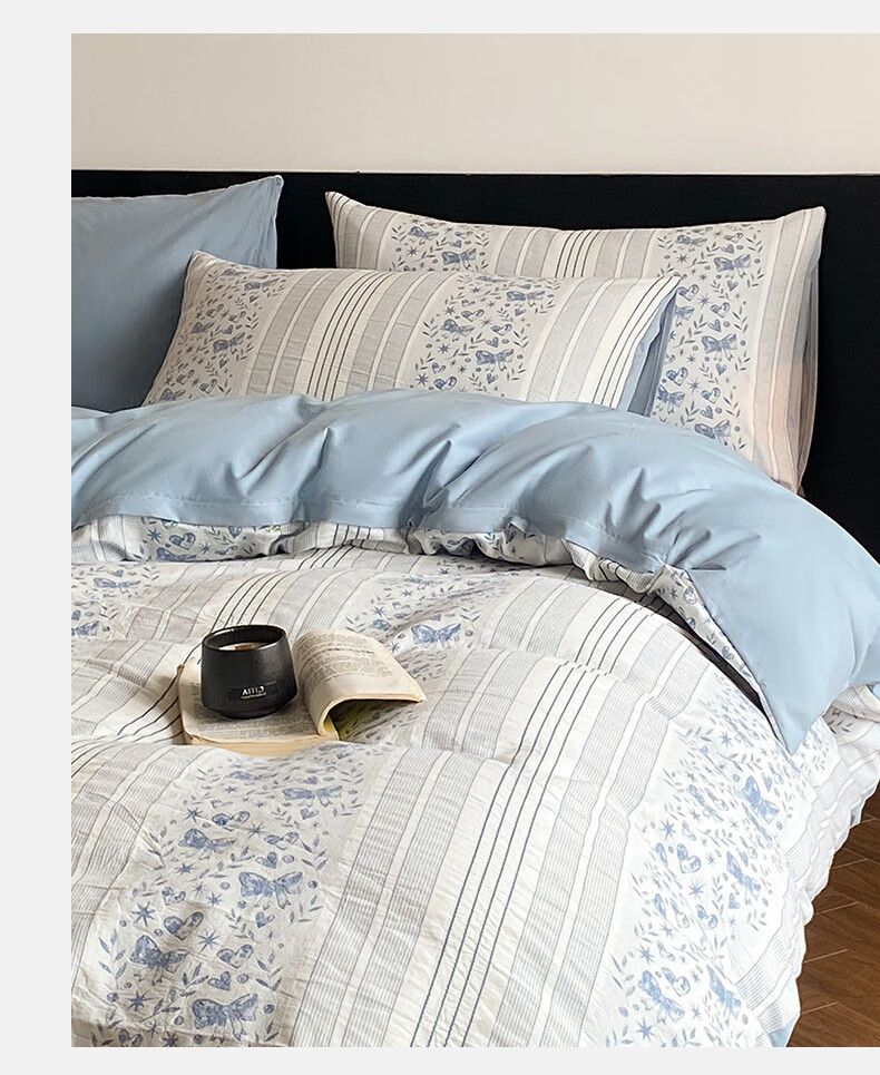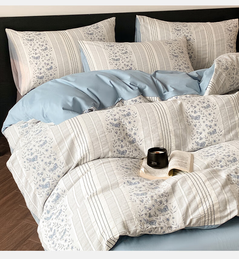 雅兰家纺 100%纯棉ins小清新花卉四件套裸睡床单被套床上用品亲肤套件 云梦 40支 床单款 丨1.5米四件套丨 被套203*230cm