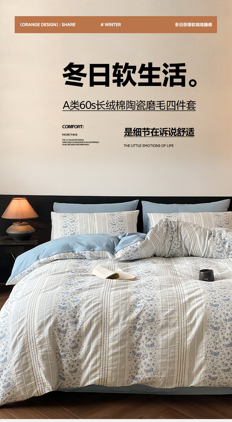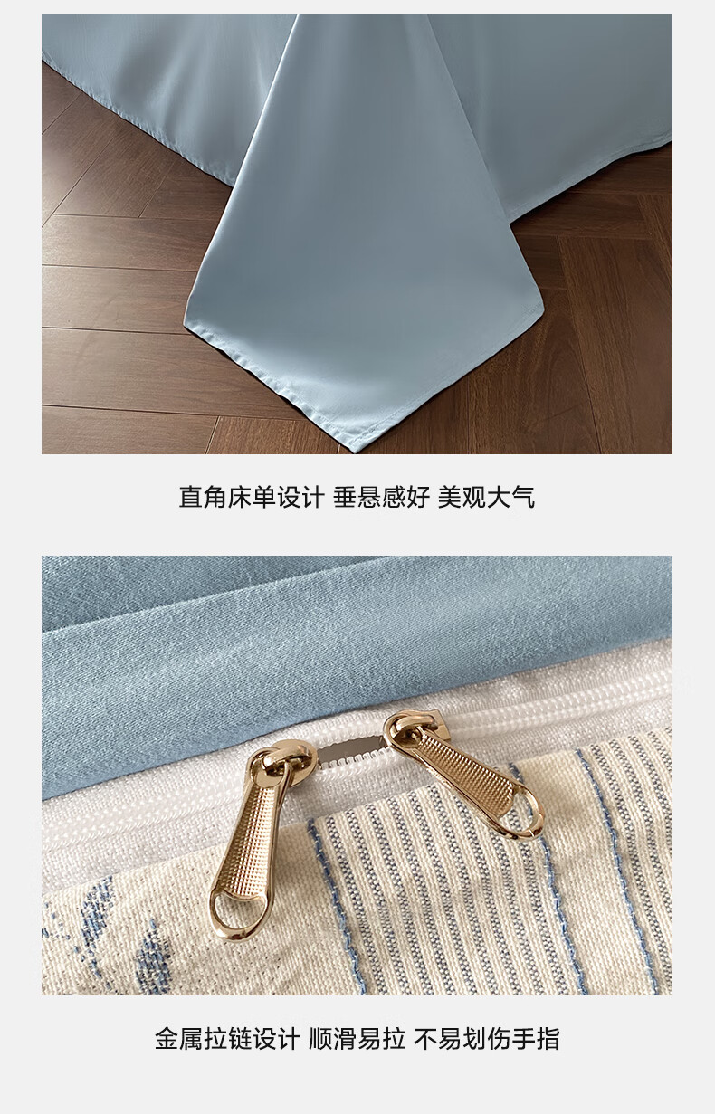 苏萱A类60s磨毛加厚全棉长绒棉四件套提花纯棉被套床单三件套床上用品 长矛-天青蓝 1.8m 床单款 四件套-被套200x230cm