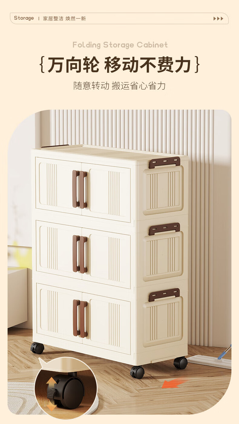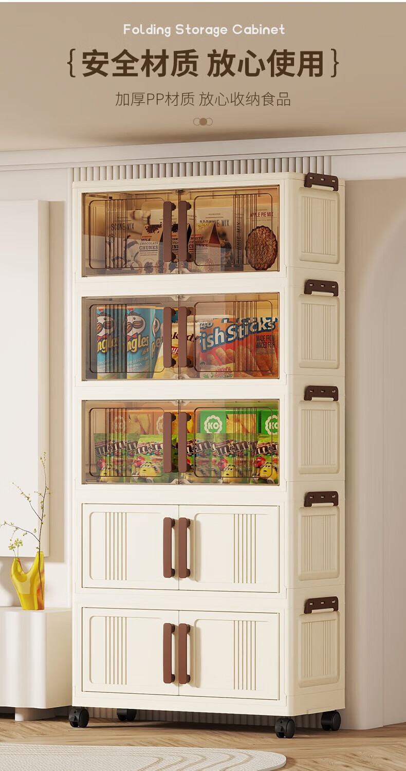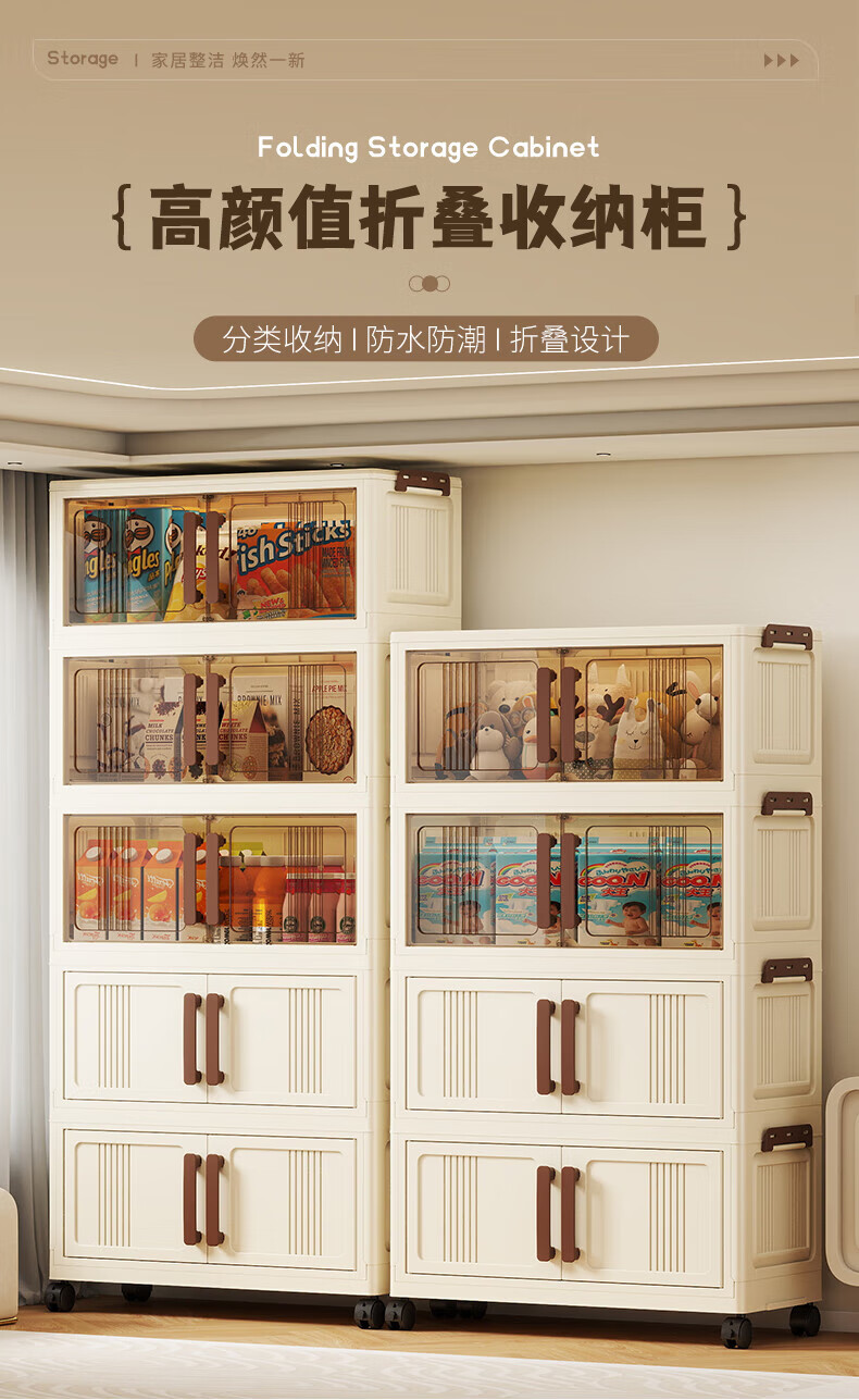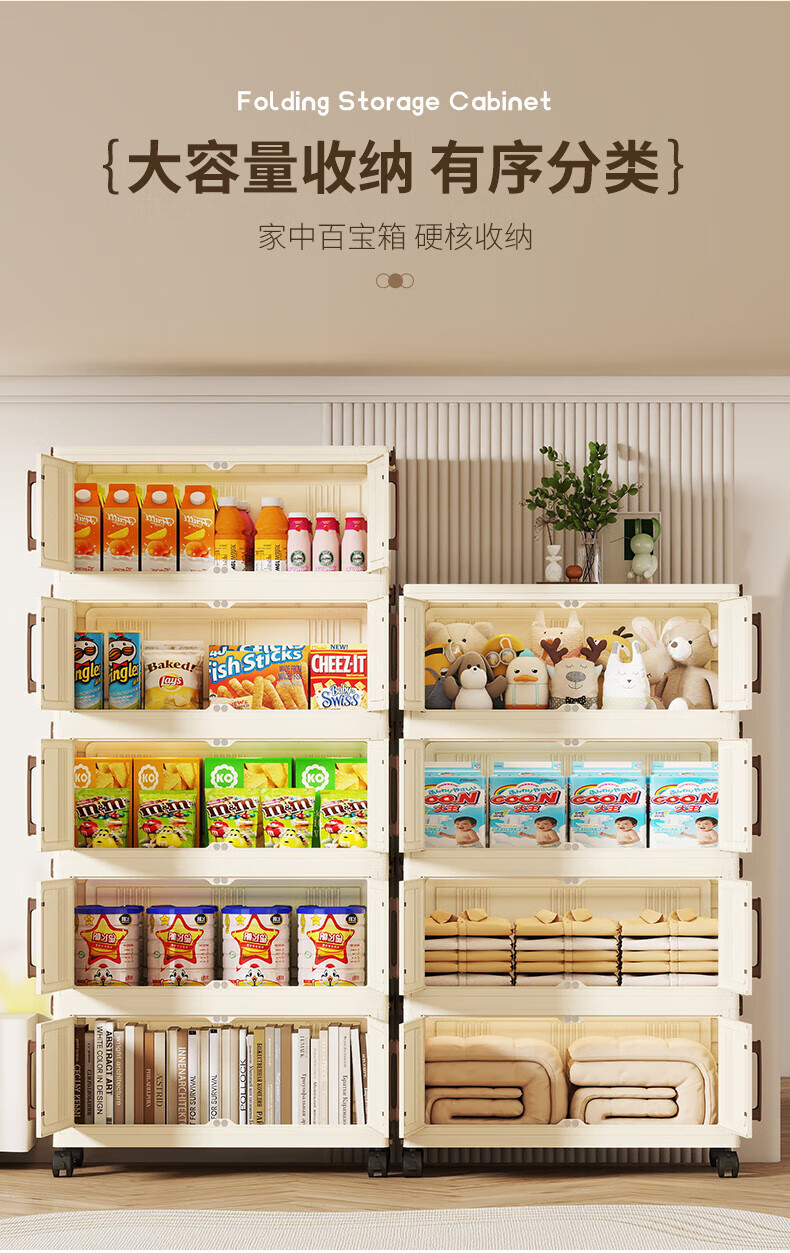纳份爱家用收纳柜客厅折叠储物柜零食杂物柜子衣物收纳箱多层床头储物柜 50面宽【奶白色】 5层 【超值推荐】热销爆款