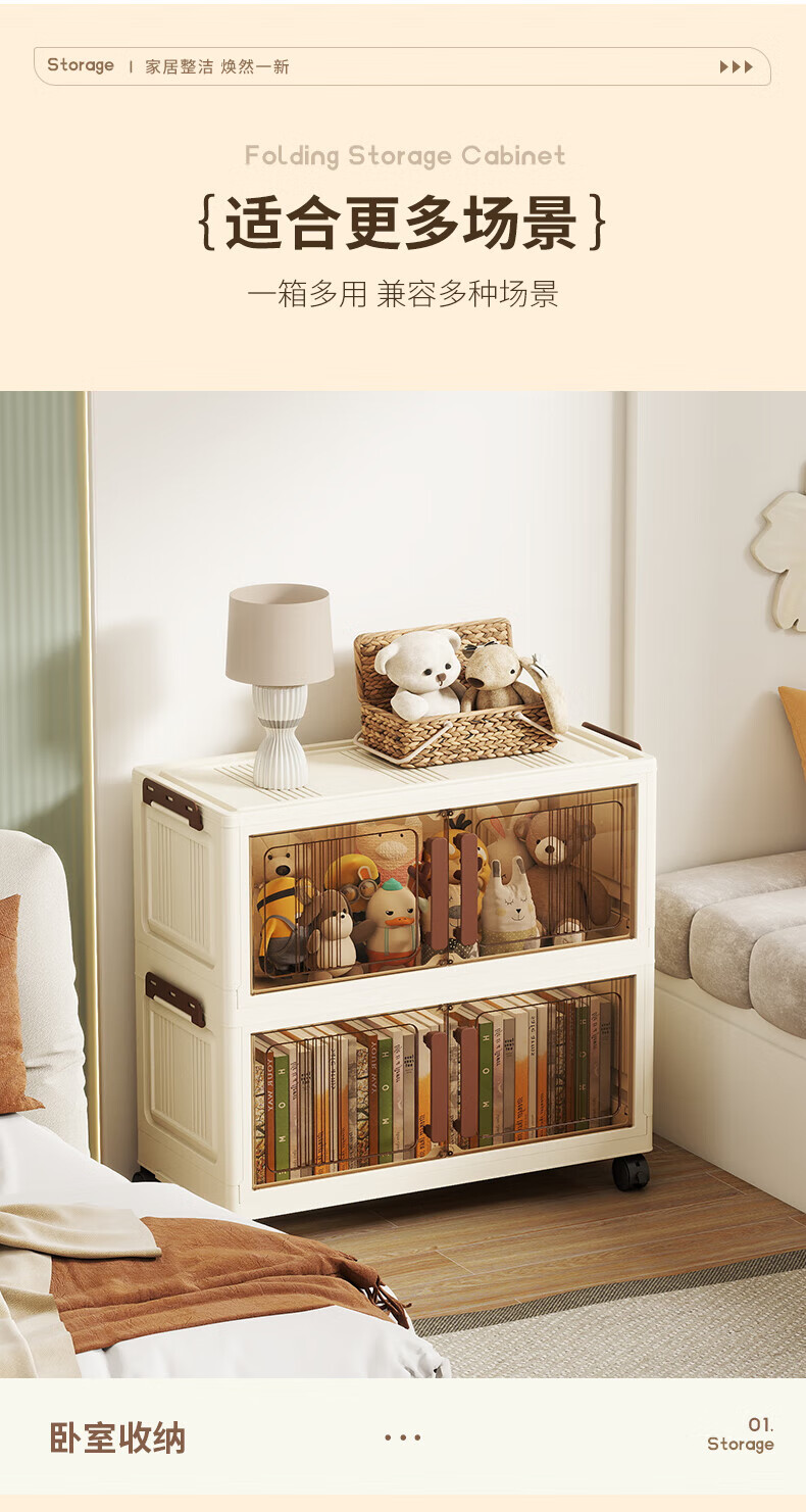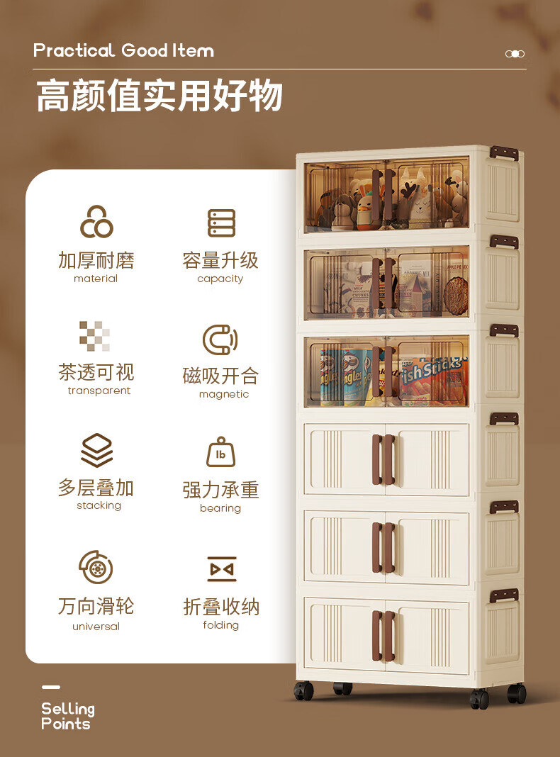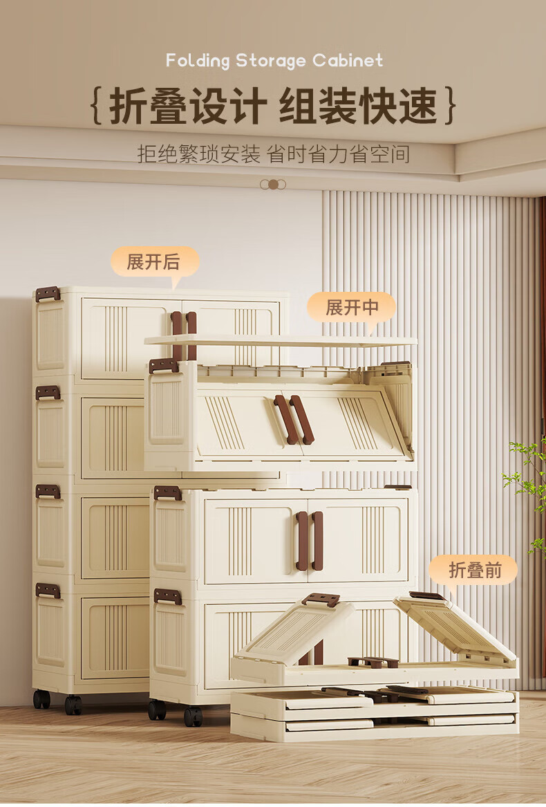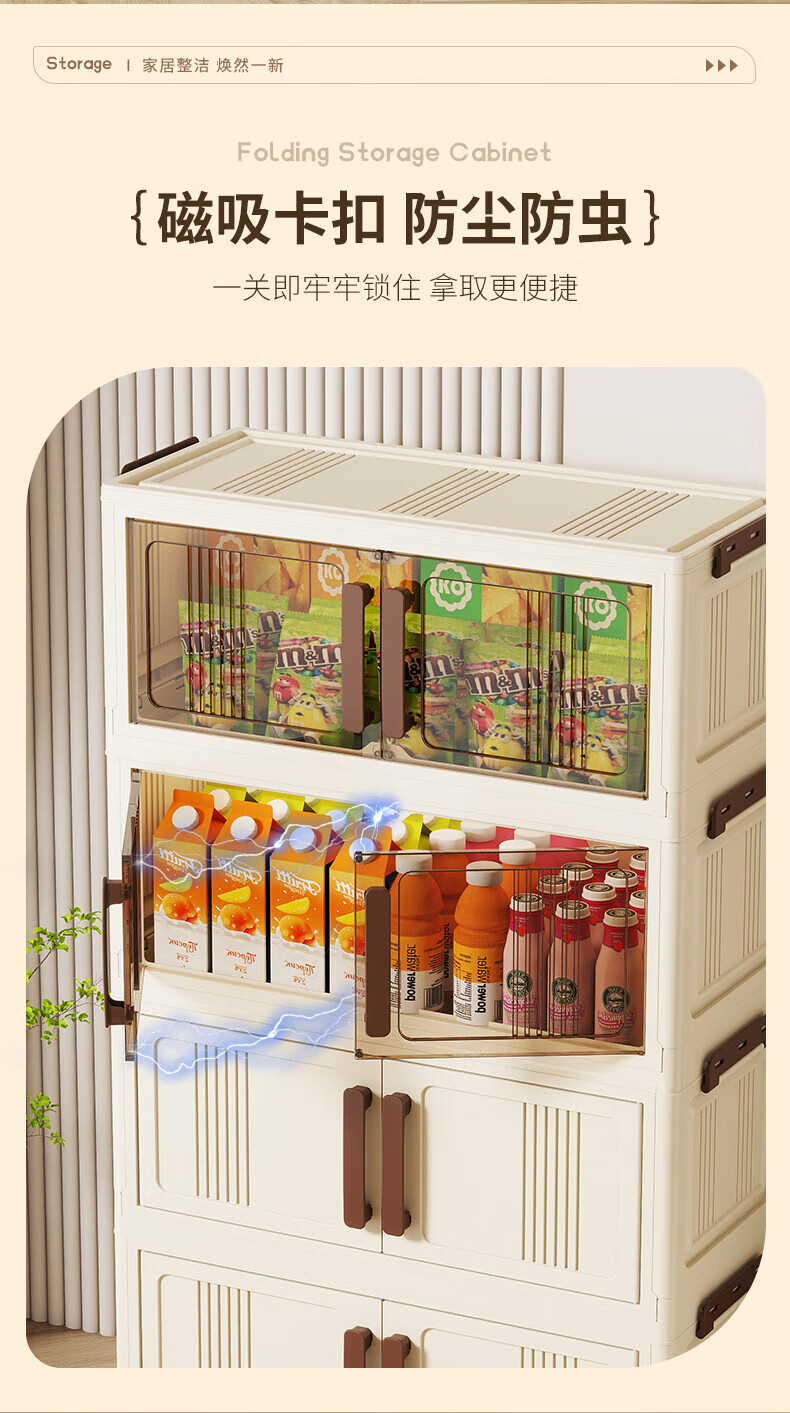 纳份爱家用收纳柜客厅折叠储物柜零食杂物柜子衣物收纳箱多层床头储物柜 50面宽【奶白色】 5层 【超值推荐】热销爆款