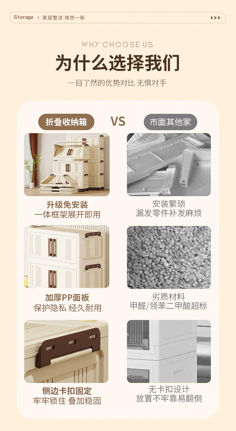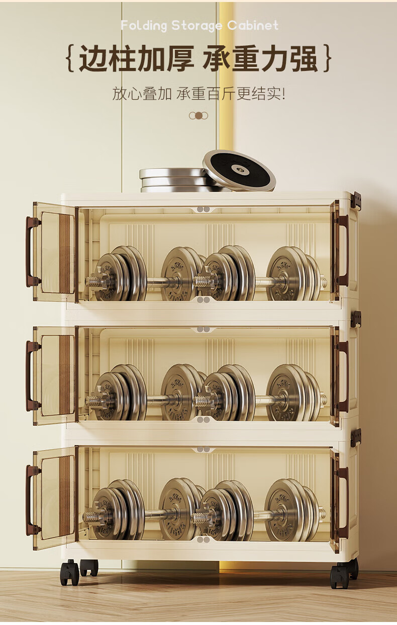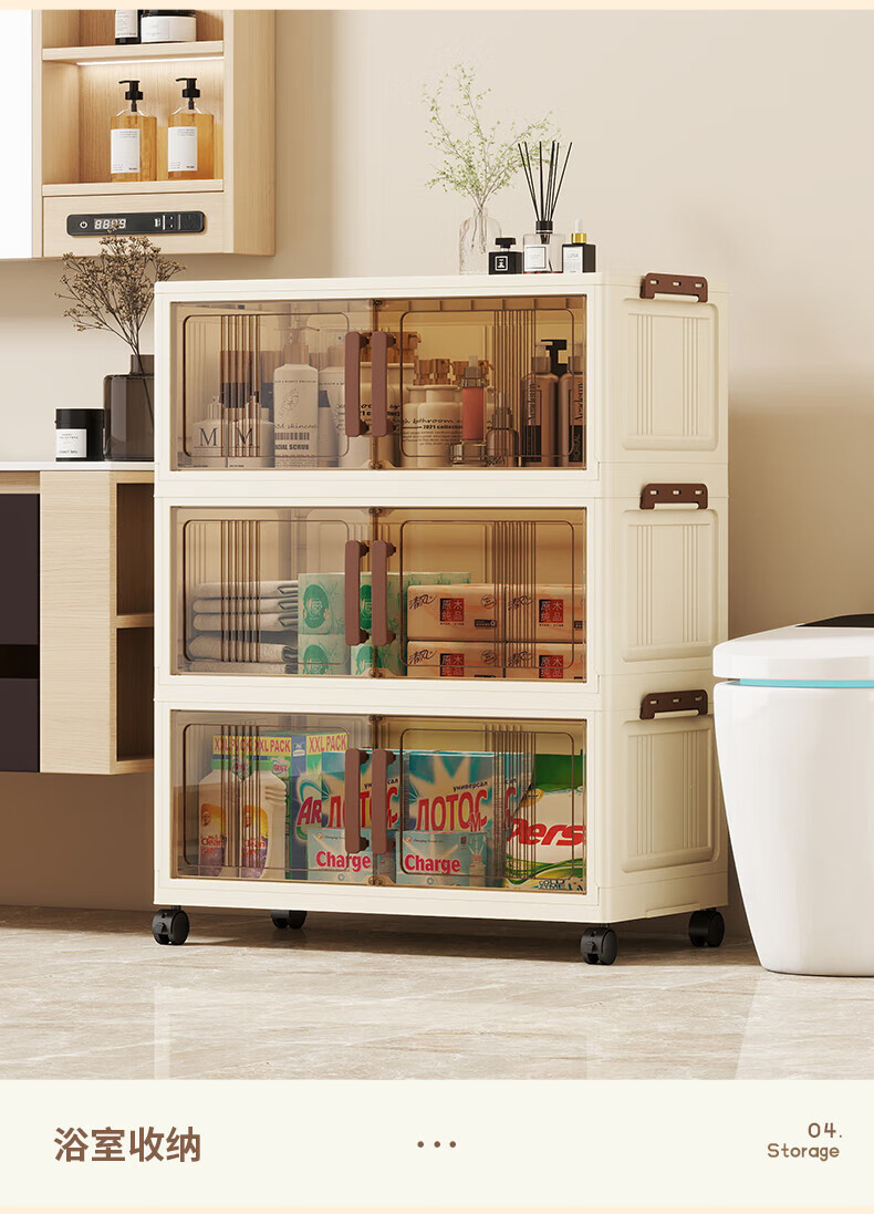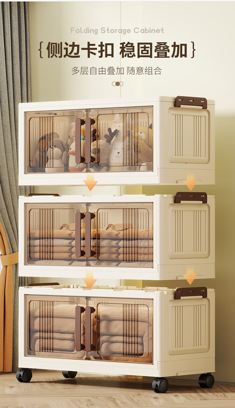 纳份爱家用收纳柜客厅折叠储物柜零食杂物柜子衣物收纳箱多层床头储物柜 50面宽【奶白色】 5层 【超值推荐】热销爆款