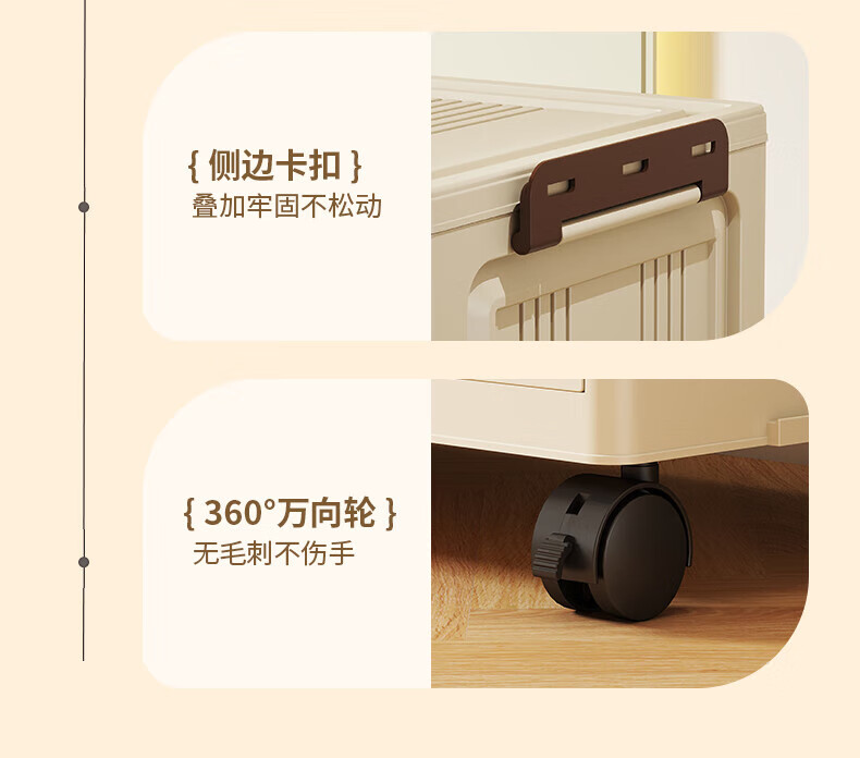 邦尼美家衣服收纳箱带锁扣家用衣柜大容量整理储物箱盒搬家可折叠密封箱子 米色-中号【37*27.5*26cm】 放心购(搬家整理好助手)