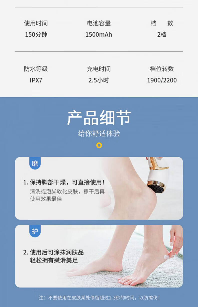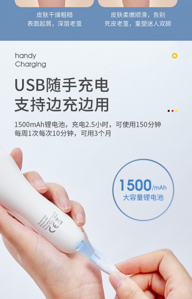 DEATKN德国高端电动磨脚器修脚刀神器自动去死皮刮老茧搓脚皮角质修足器 黑色