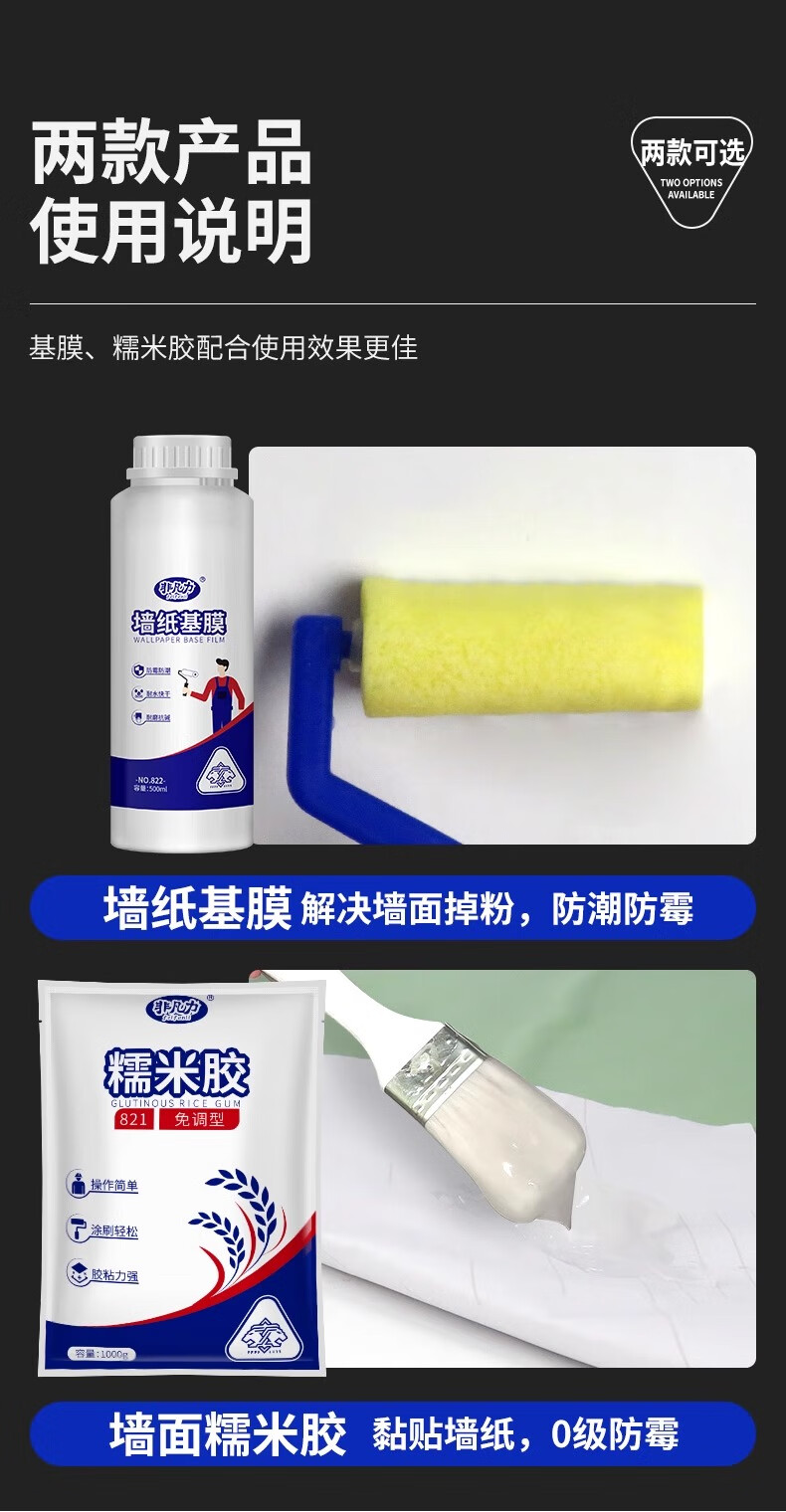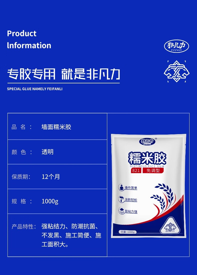 非凡力糯米胶强力粘合剂粘贴壁纸墙布墙面专用无甲醛环保免调型胶修补胶水 【免调型】糯米胶 1kg(施工约8平方)