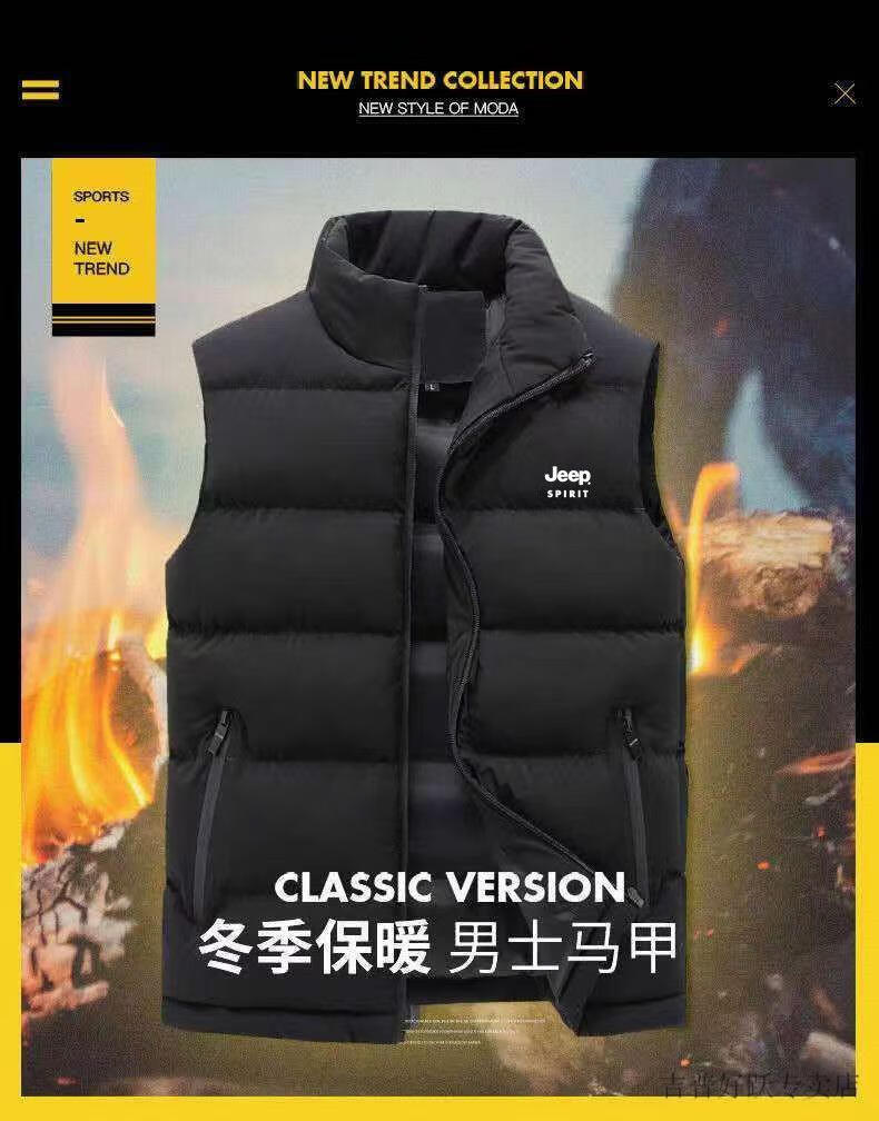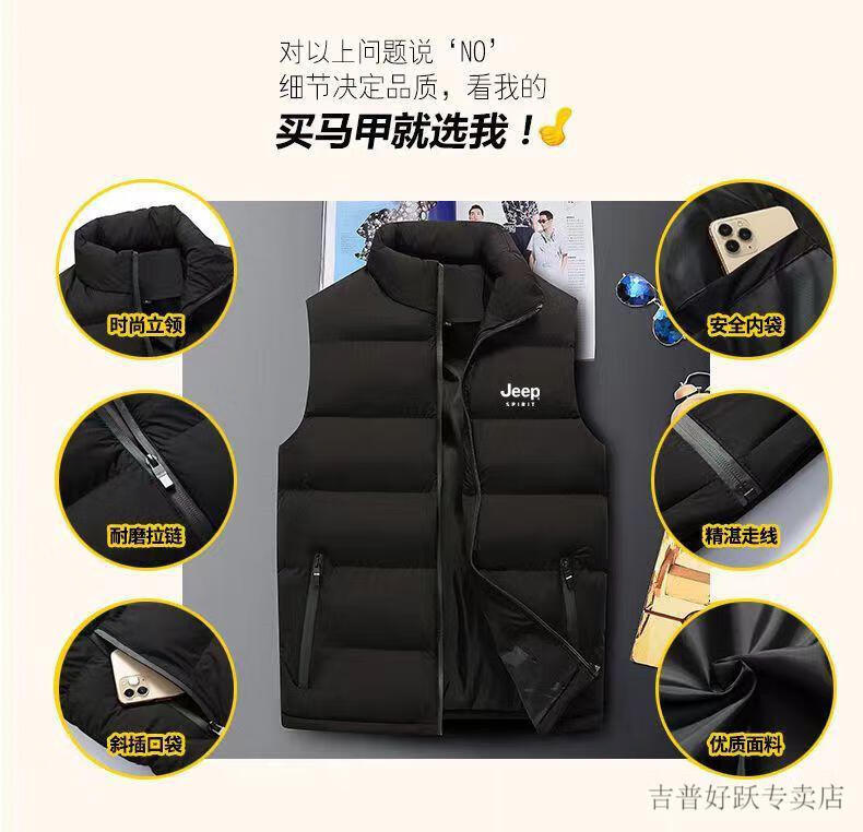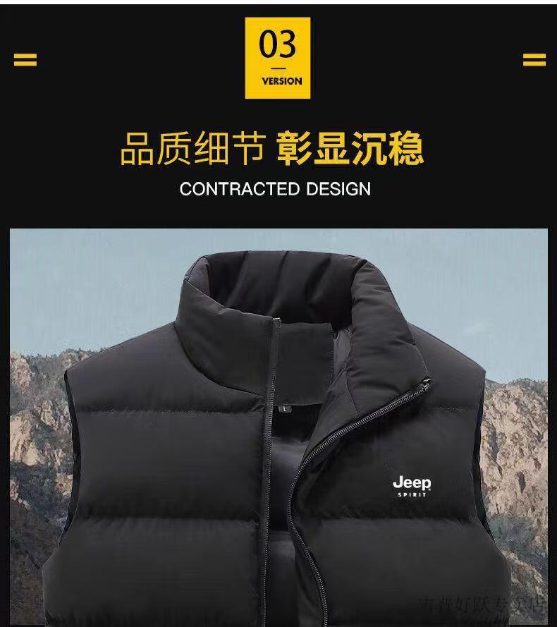 JEEP SPIRIT品质秋冬季新款马甲男士羽绒棉背心外套休闲宽松保暖大码马甲外套 JEEP288黑色 2XL +建议125-140斤