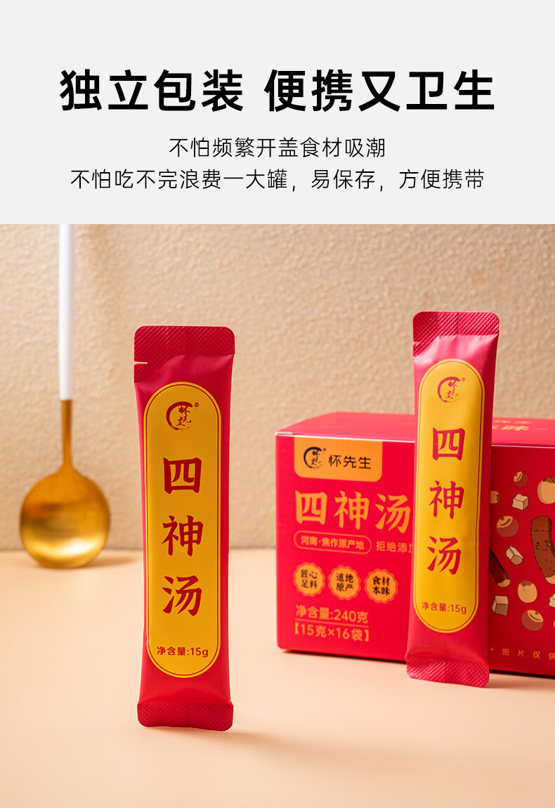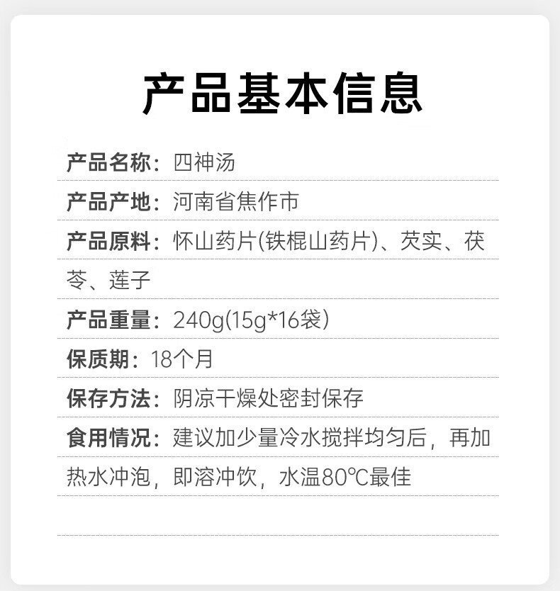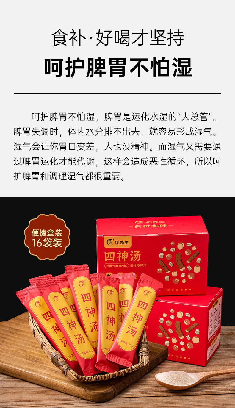 怀先生 四神汤粉铁棍山药芡实茯苓调理脾胃儿童独立包装免煮 一盒16袋