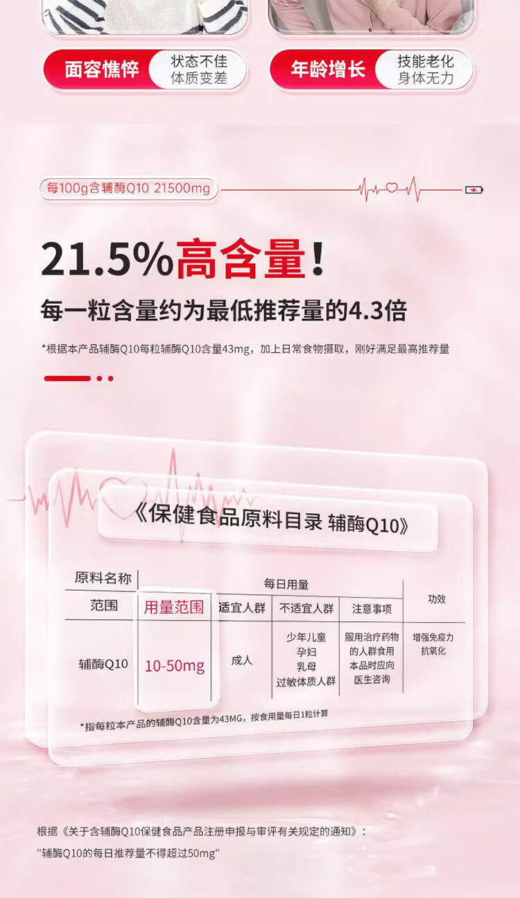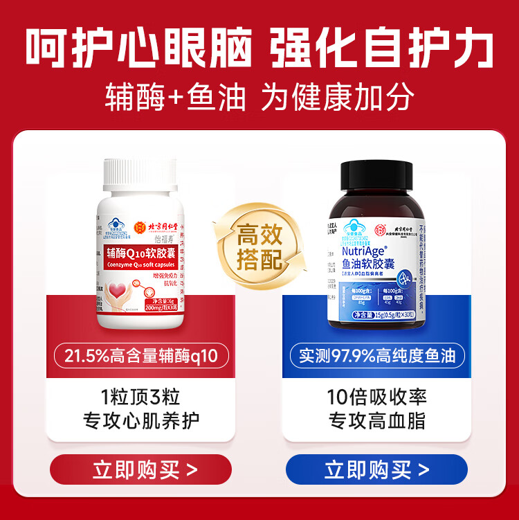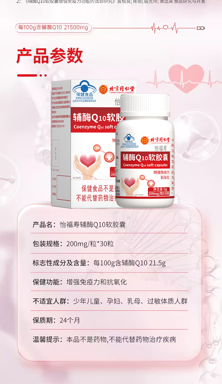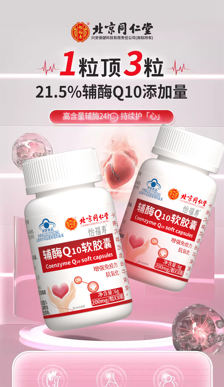 同仁堂辅酶q10胶囊高含量增强免疫力心血管适用中老年人工作强度90粒