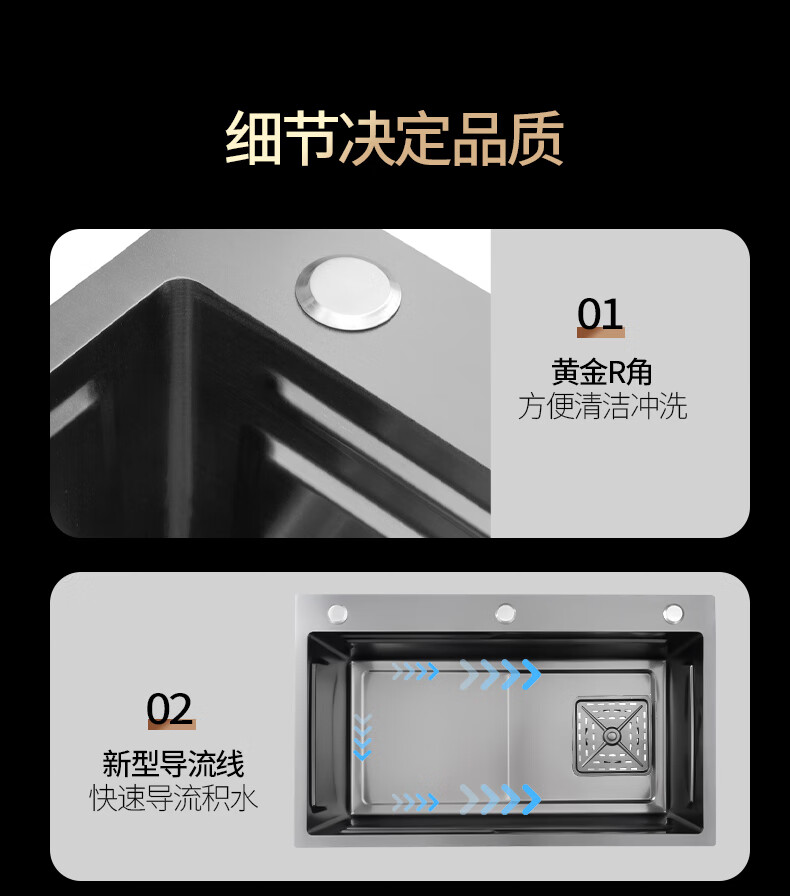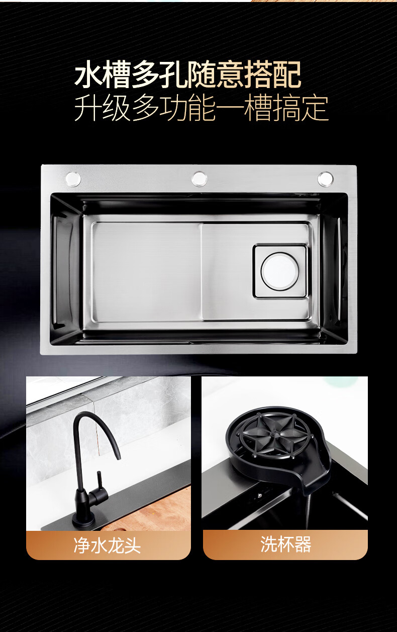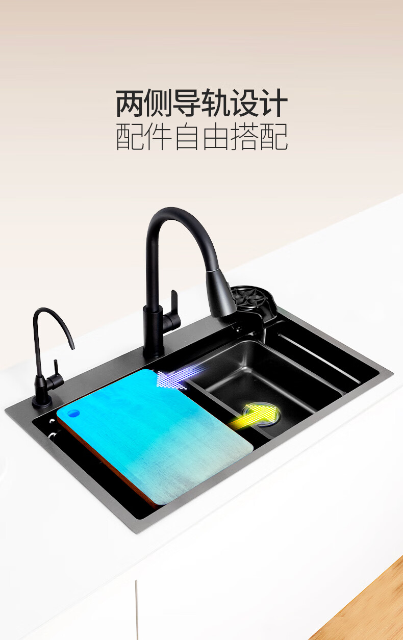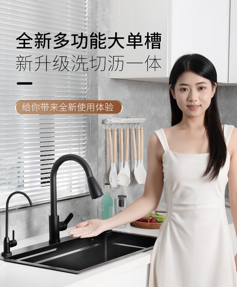 迪黎 水槽大单槽 洗菜盆一体盆 黑色纳米不锈钢厨房水池盆洗碗槽