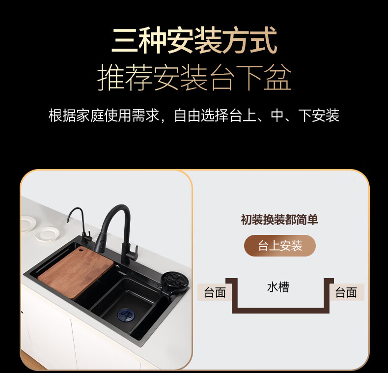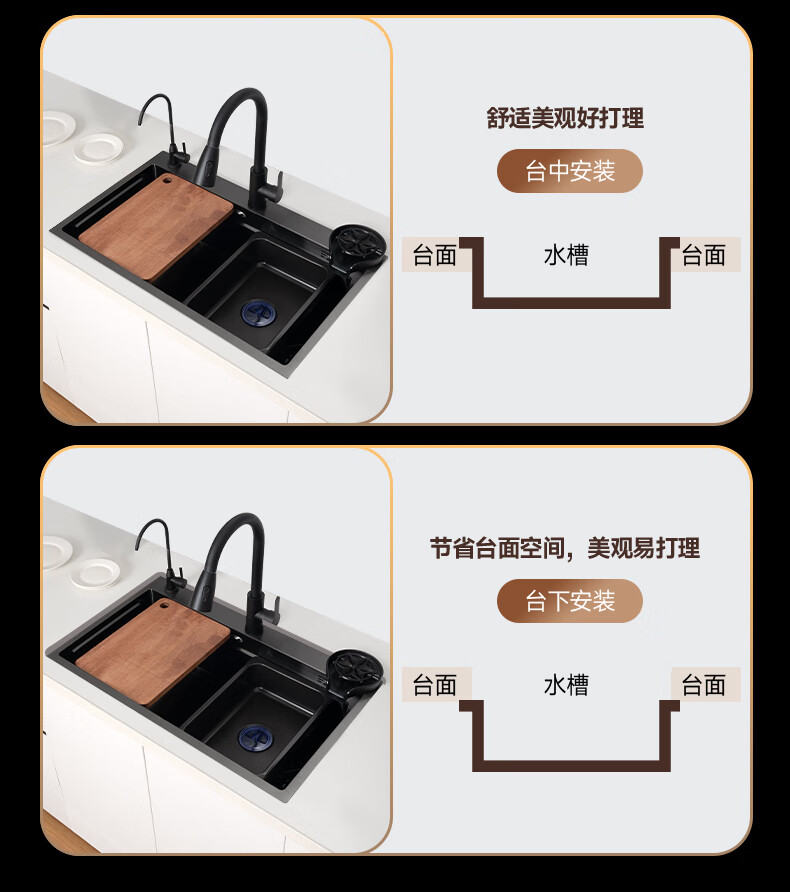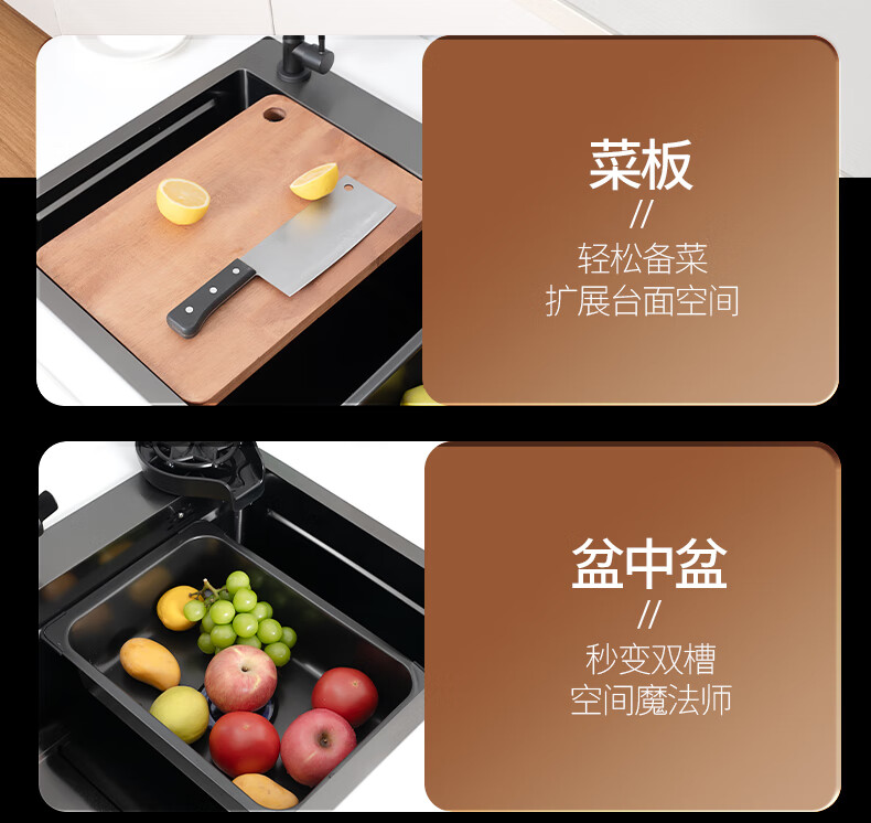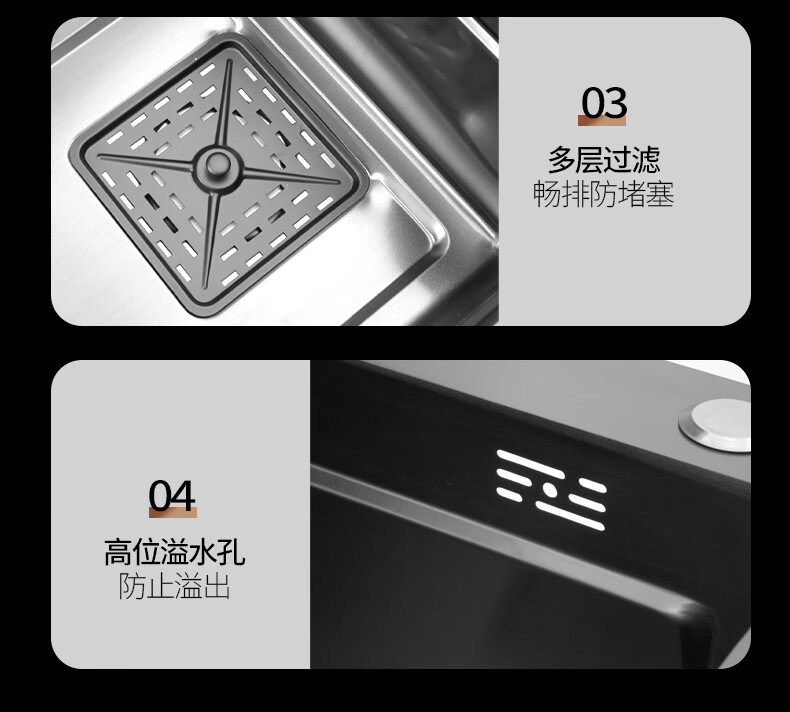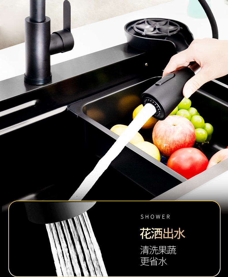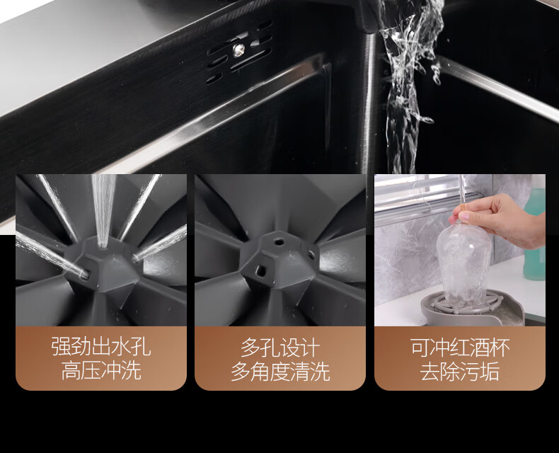 迪黎 水槽大单槽 洗菜盆一体盆 黑色纳米不锈钢厨房水池盆洗碗槽