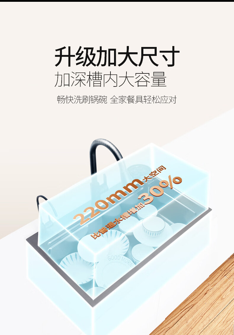 MJONI【包安装】厨房水槽大单槽京东集采系列S7 至净MAX超声波洗菜盆