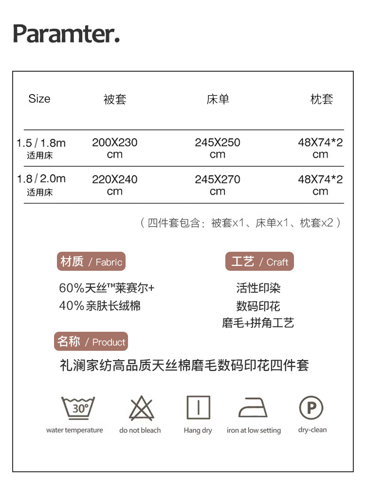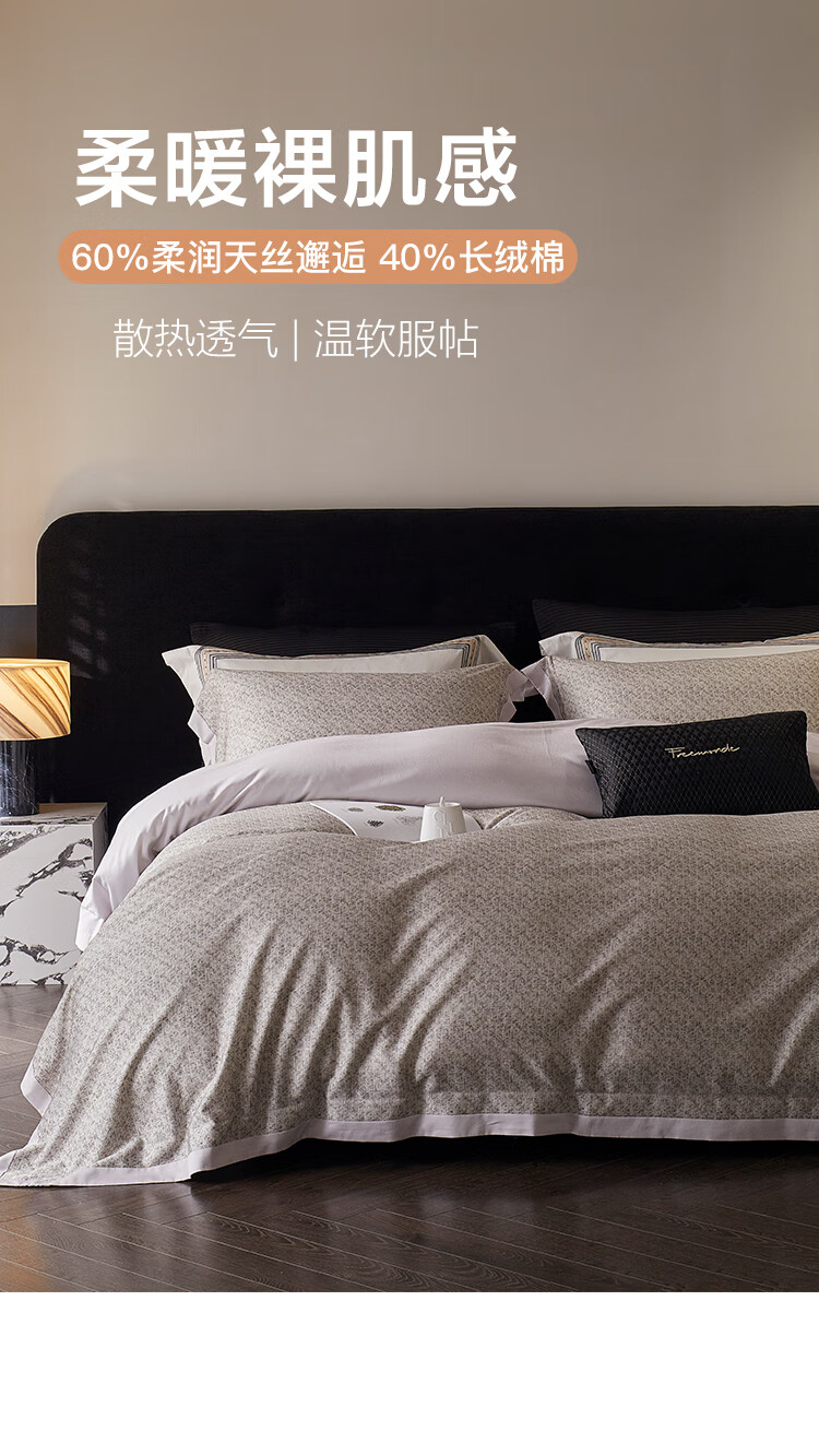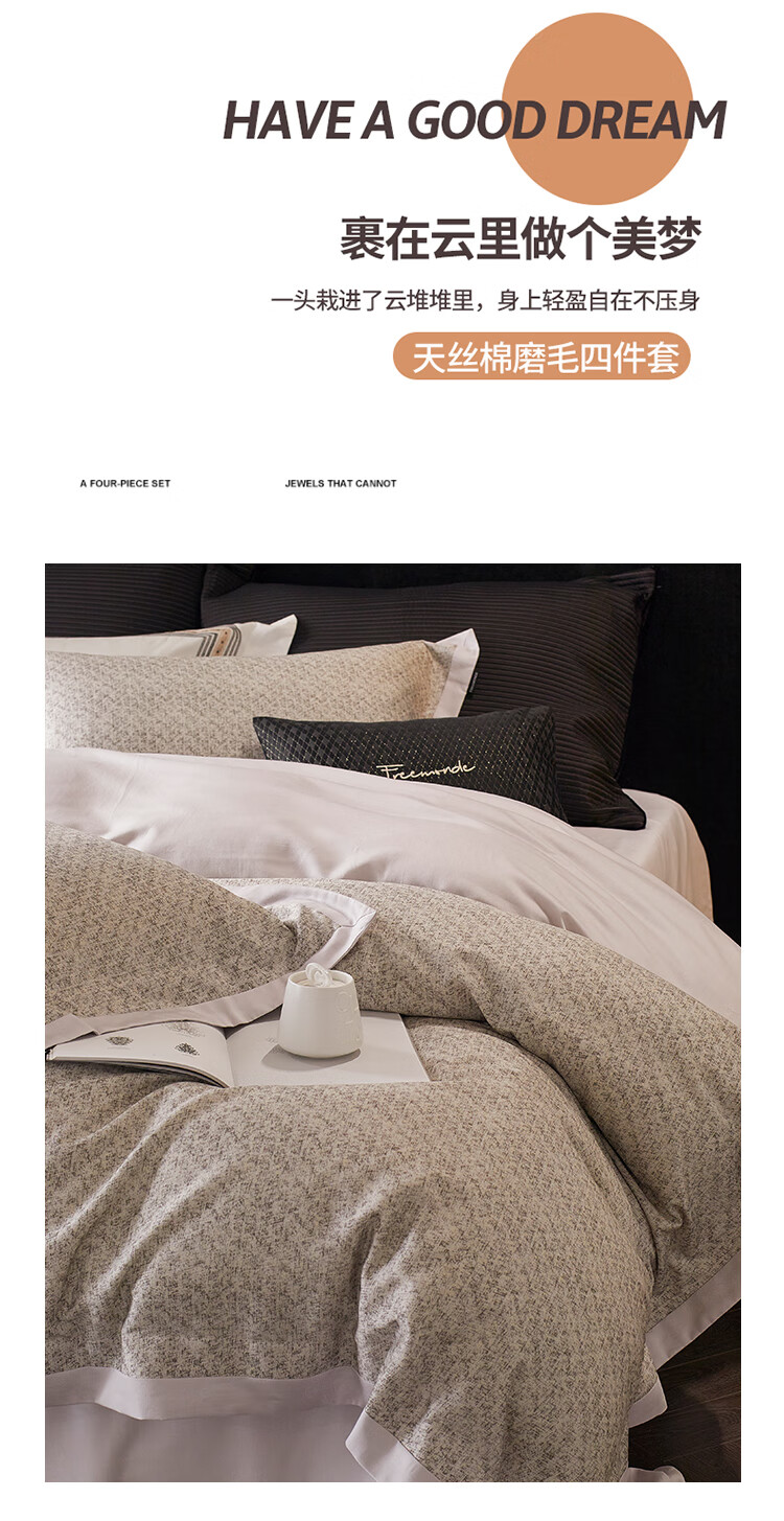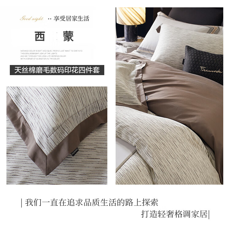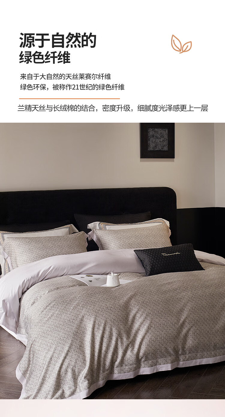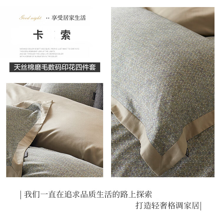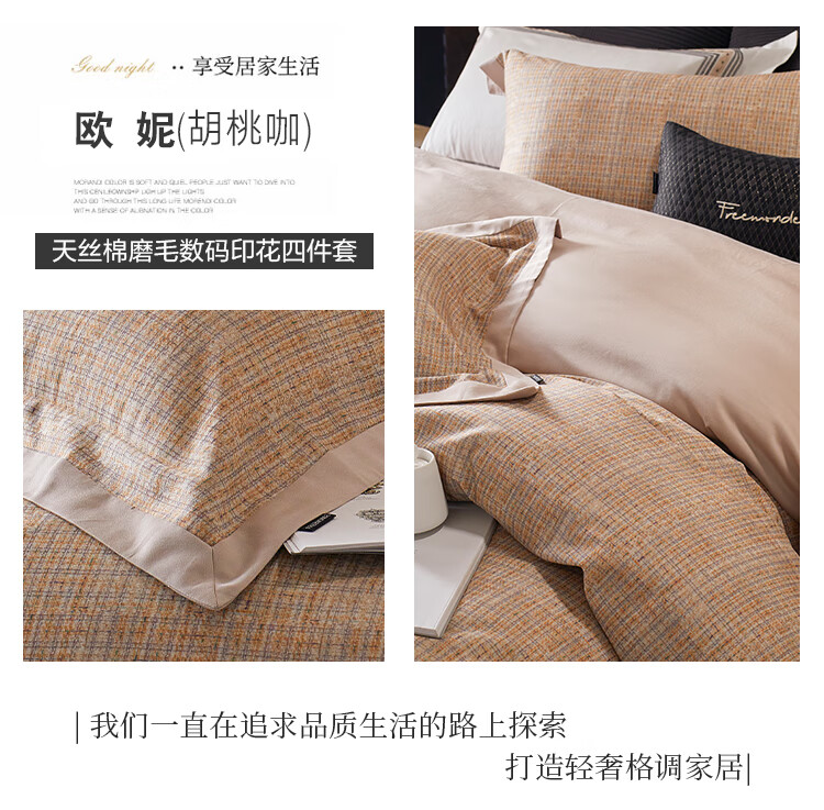 LEELAND礼澜家纺 100支天丝棉磨毛数码印花四件套秋冬天加厚保暖床品套件 乐缇 1.5/1.8米 床单款 /被套200*230cm