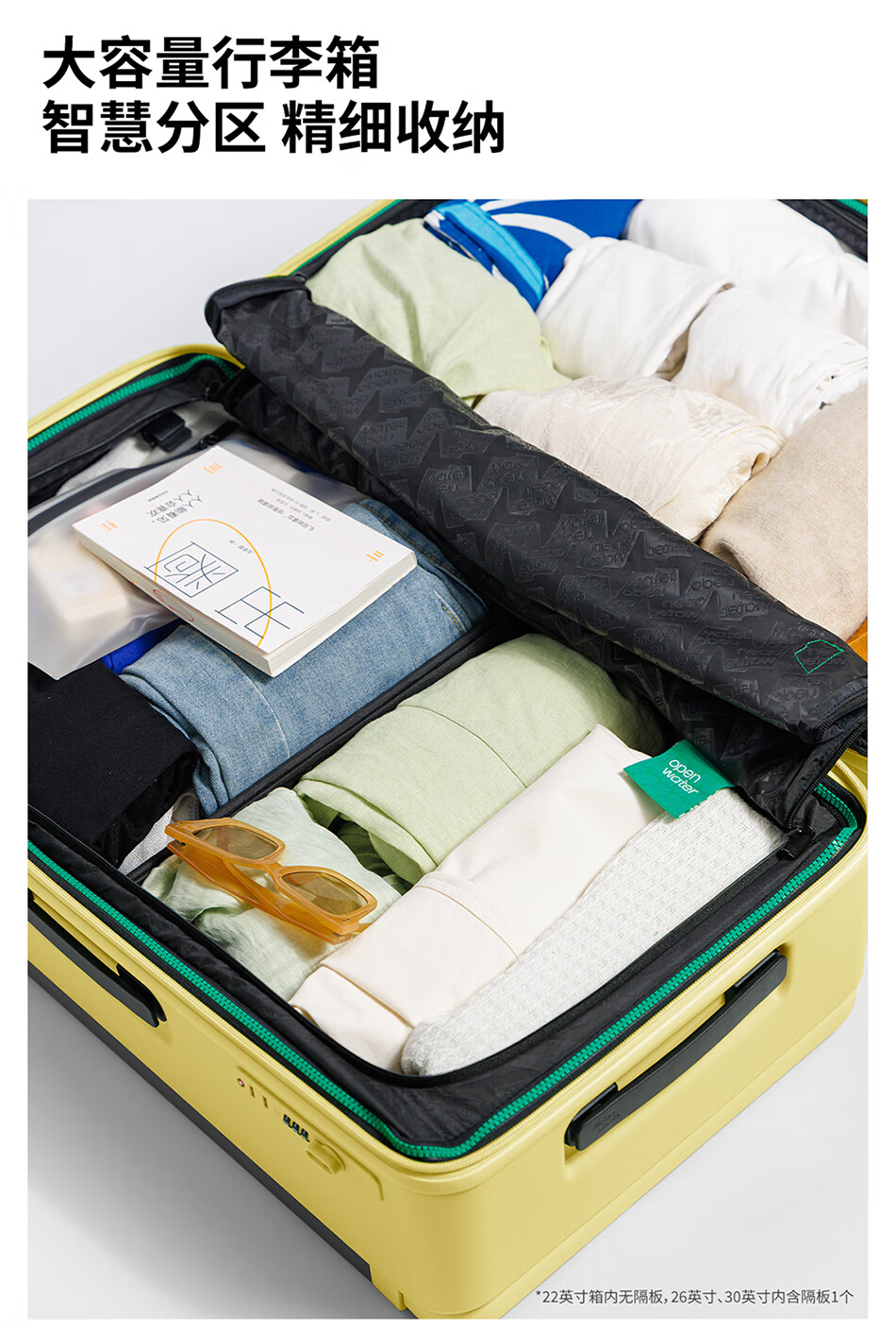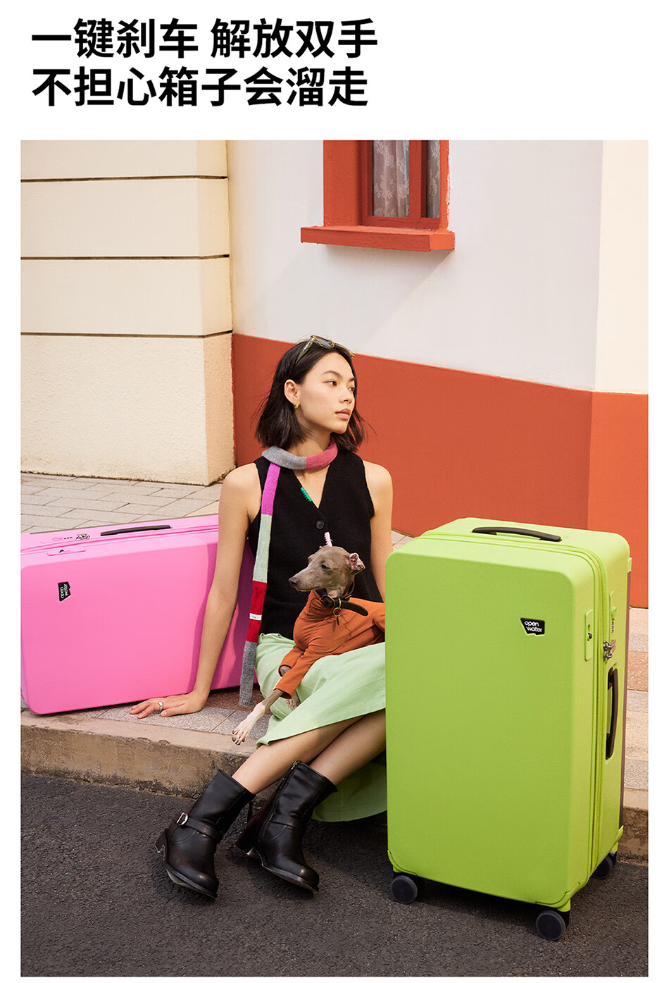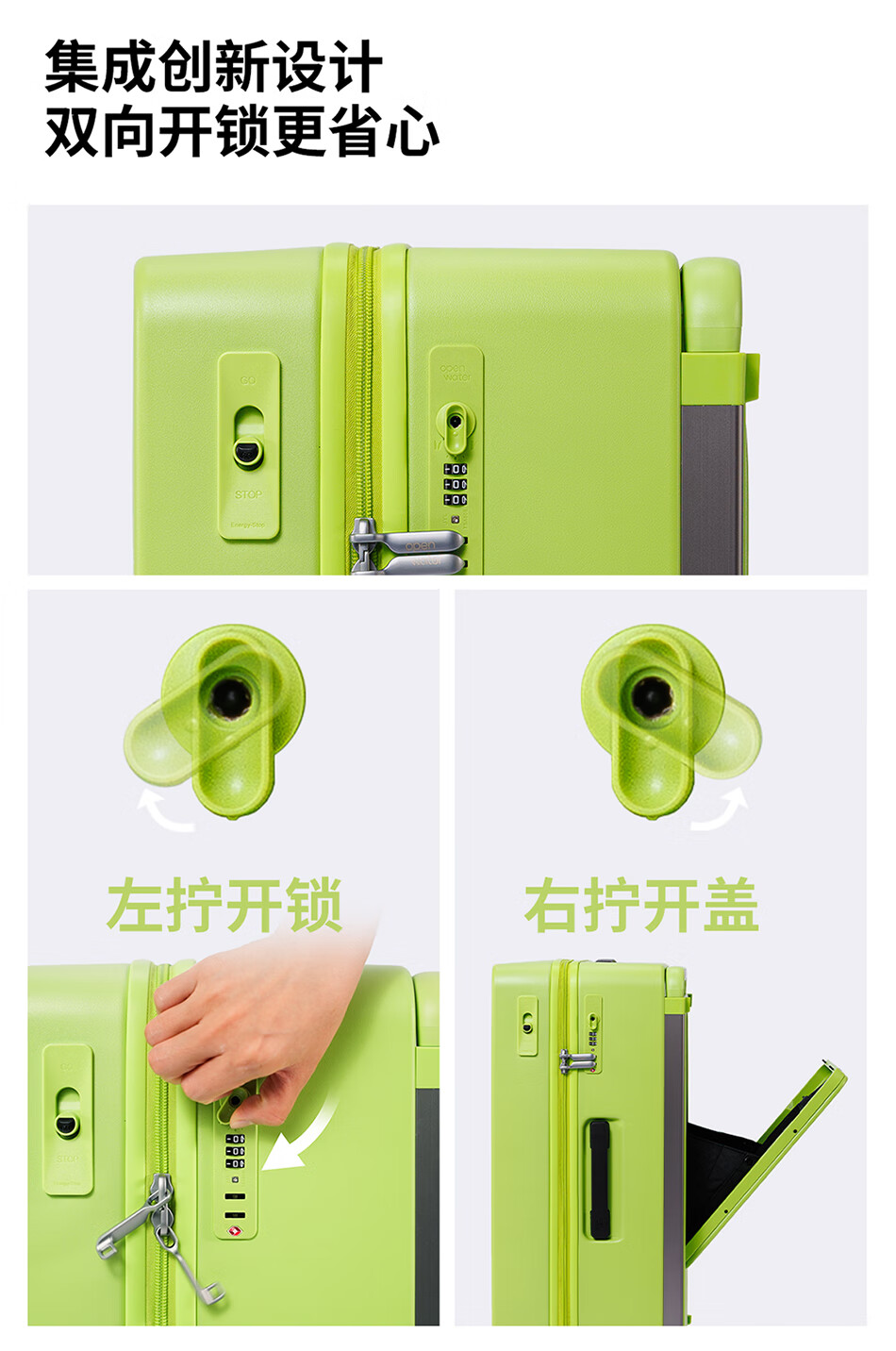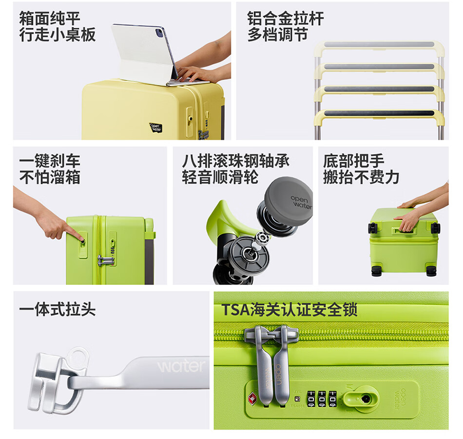 开放水域openwater后开盖行李箱大容量旅行宽拉杆箱女密码箱 草地青26英寸