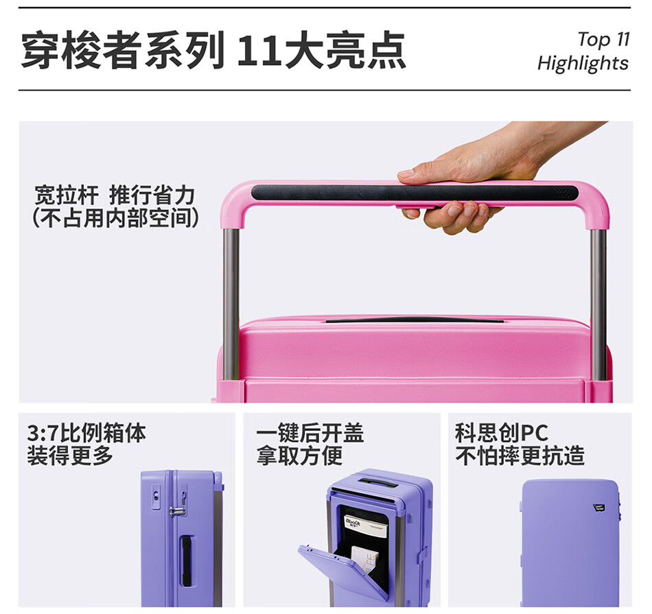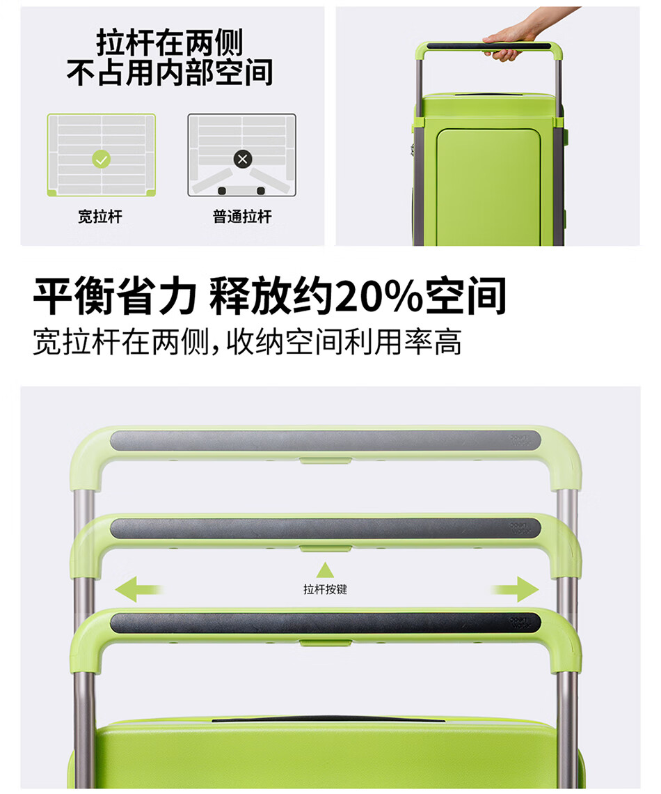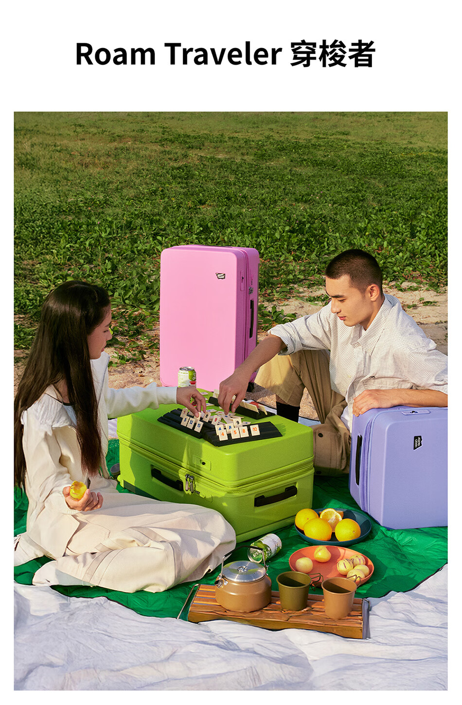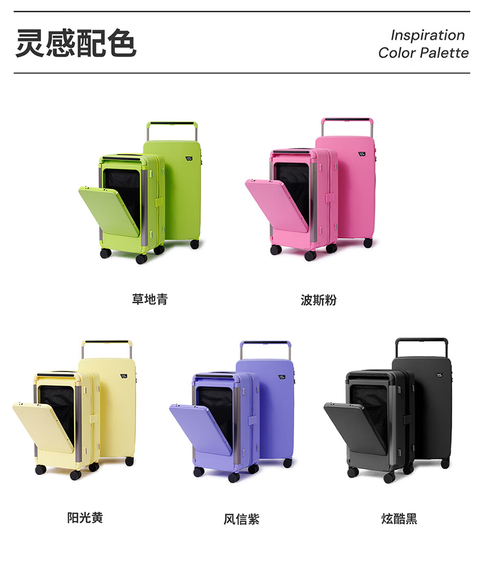 开放水域openwater后开盖行李箱大容量旅行宽拉杆箱女密码箱 草地青26英寸