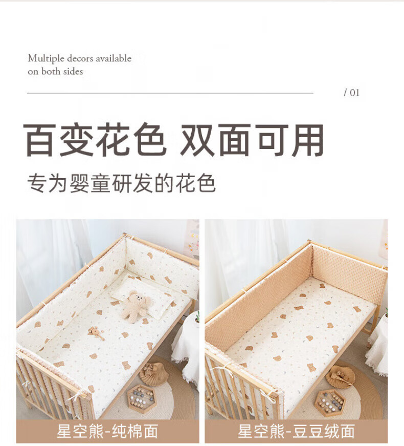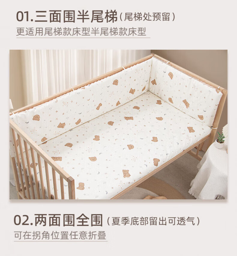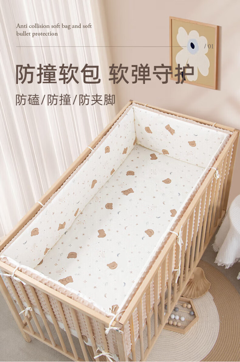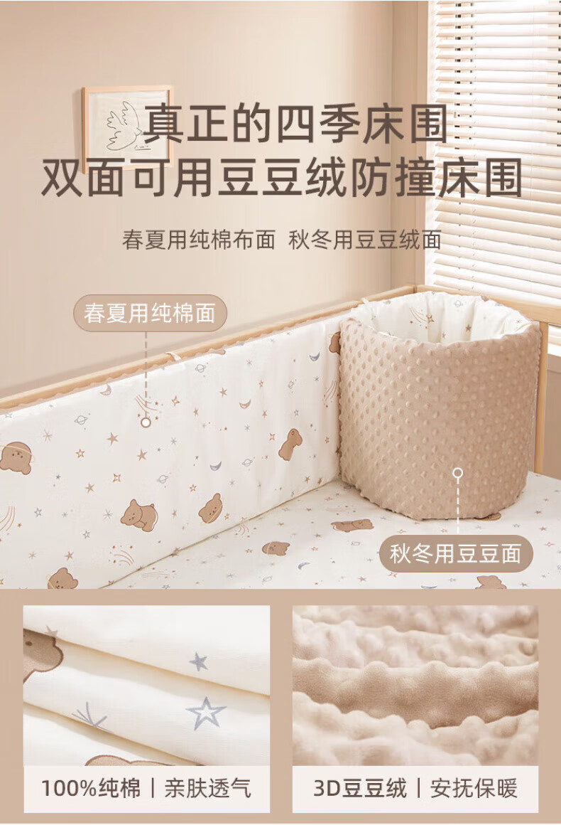 AILUKI日本婴儿床床围栏一片式软包防撞条儿童拼接床围挡布宝宝小床护栏 米色星空熊双面床围【高30cm】 长度100cm