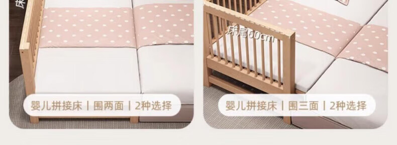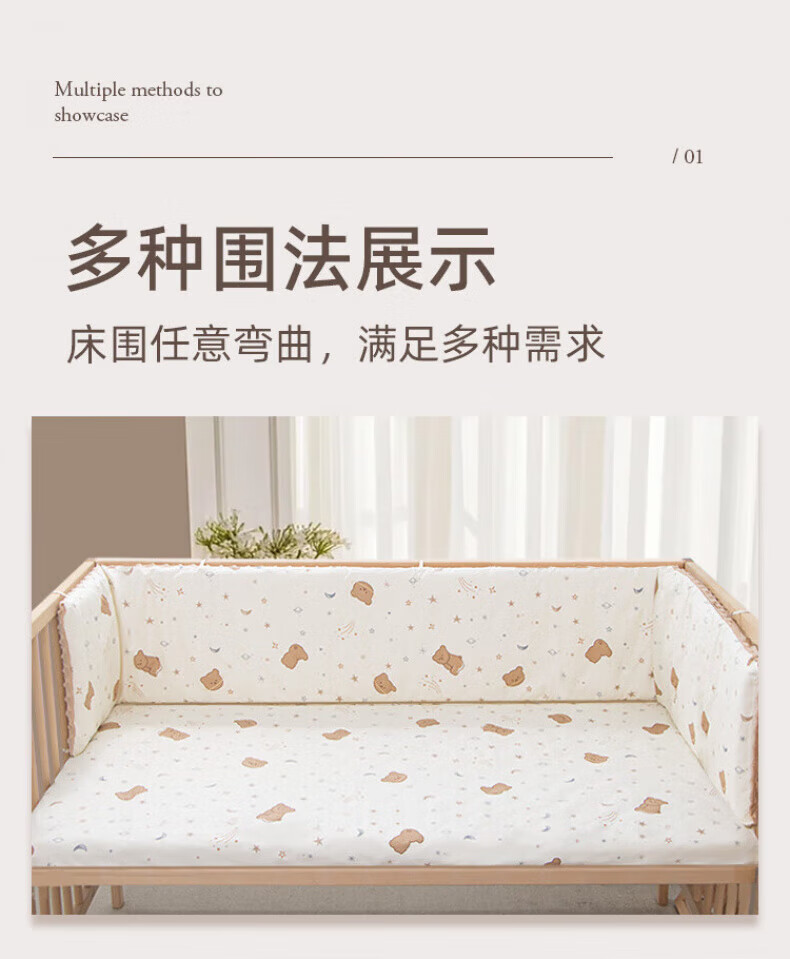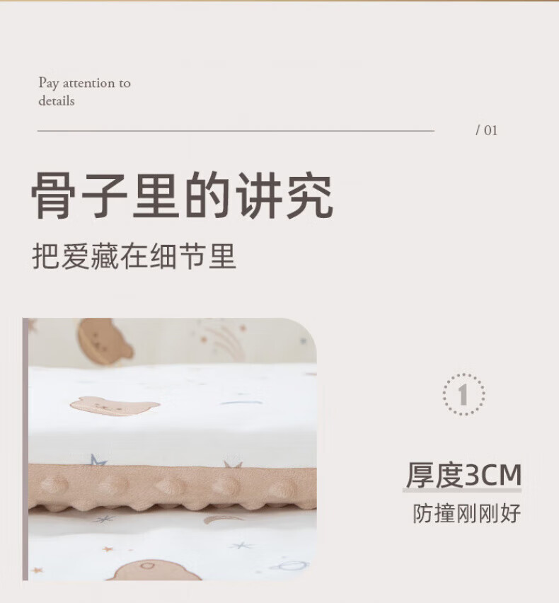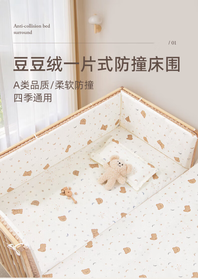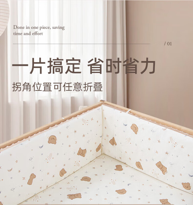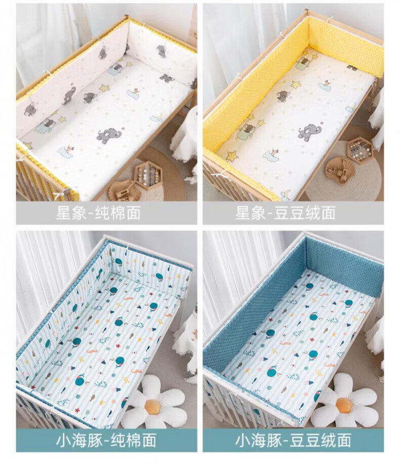 AILUKI日本婴儿床床围栏一片式软包防撞条儿童拼接床围挡布宝宝小床护栏 米色星空熊双面床围【高30cm】 长度100cm