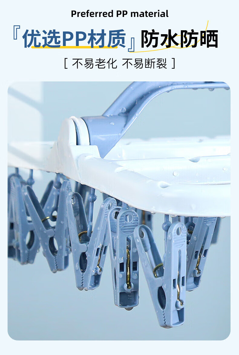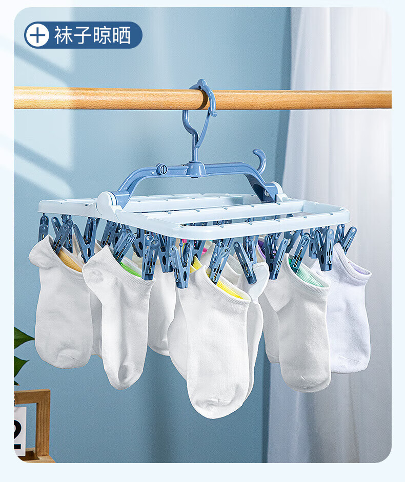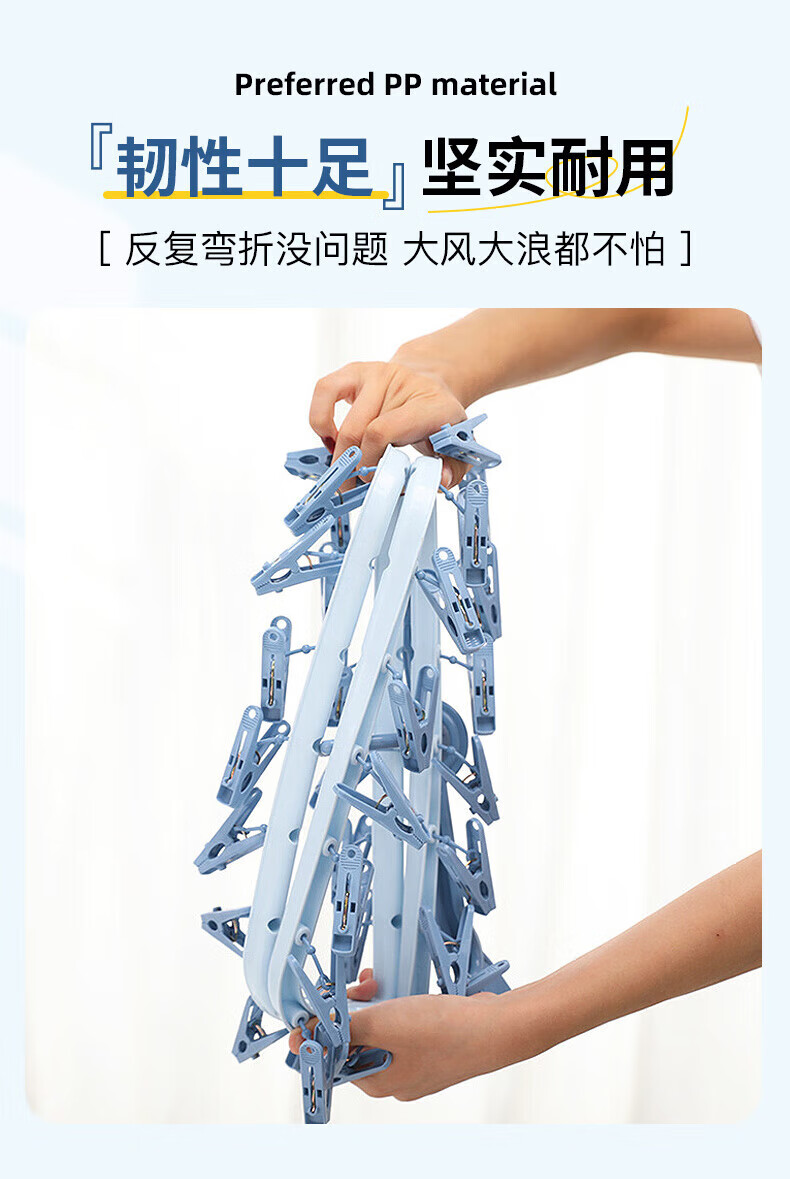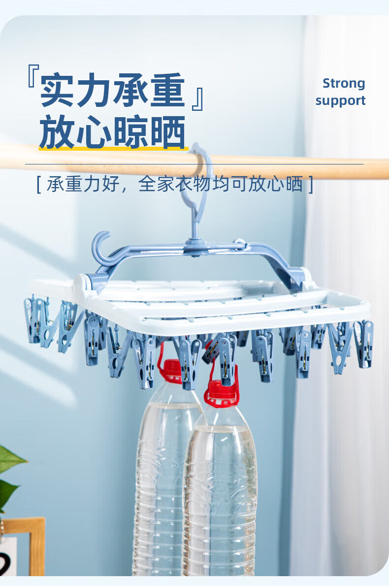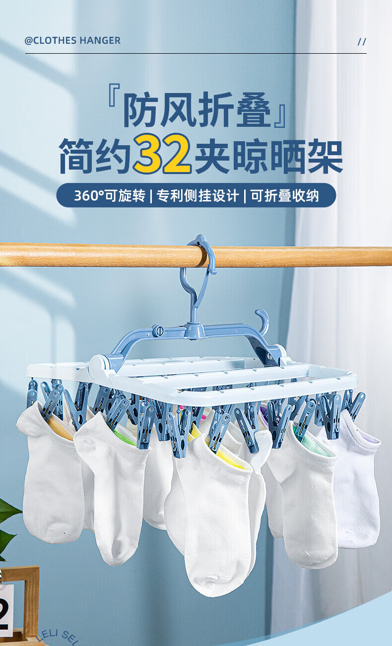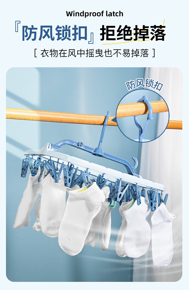 晟旎尚品多头晾衣夹家用晾晒夹内衣袜子架学生宿舍晒袜夹防风折叠凉衣夹 32夹防风架