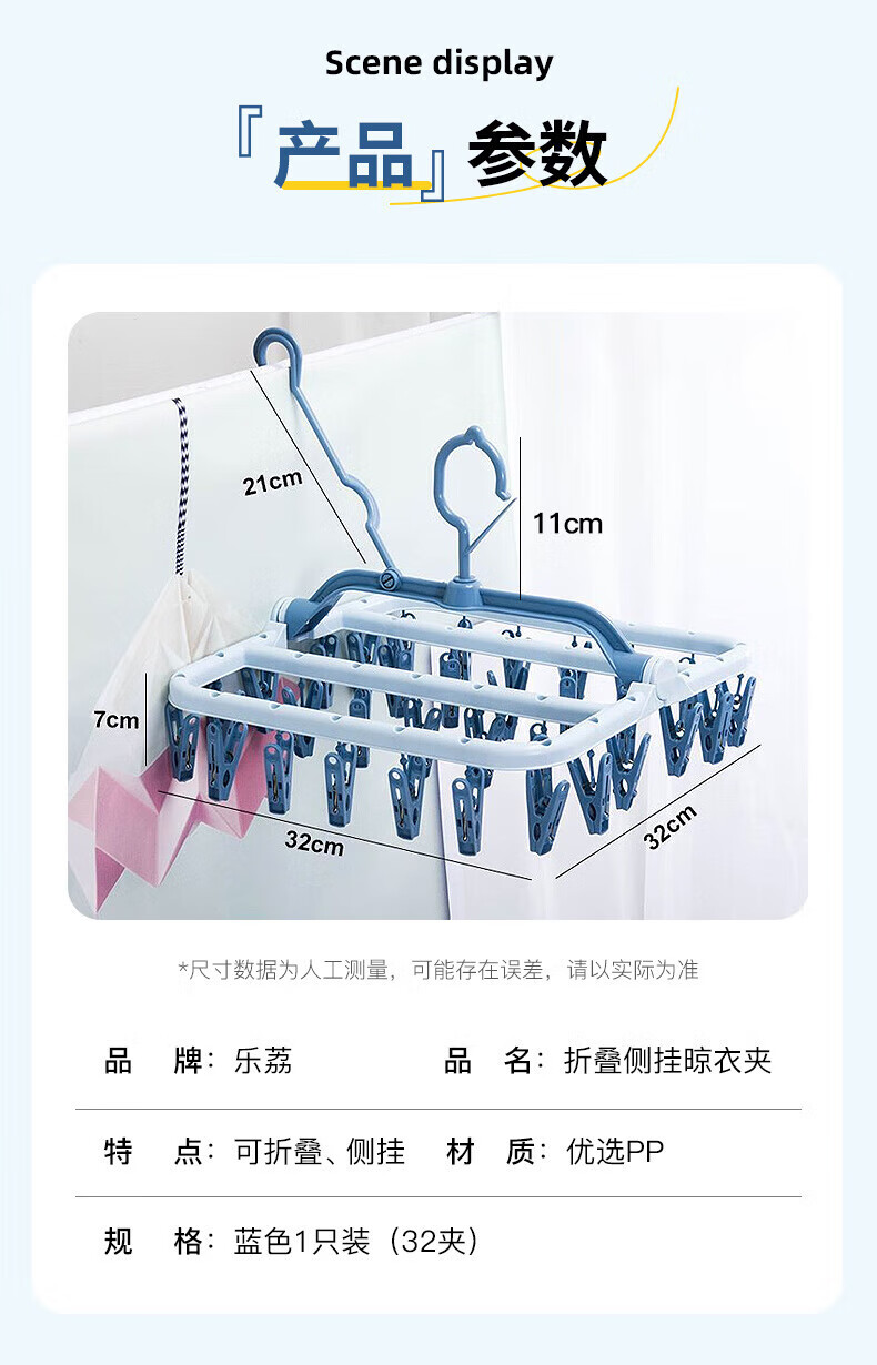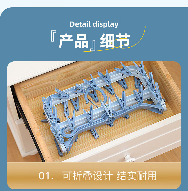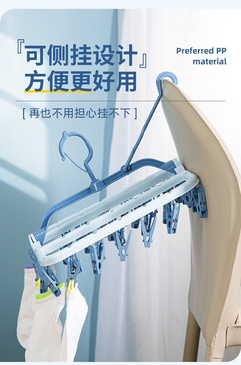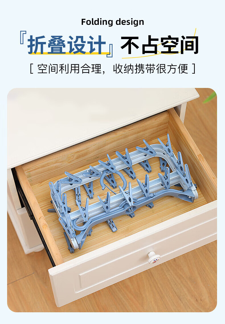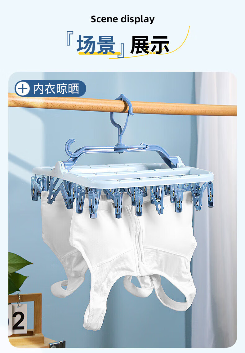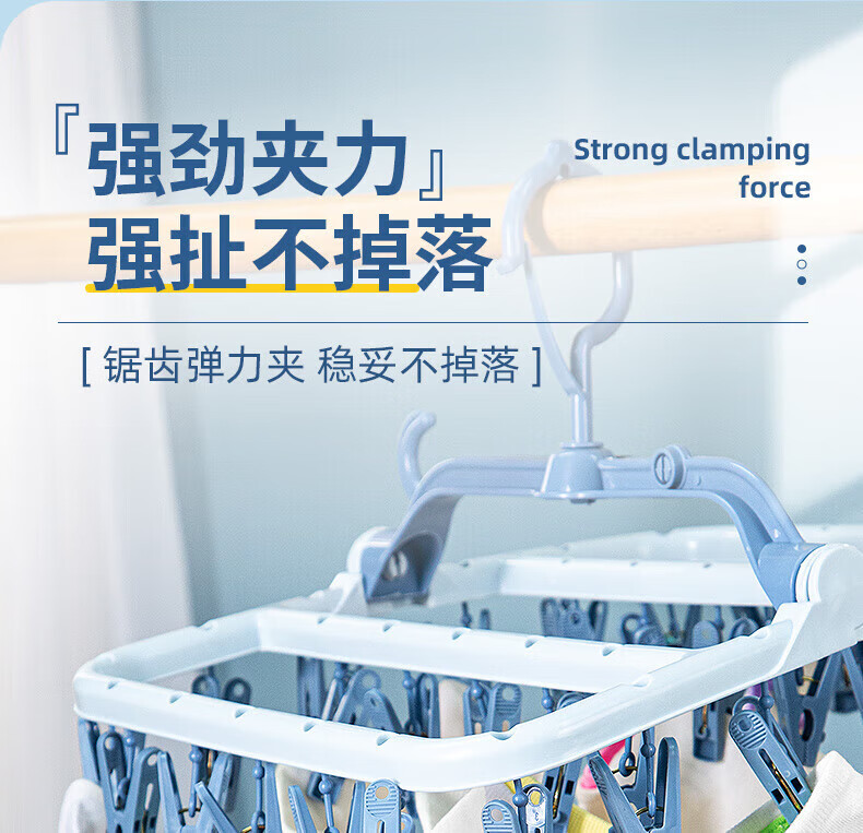 晟旎尚品多头晾衣夹家用晾晒夹内衣袜子架学生宿舍晒袜夹防风折叠凉衣夹 32夹防风架