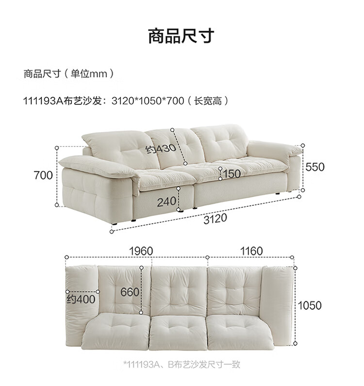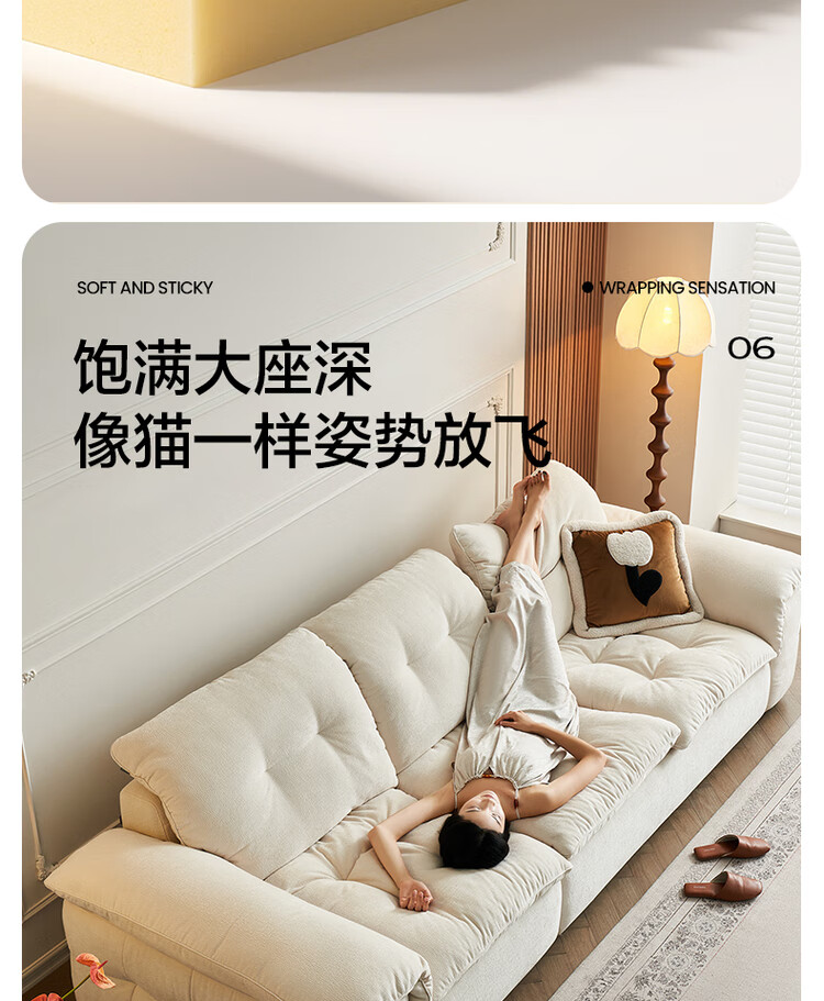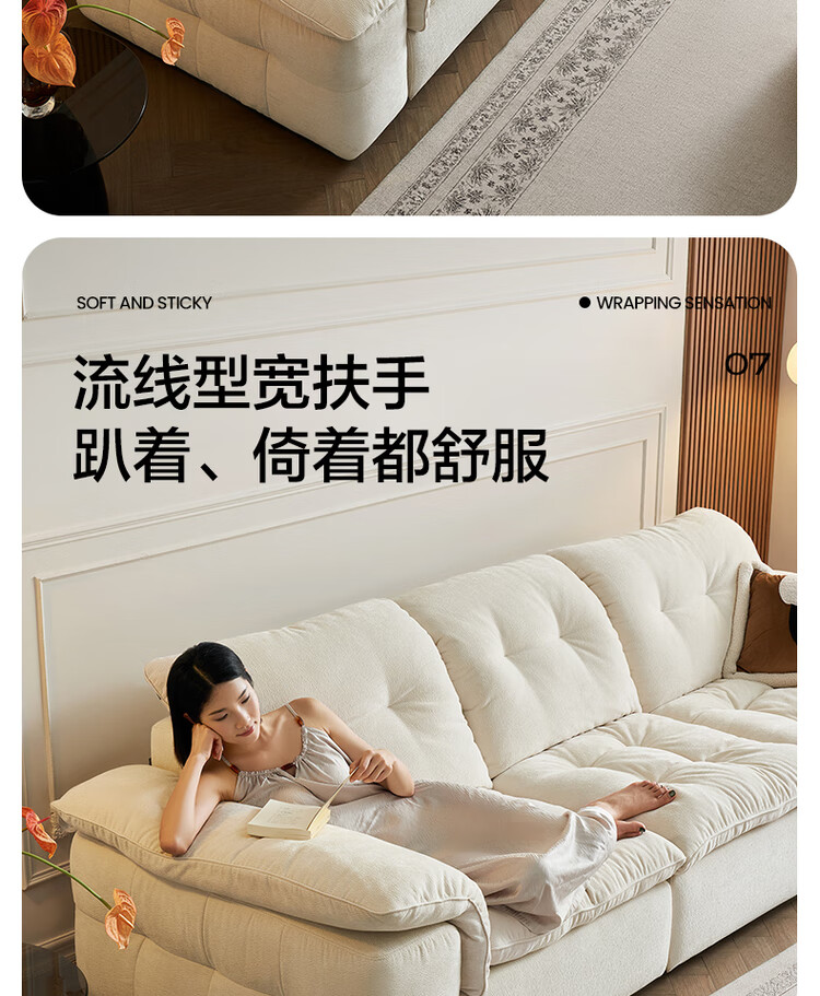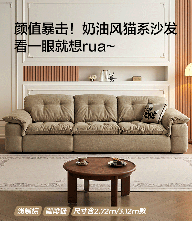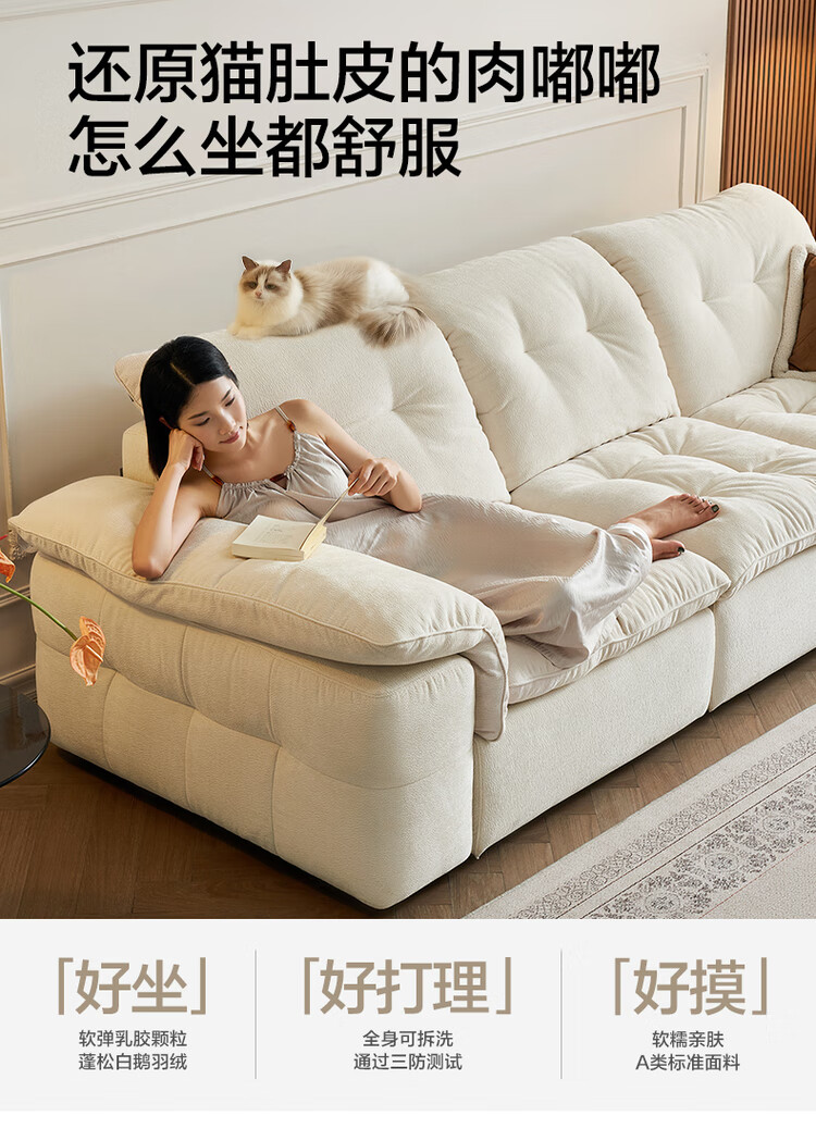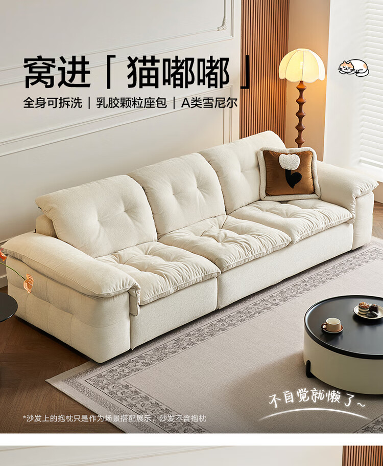 全友家居奶油风雪尼尔沙发客厅家具三人位直排沙发可拆洗布艺沙发家具 杏仁白|三防雪尼尔|2.72m沙发 A类雪尼尔+可拆洗+乳胶+羽绒+66cm座深