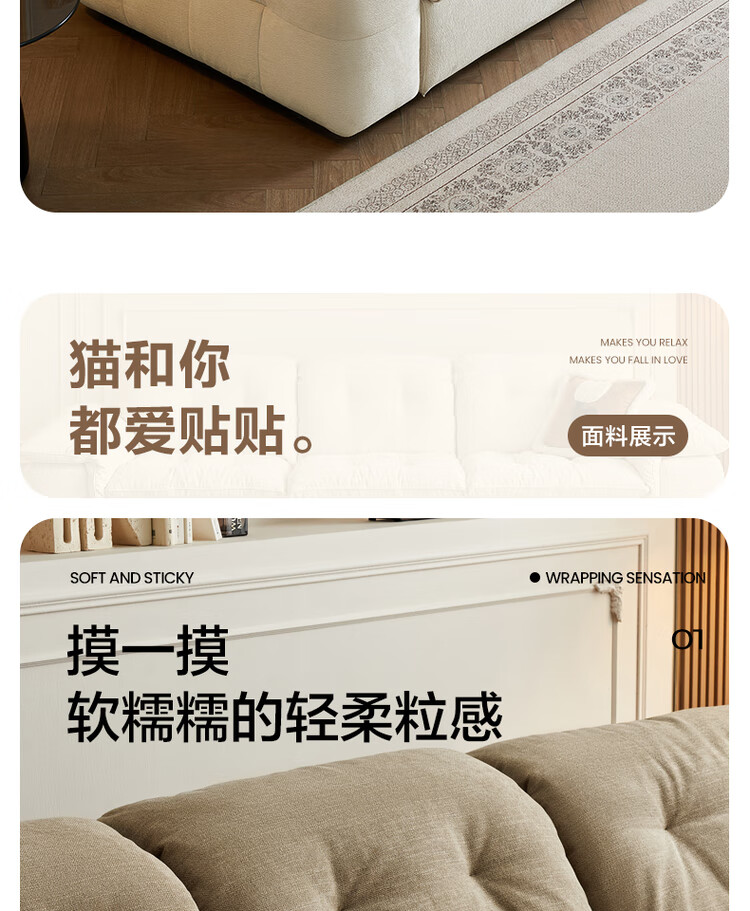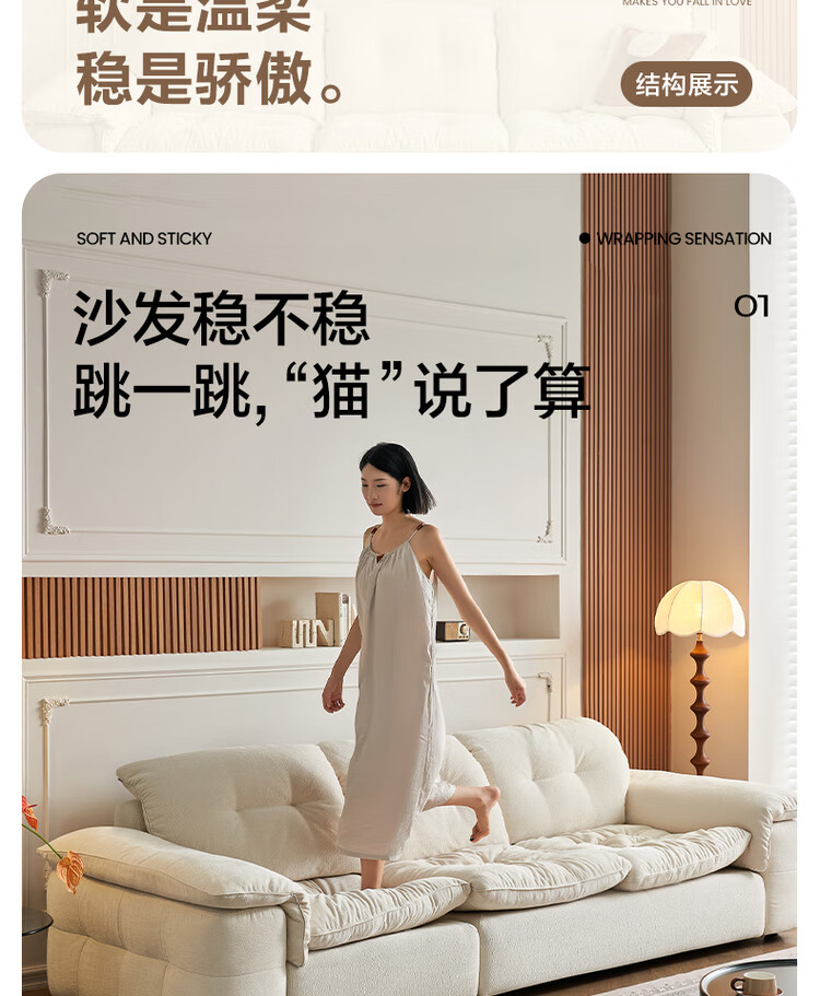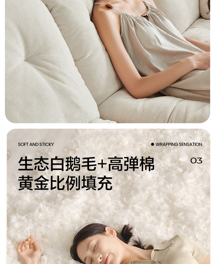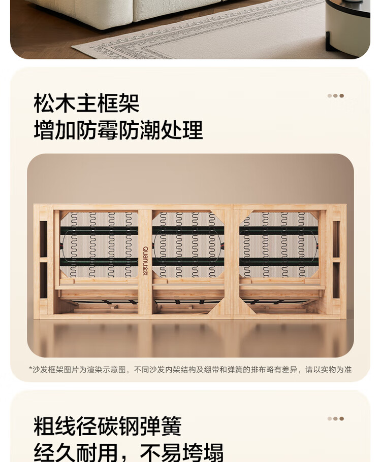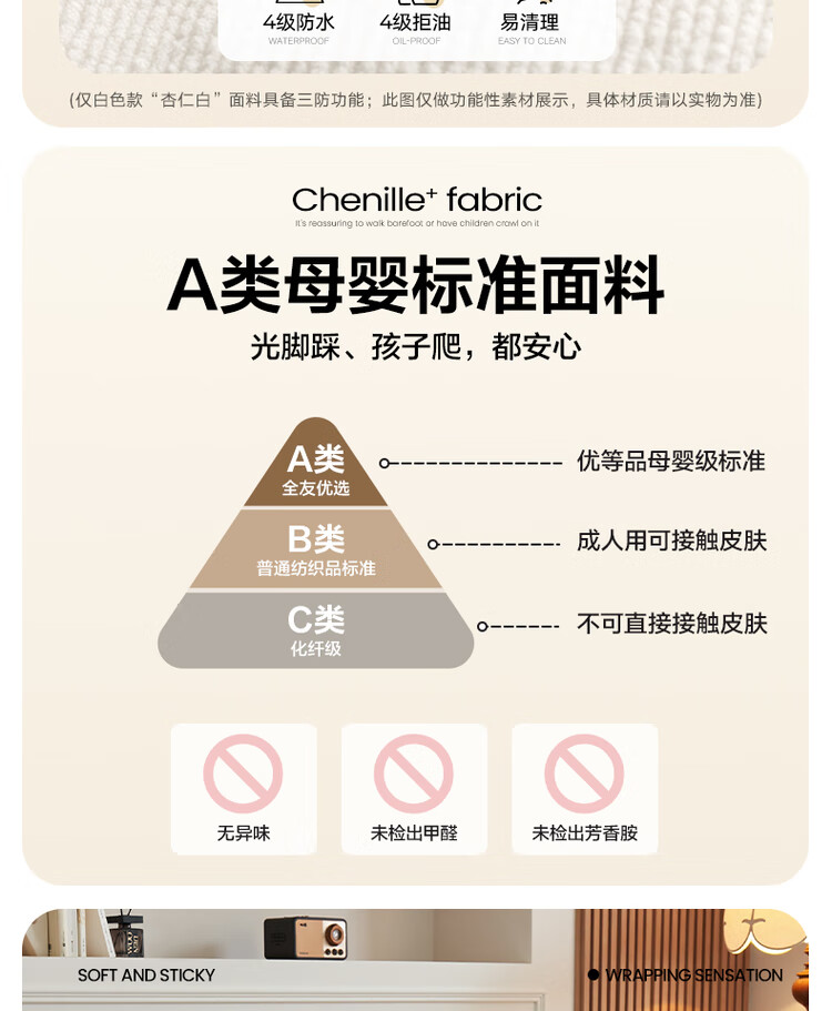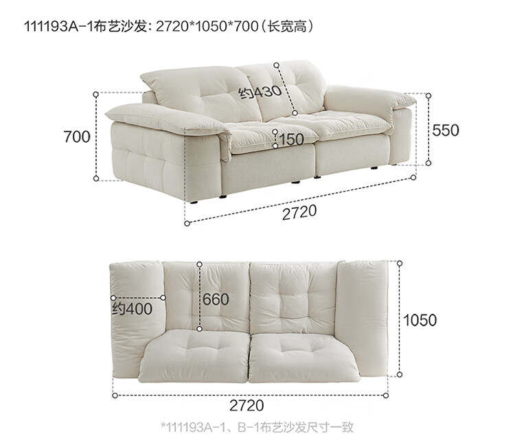 全友家居奶油风雪尼尔沙发客厅家具三人位直排沙发可拆洗布艺沙发家具 杏仁白|三防雪尼尔|2.72m沙发 A类雪尼尔+可拆洗+乳胶+羽绒+66cm座深