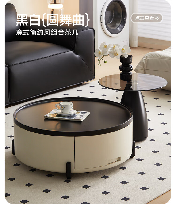 全友家居奶油风电视柜茶几组合套装新款家用客厅储物收纳置物柜子家具 【奶油风】圆形茶几