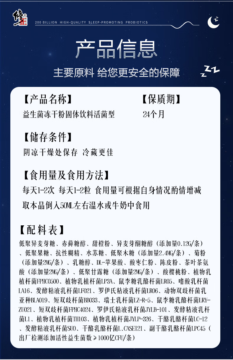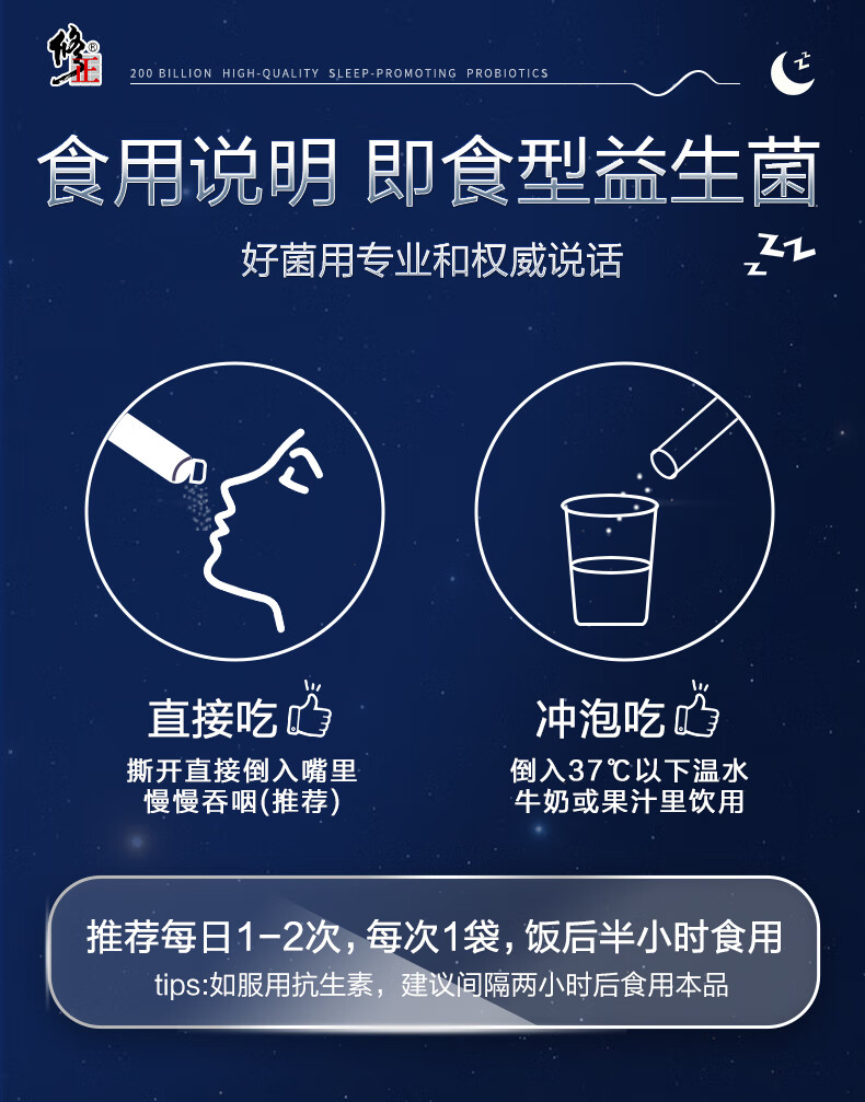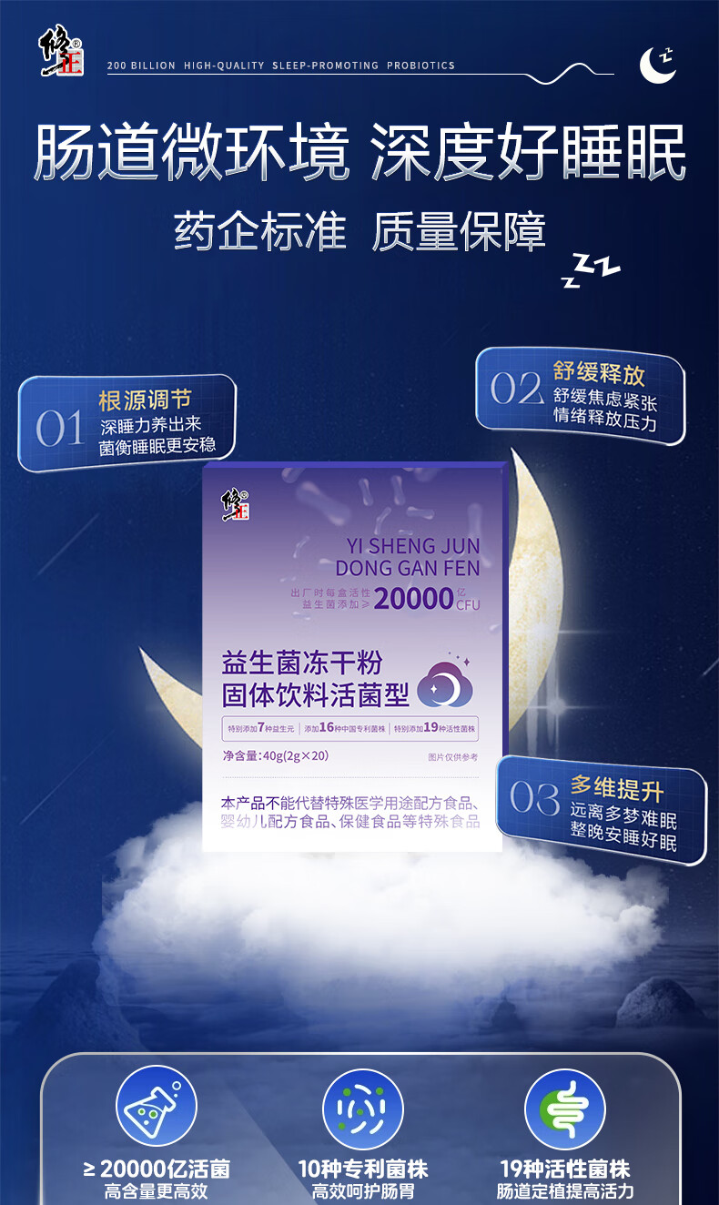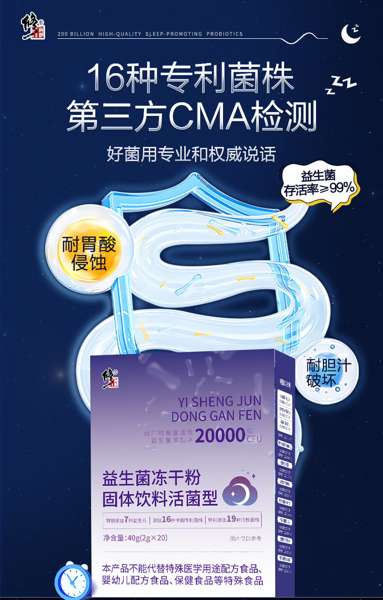 修正益生菌20000亿活菌睡眠益生菌改善情绪调理肠胃脾胃成人2g*20袋