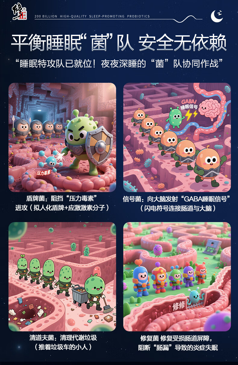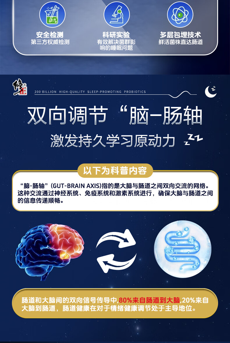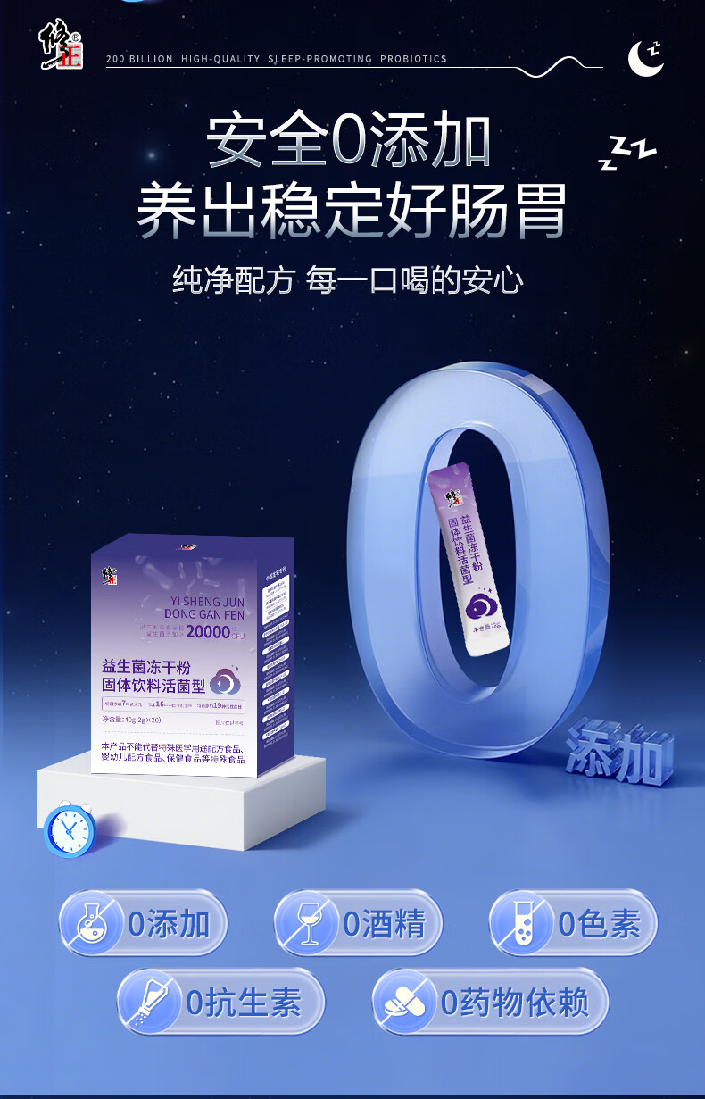 修正益生菌20000亿活菌睡眠益生菌改善情绪调理肠胃脾胃成人2g*20袋