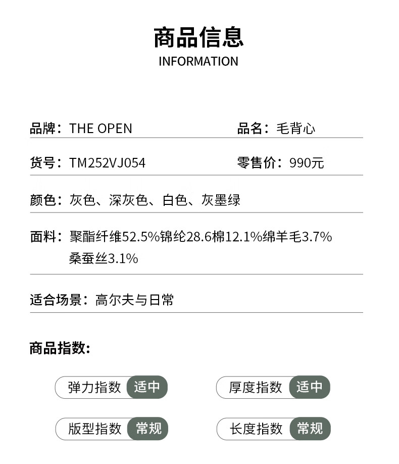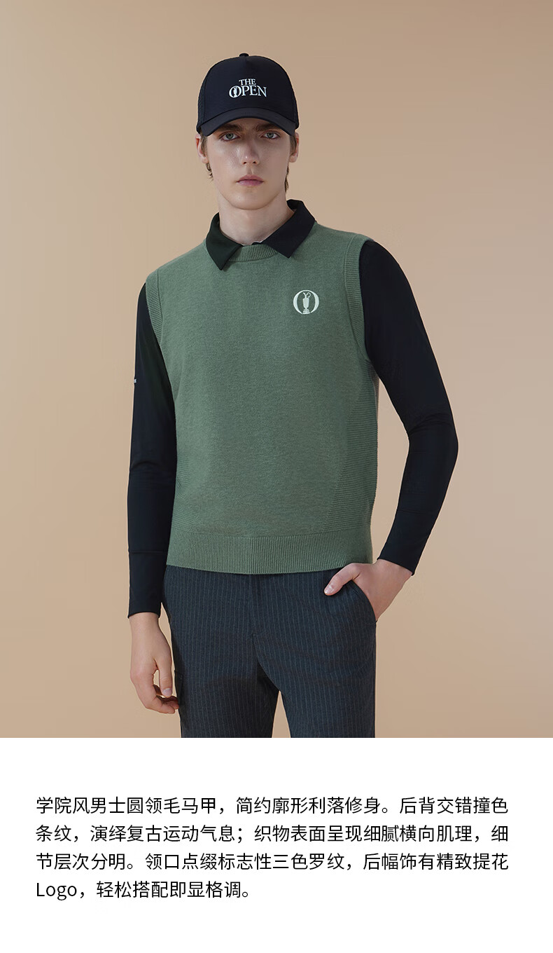 THE OPEN CHAMPIONSHIP英国公开赛高尔夫服装男装马甲25秋冬柔软保暖弹力锁温运动背心 灰色 S