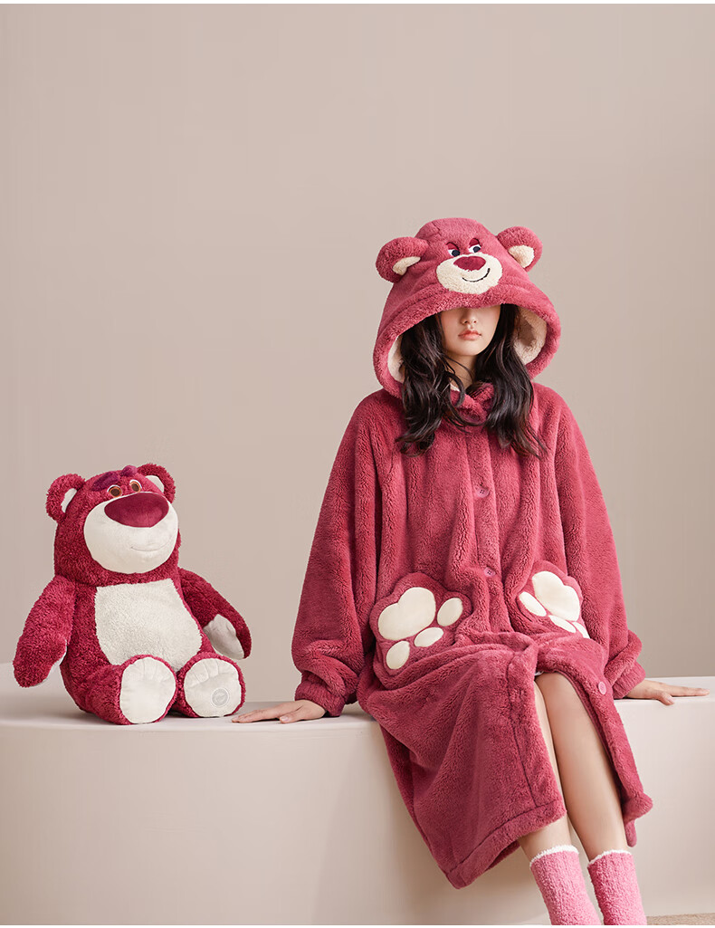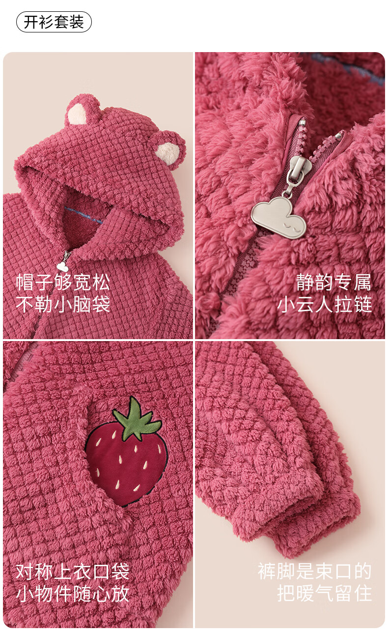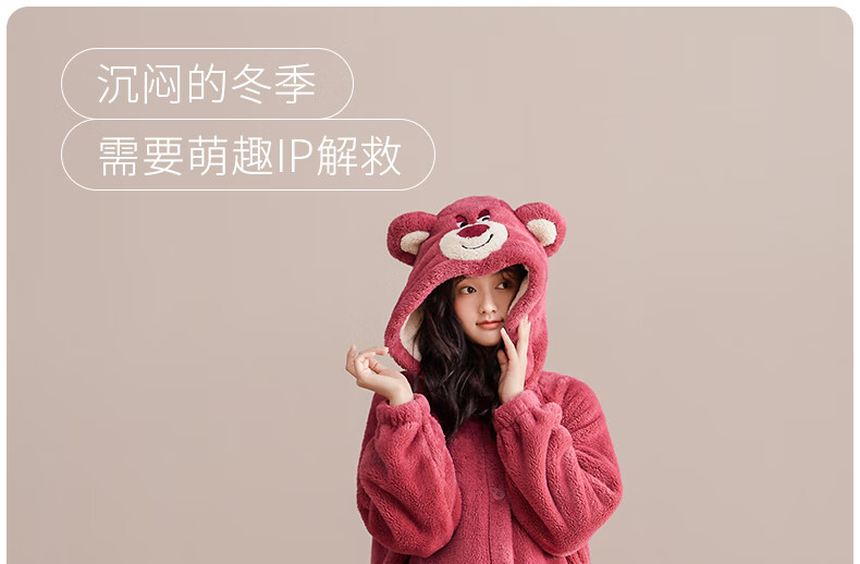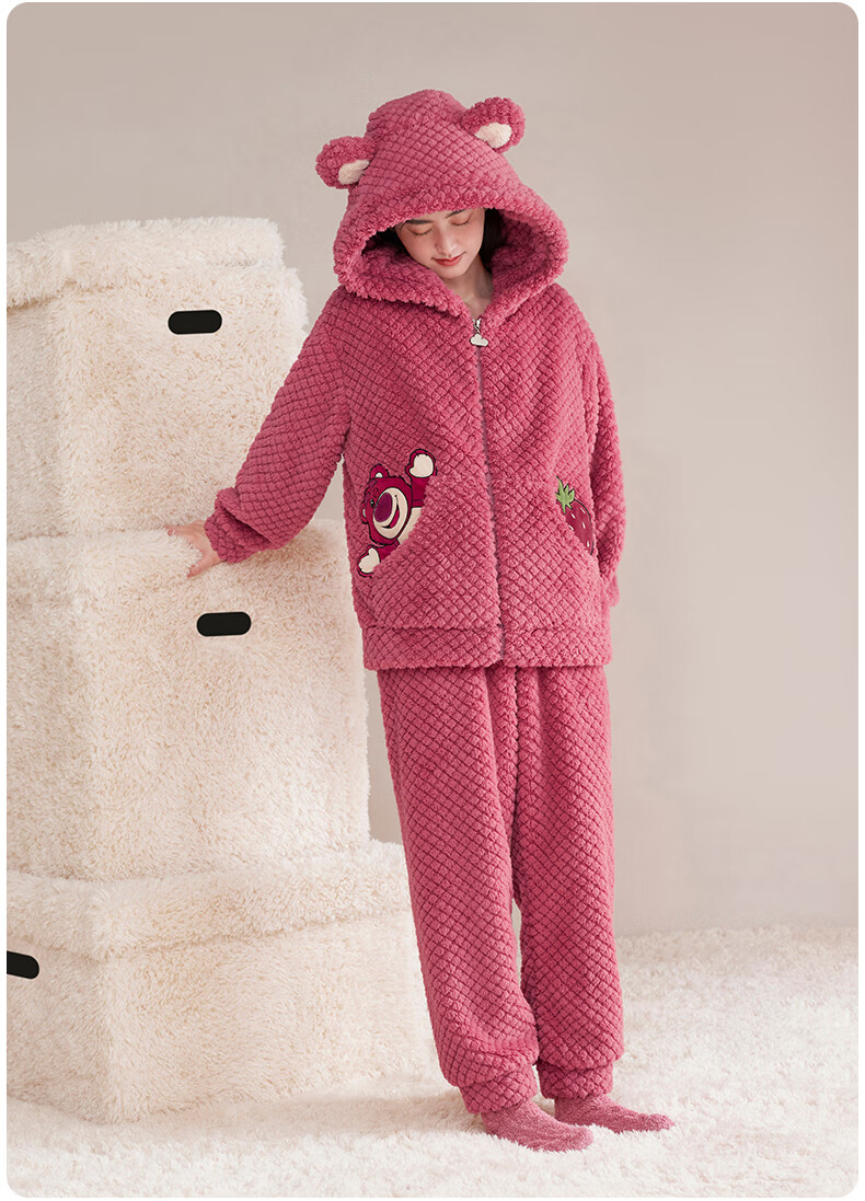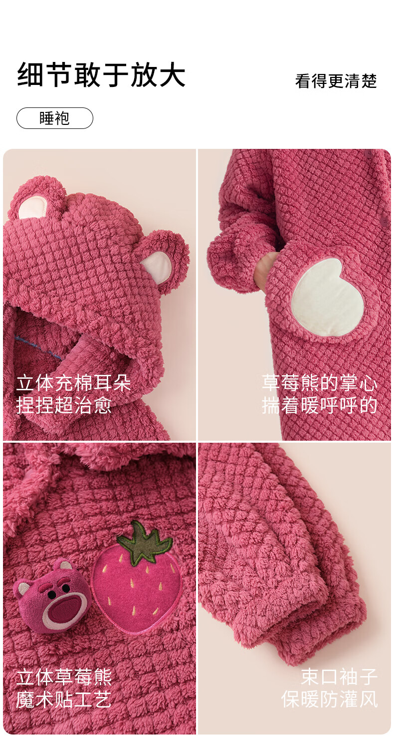 静韵【超柔软】草莓熊睡袍女秋冬珊瑚绒加绒加厚睡衣套装