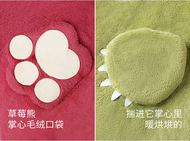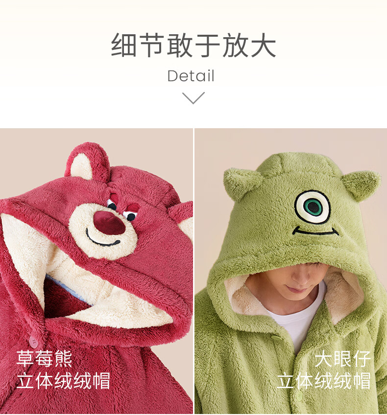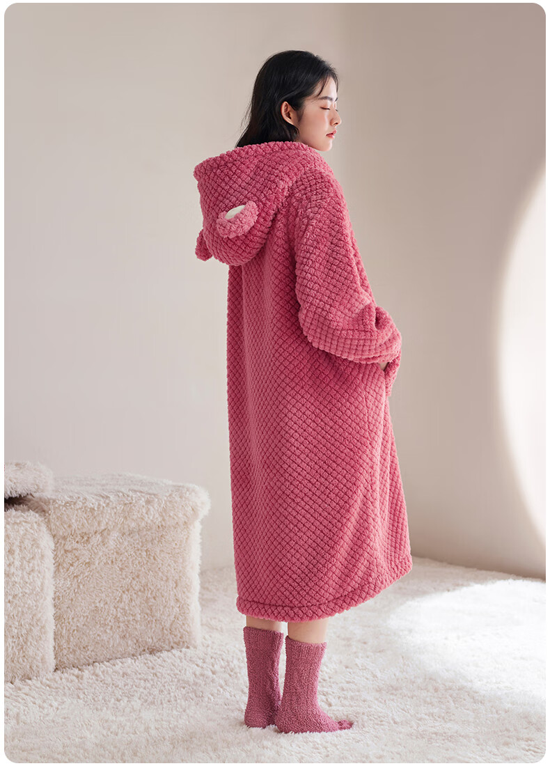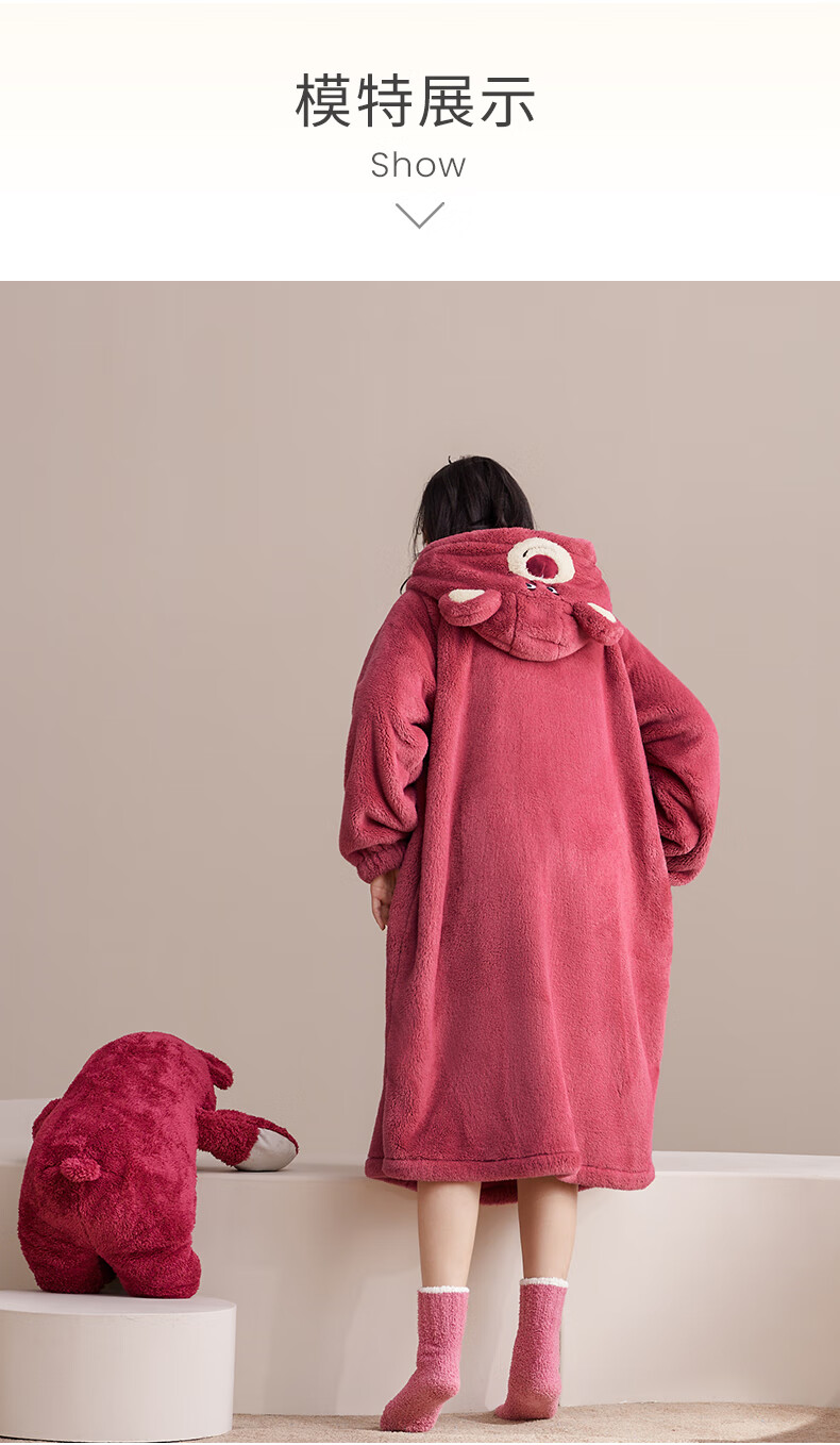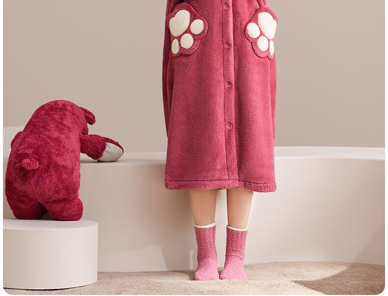 静韵【超柔软】草莓熊睡袍女秋冬珊瑚绒加绒加厚睡衣套装