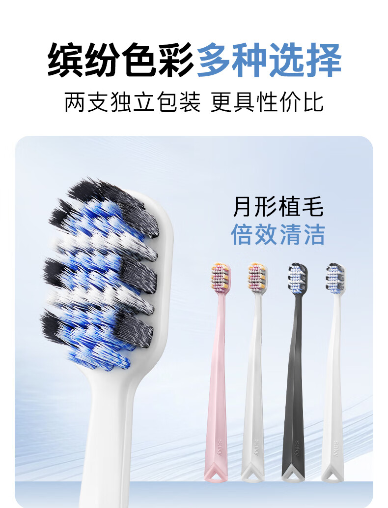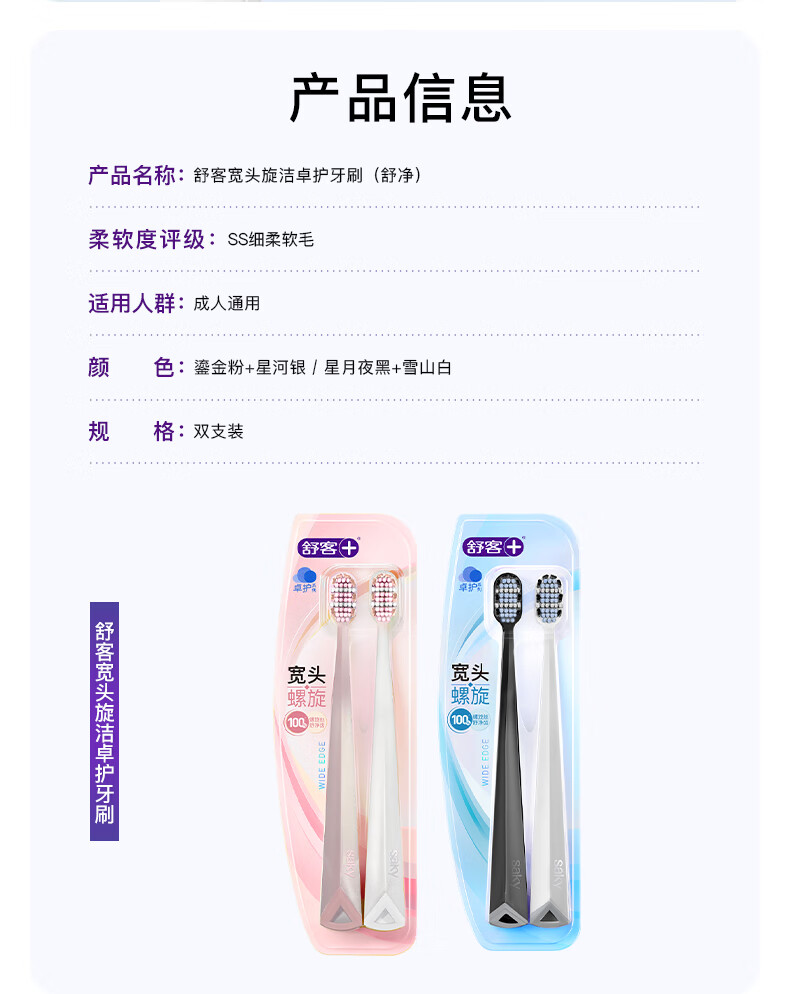 舒客46孔宽头牙刷4支装肖战同款软毛偏硬去牙渍双螺旋刷丝深洁情侣刷