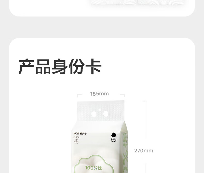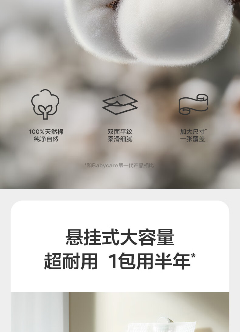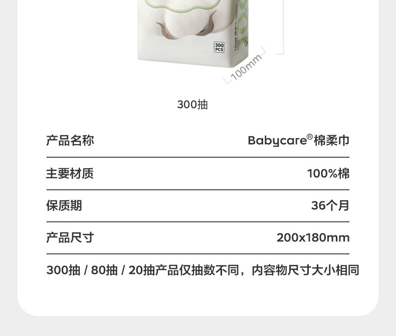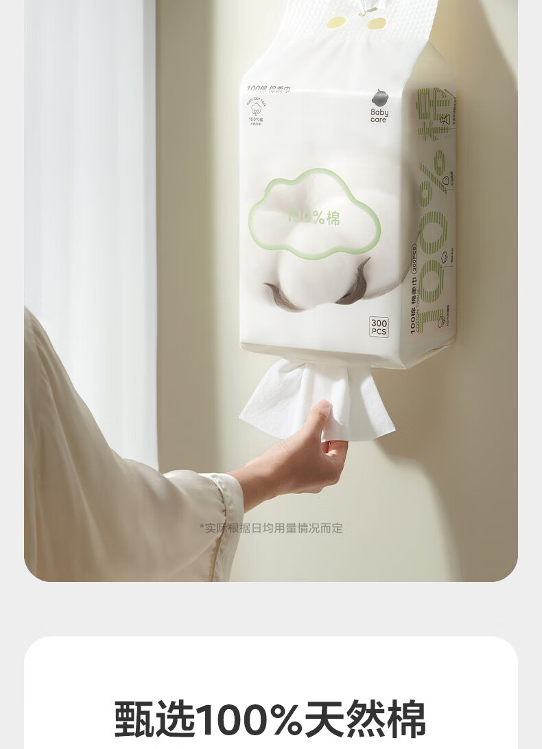 babycare100%棉婴儿棉柔巾加厚加大洗脸巾干湿两用纯棉300抽3包