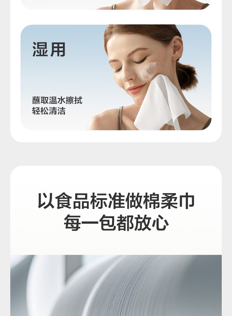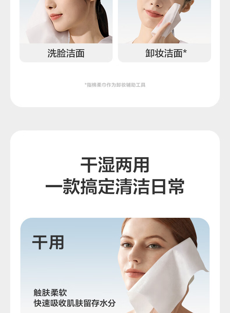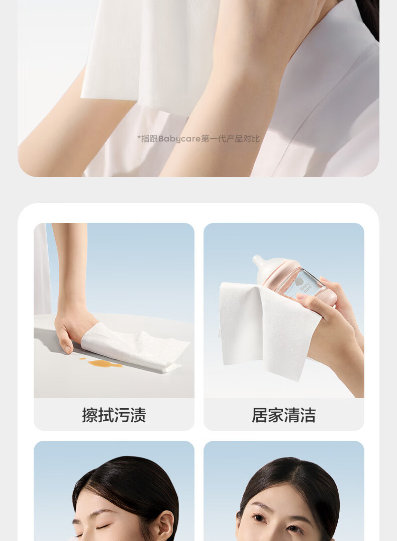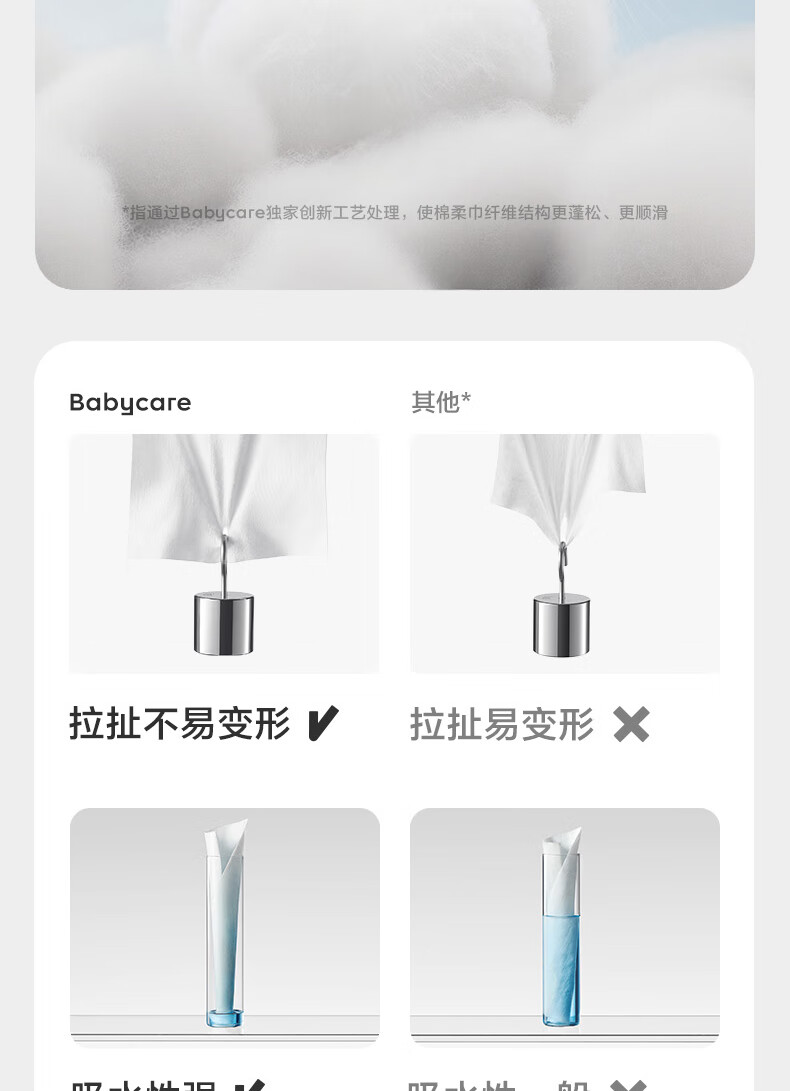 babycare100%棉婴儿棉柔巾加厚加大洗脸巾干湿两用纯棉300抽3包