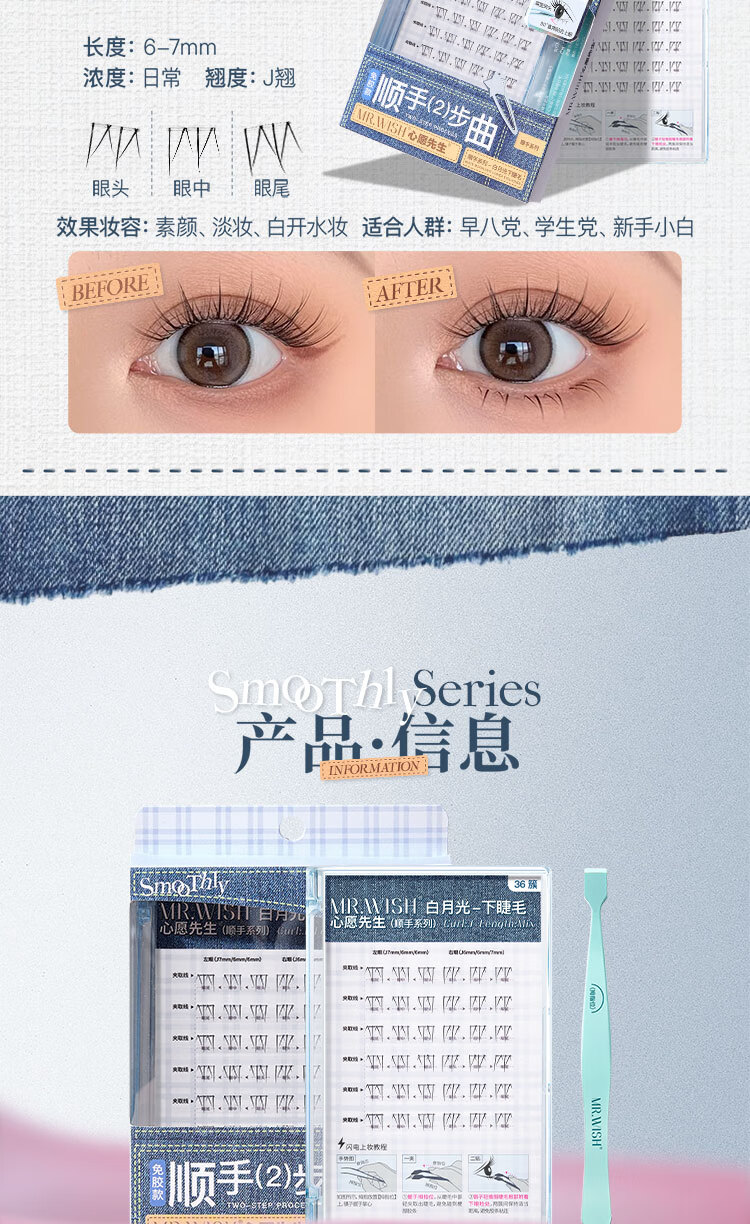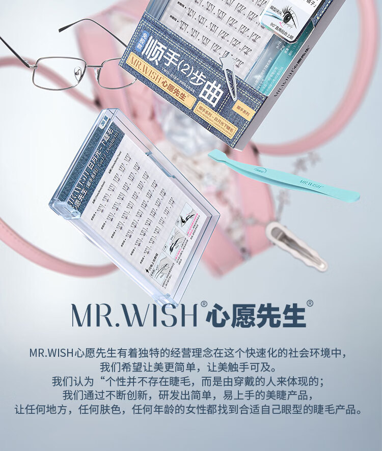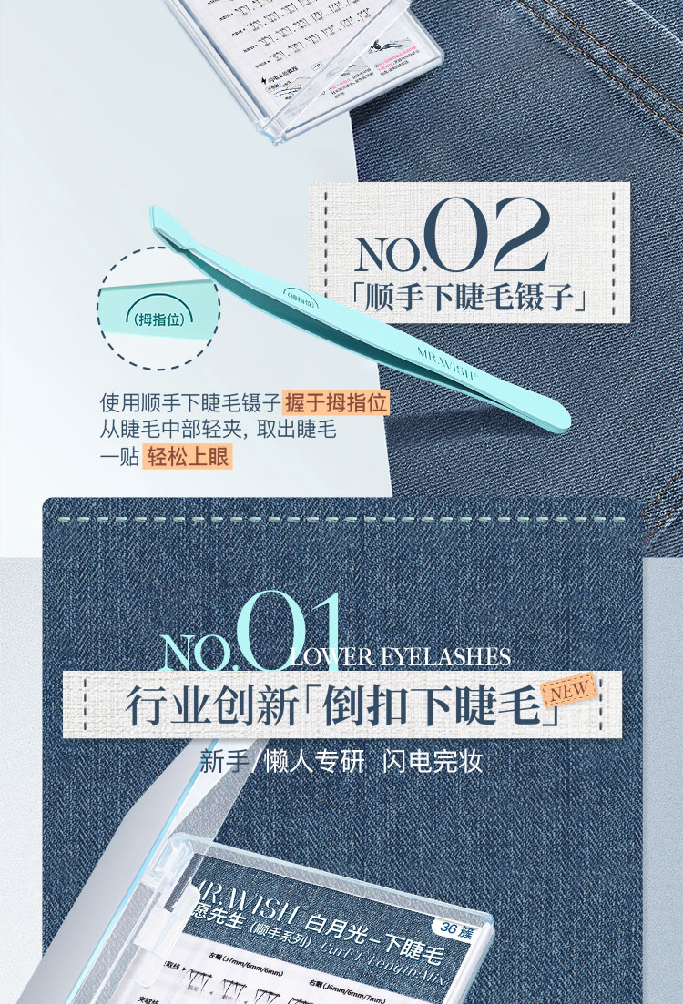 屈臣氏MR.WISH心愿先生顺手系列白月光 免胶下睫毛+镊子套组