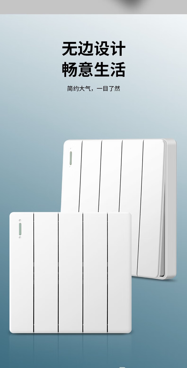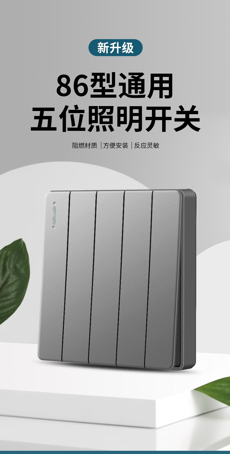 国际电工家用86型客厅照明五开单控灯开关5开一路双控墙壁暗装5联浴霸面板 五开【四开单控+一开双控】白