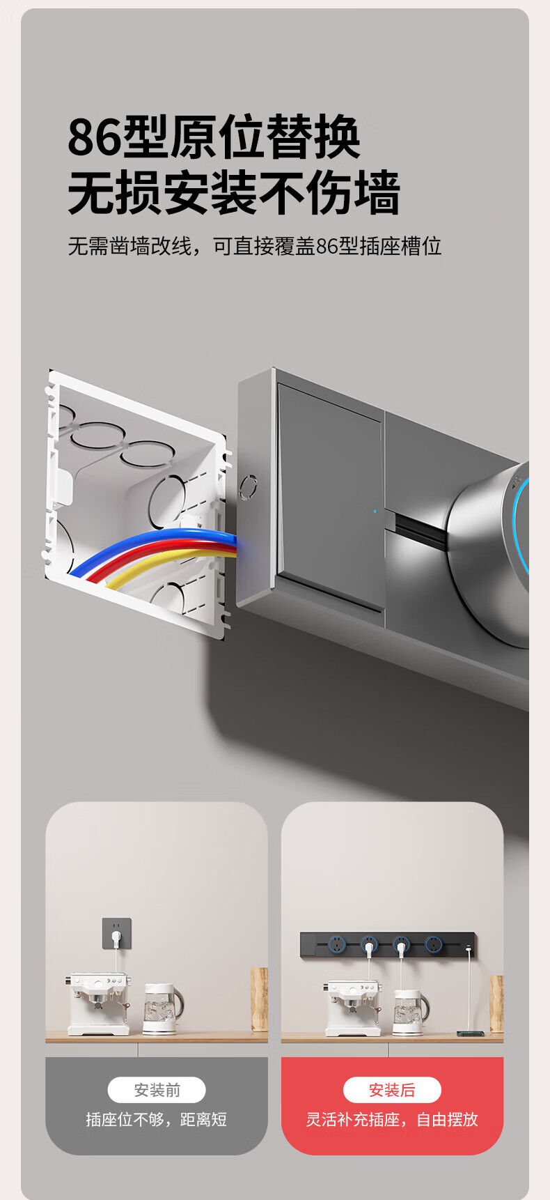 小米墙壁插座三孔16A五孔10A AG玻璃面板高温阻燃无框面板一体成型 小米墙壁插座 五孔10A 白色