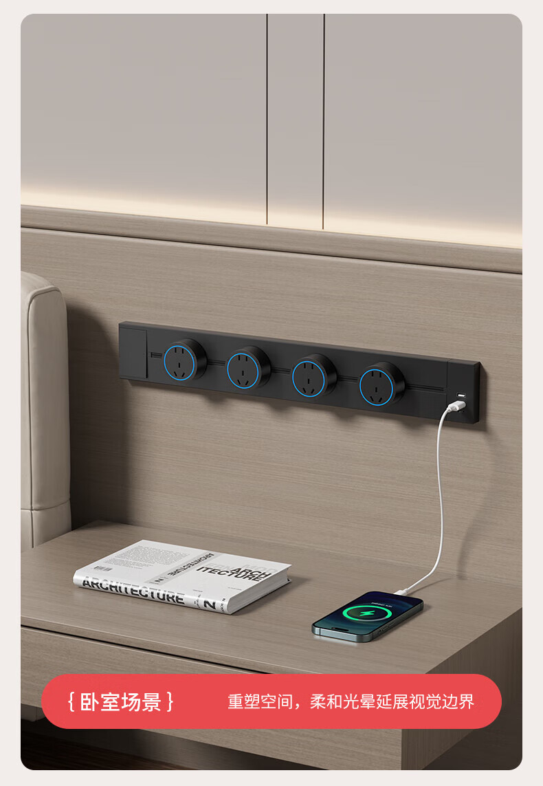 国际电工快充轨道插座带开关总控可移动餐边柜滑轨插排厨房电力导轨usb-c 带总控-30厘米轨道白+2个大五孔+快充一体U/C