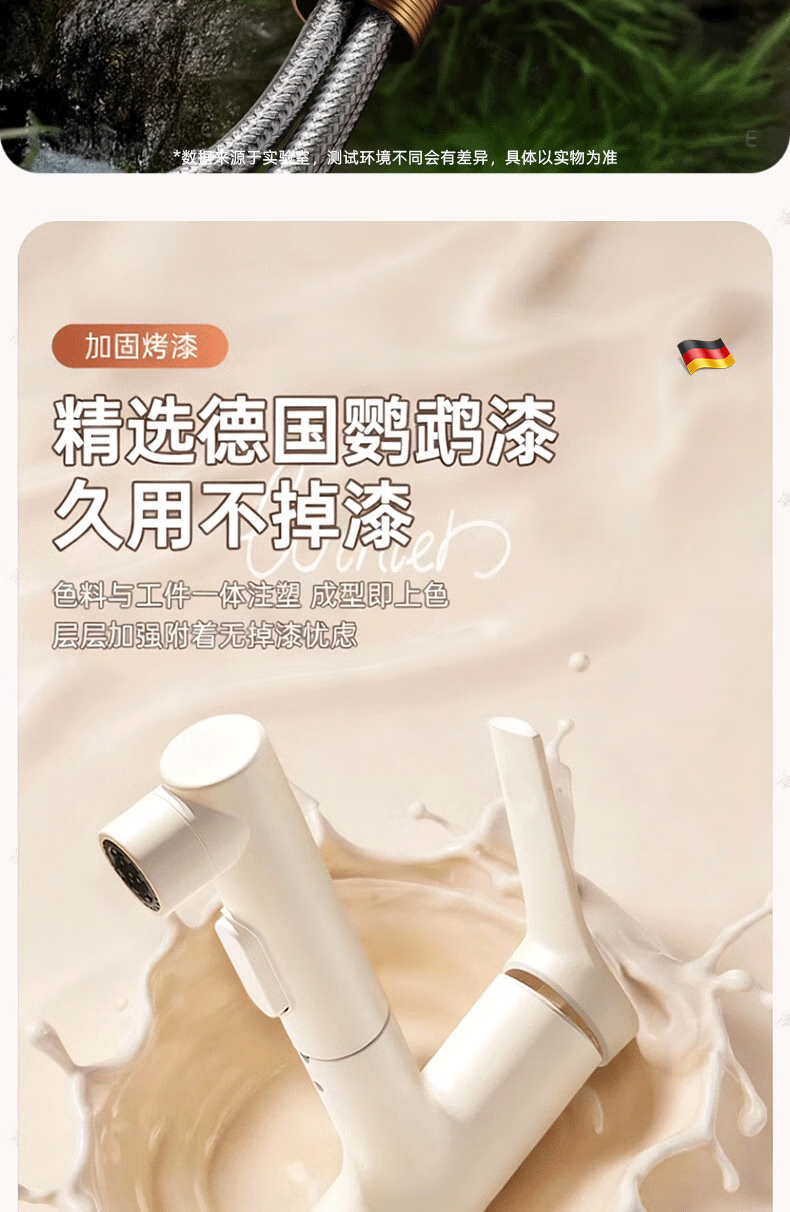 X-GRKE【德国】全铜面盆水龙头洗手盆洗脸盆洗手池卫生间抽拉式冷热龙头 全铜主体【3档抽拉上涌出水】奶油白 全铜上涌抽拉3档丨赠80cm冷热进水管