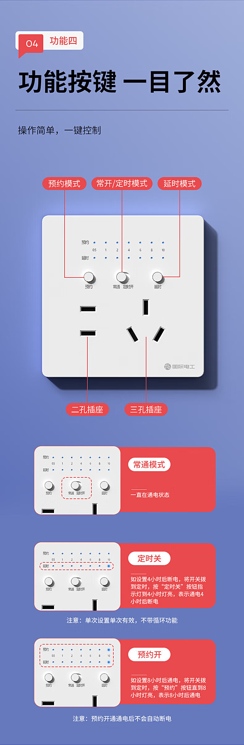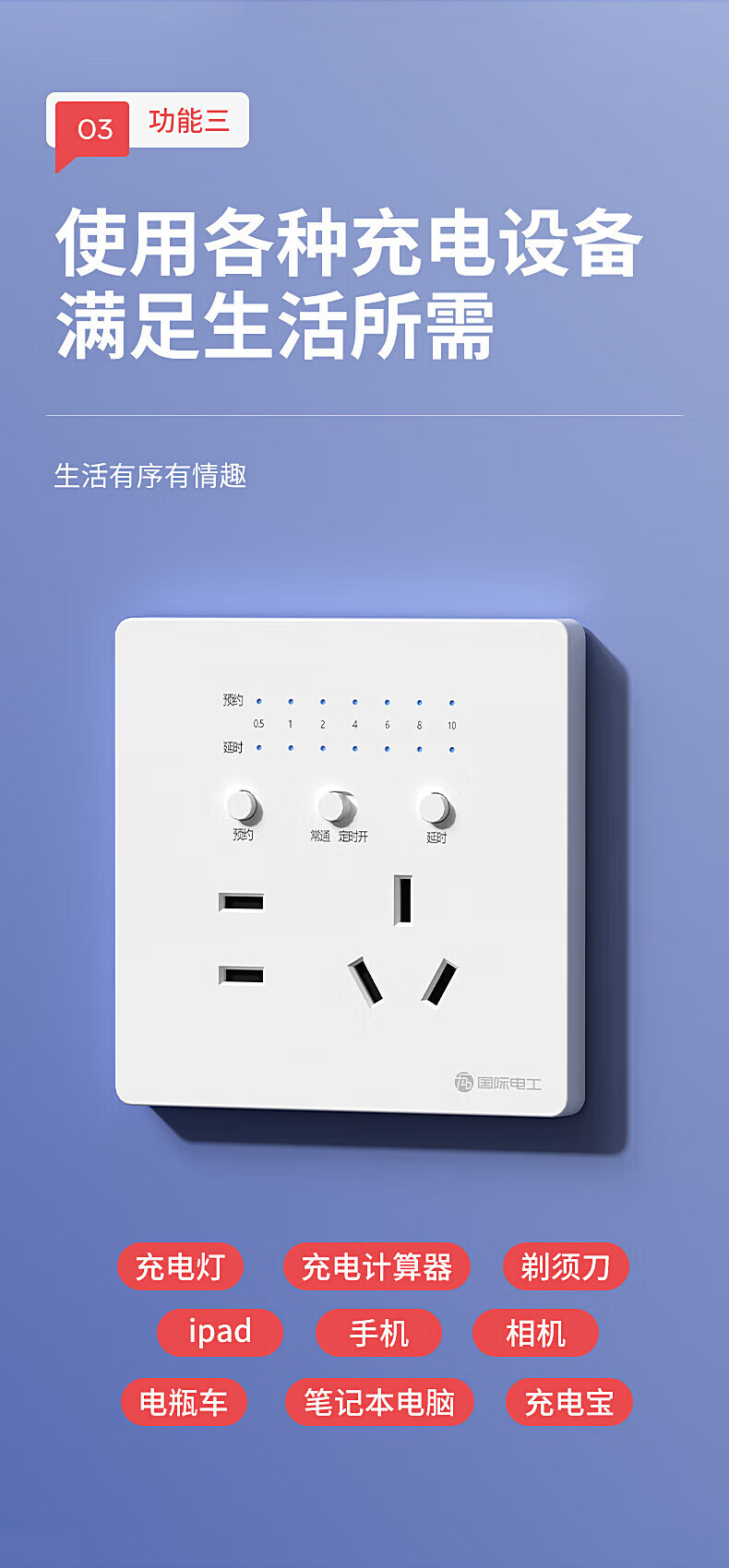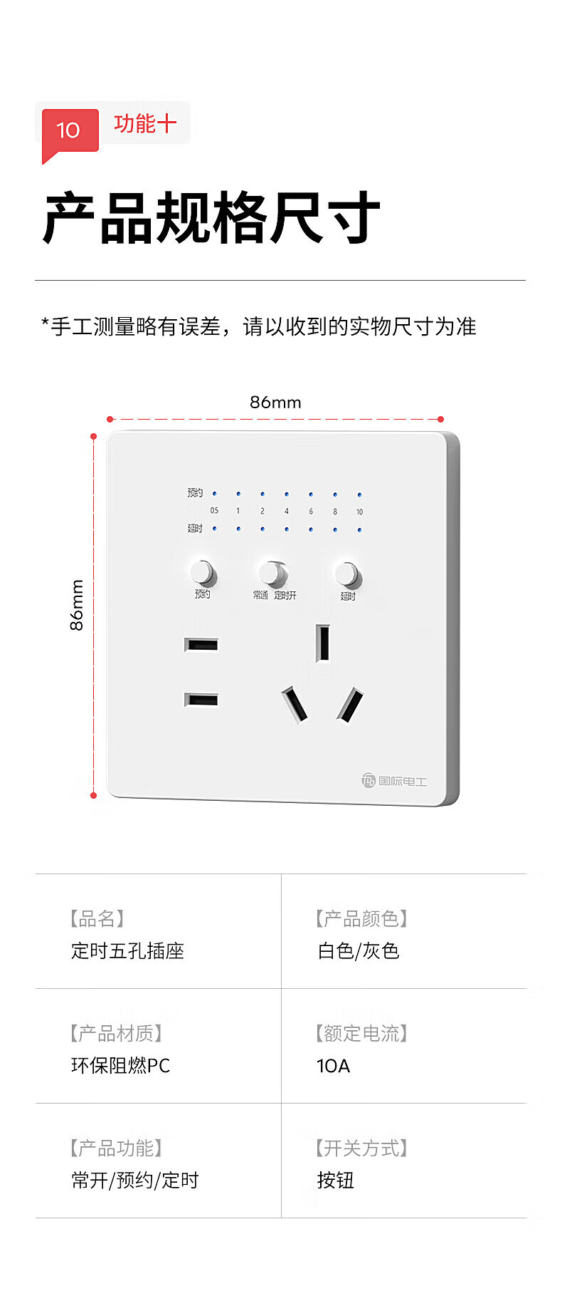 国际电工86型暗装定时五孔插座自动开关断电墙壁预约定时插座多功能面板 暗装86型五孔定时插座【白色】