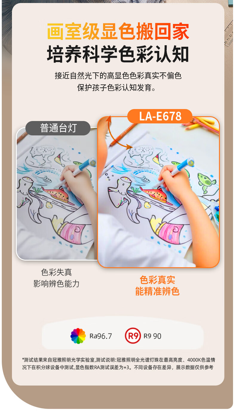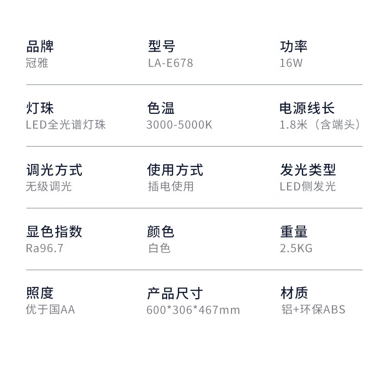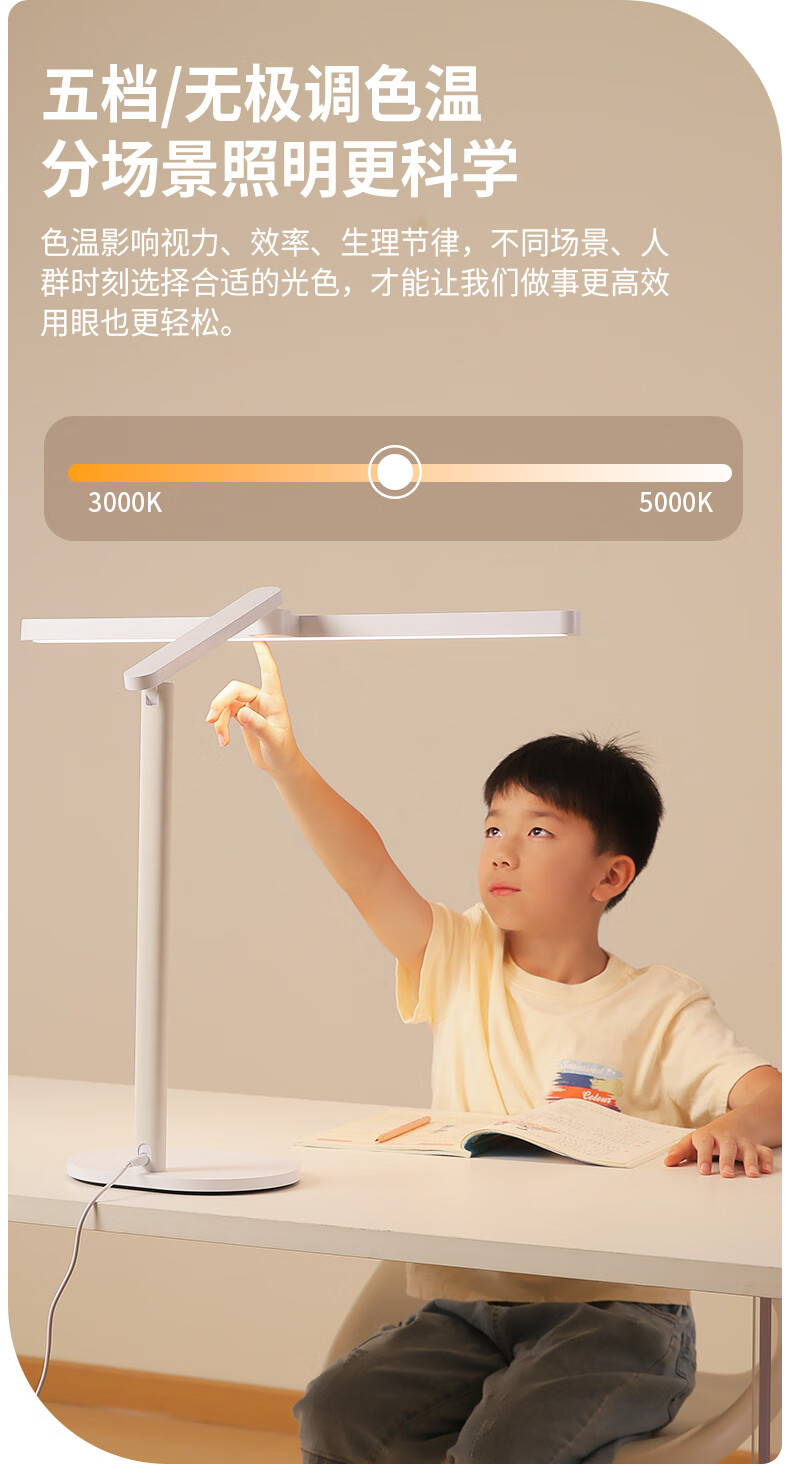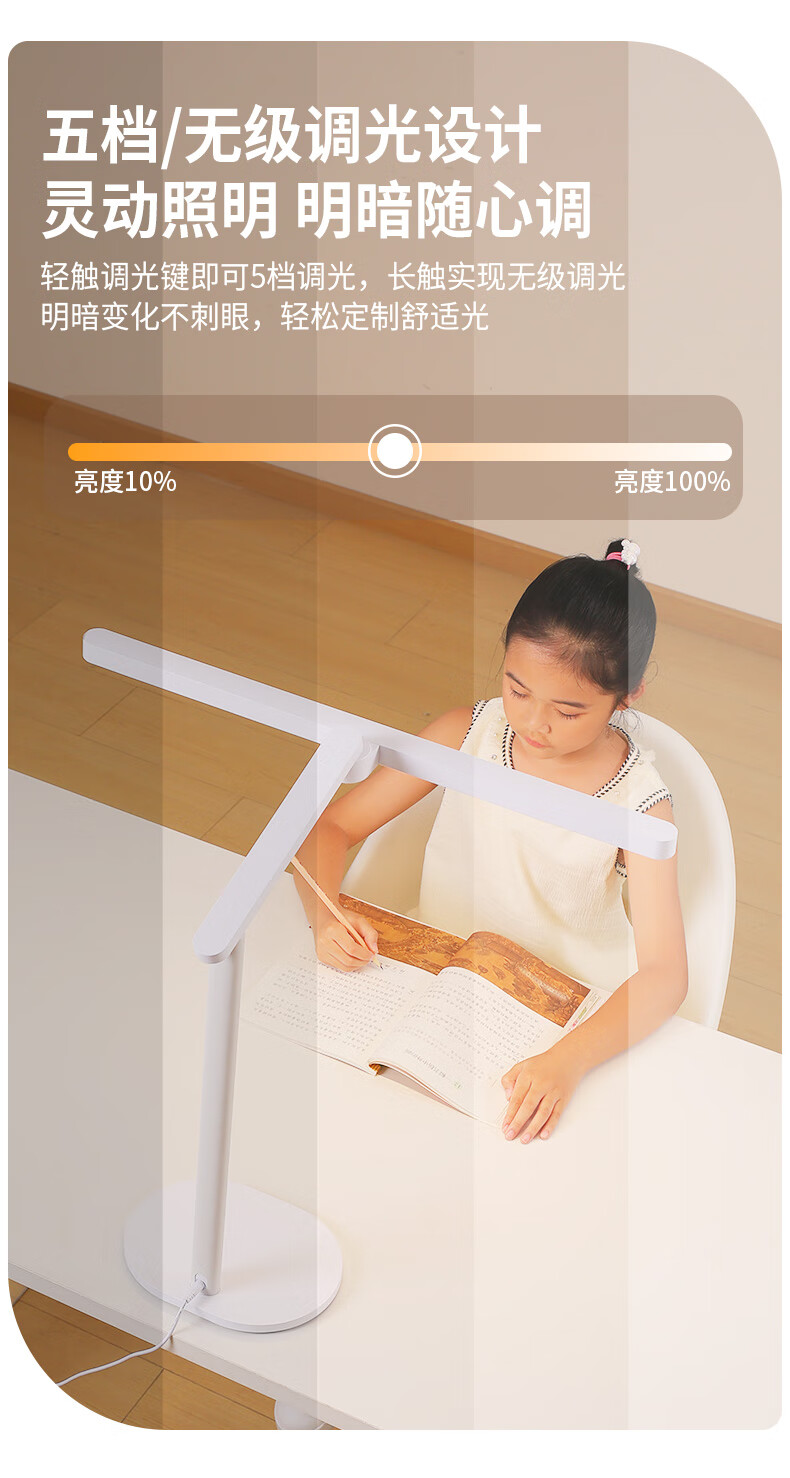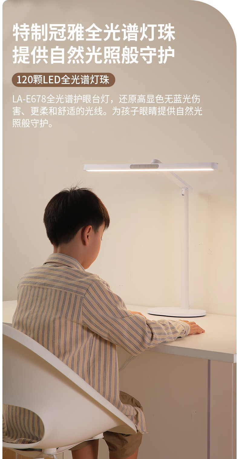 冠雅国AA级护眼台灯儿童学生学习阅读专用灯全光谱护眼灯 E678白色【调光调色温】