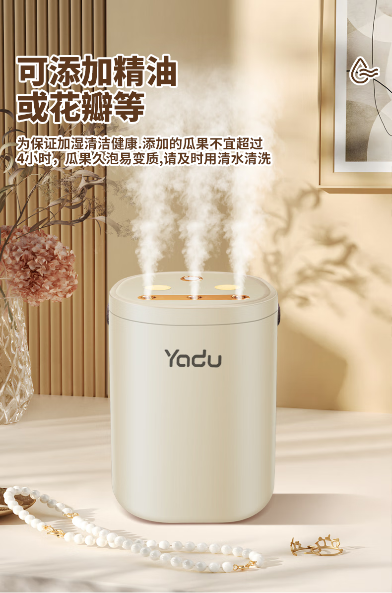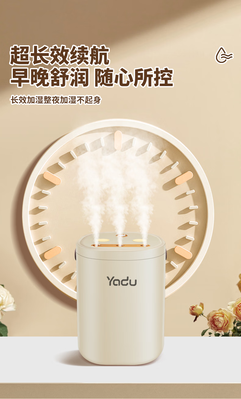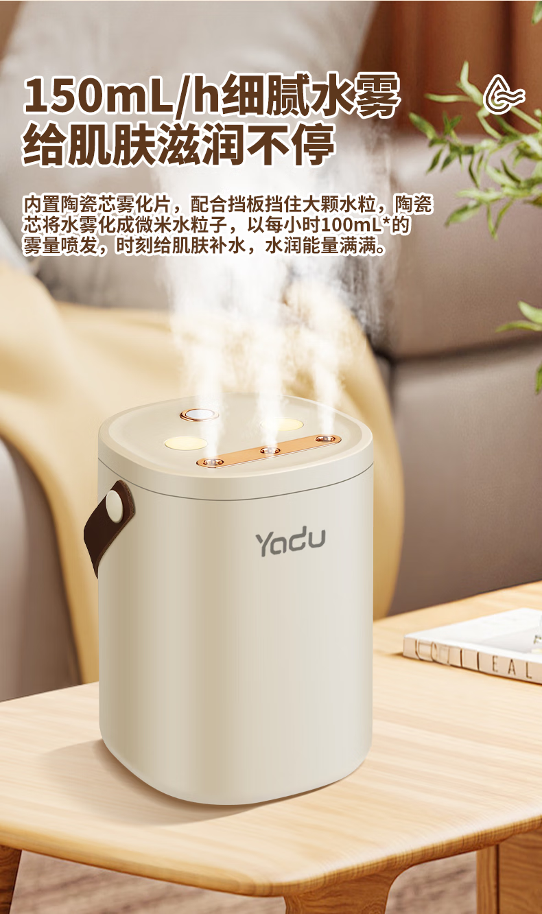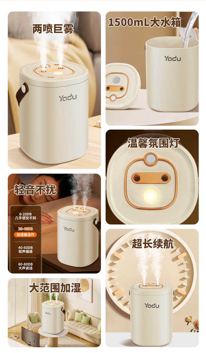 亚都(YADU)加湿器家用轻音卧室办公室桌面空气净化香薰喷雾大容量 经典双孔喷雾【USB插电款】带夜灯