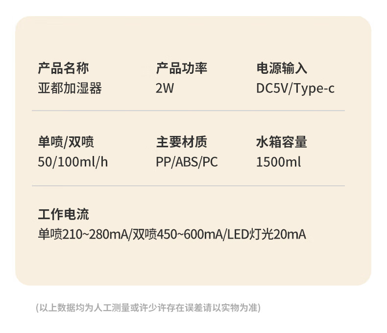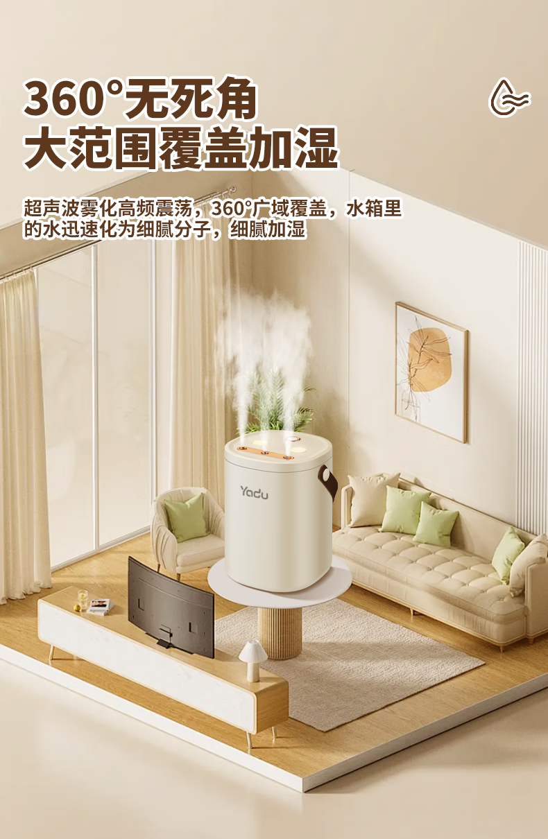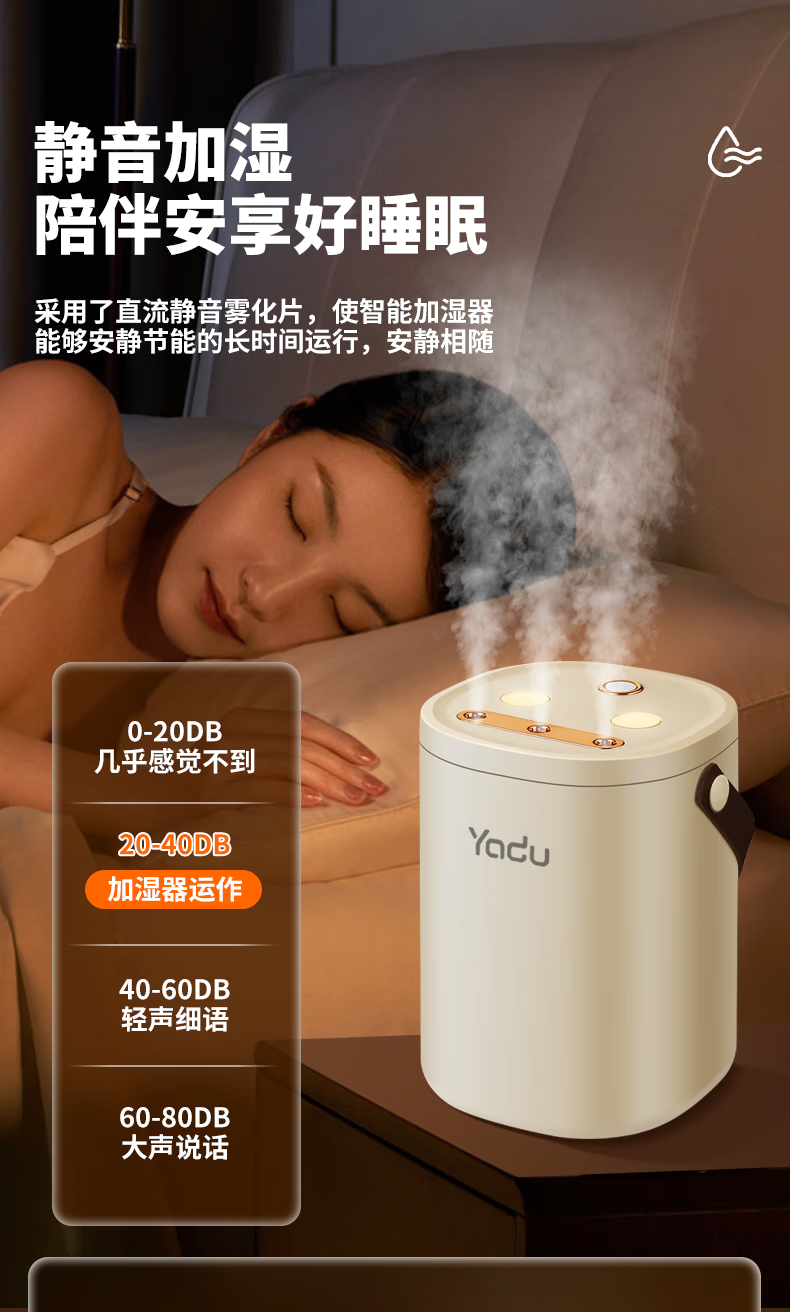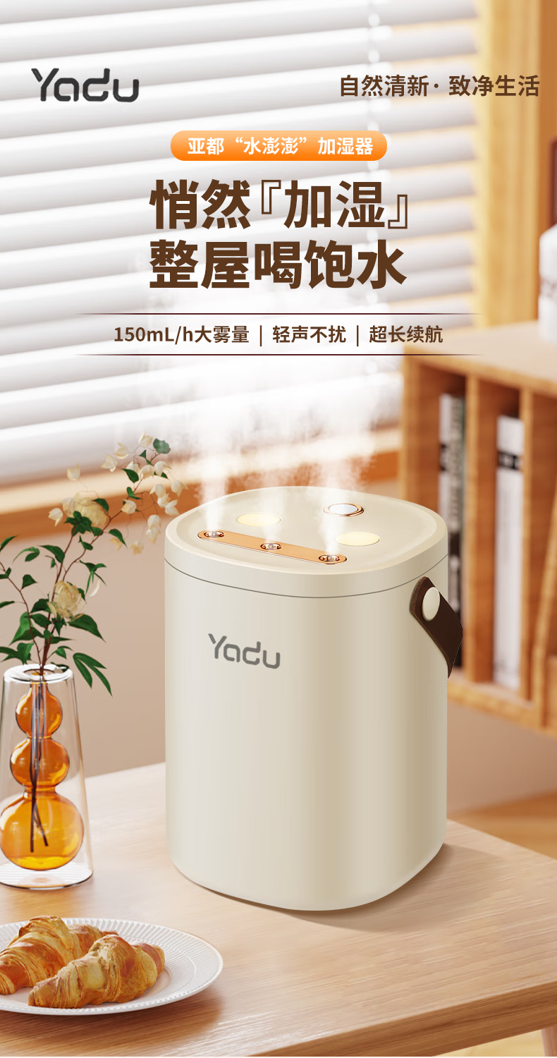亚都(YADU)加湿器家用轻音卧室办公室桌面空气净化香薰喷雾大容量 经典双孔喷雾【USB插电款】带夜灯