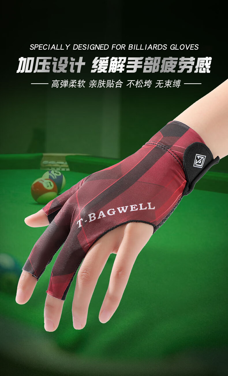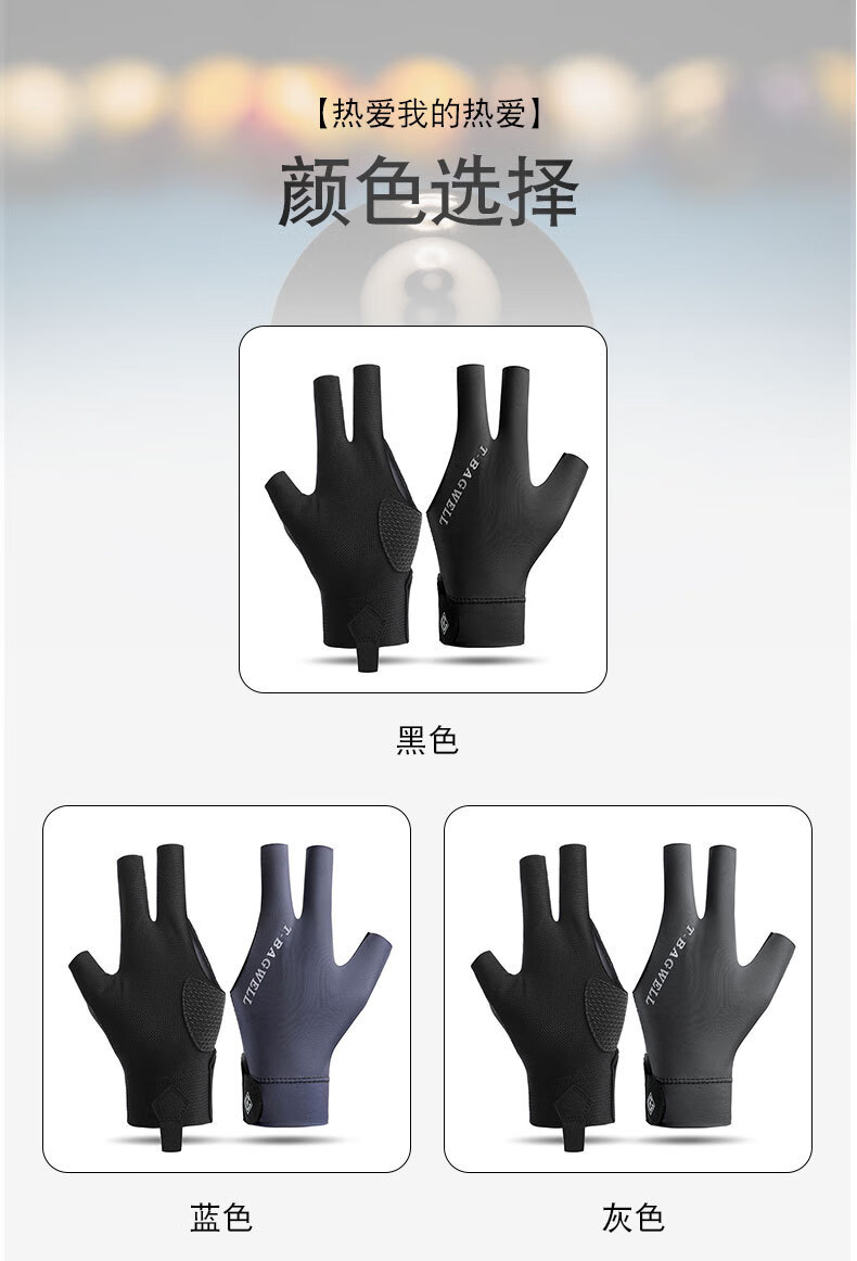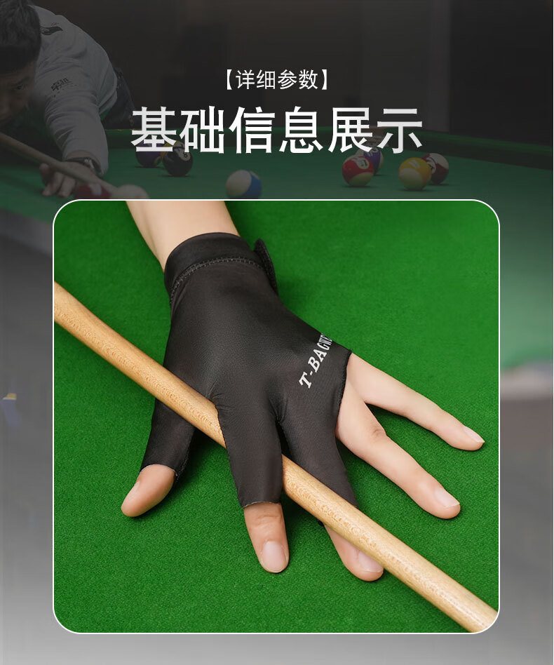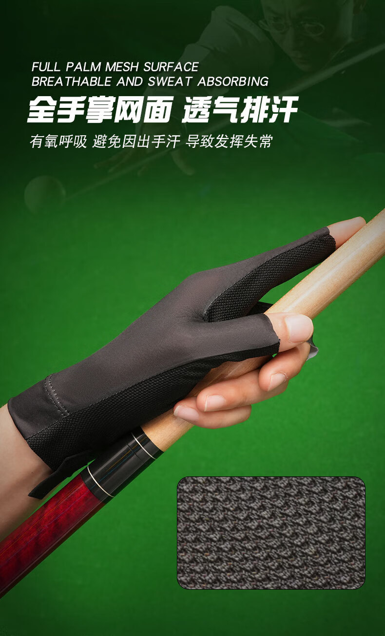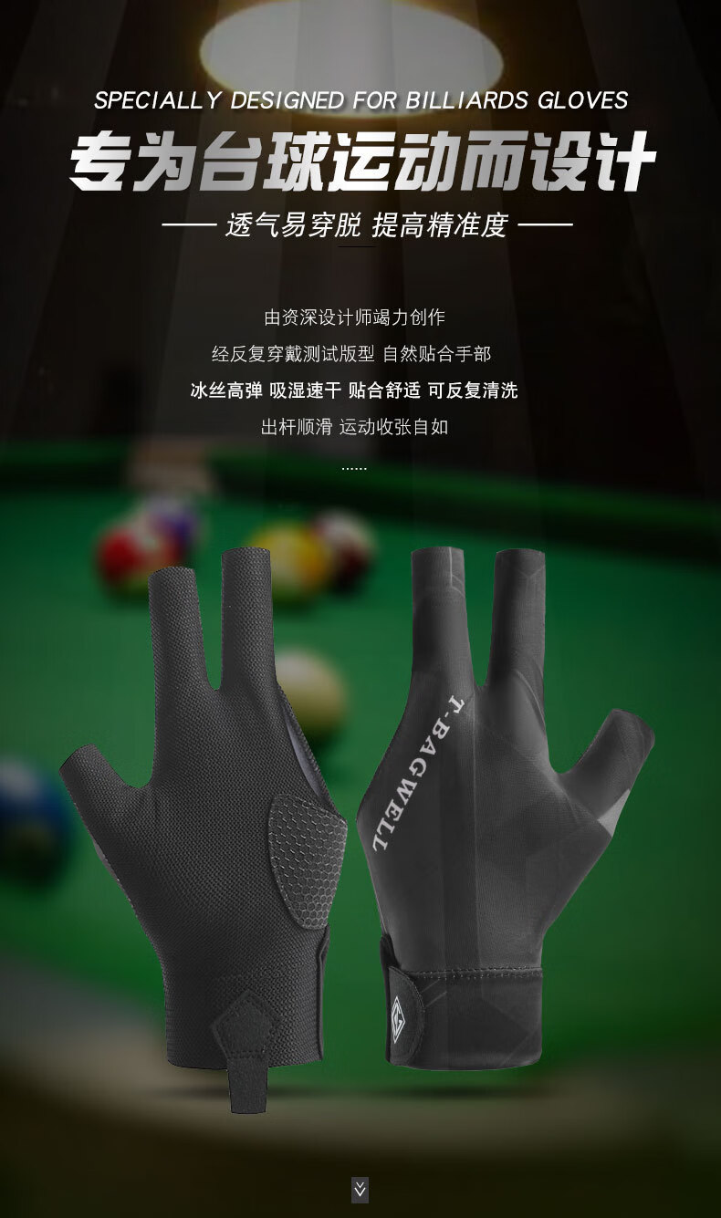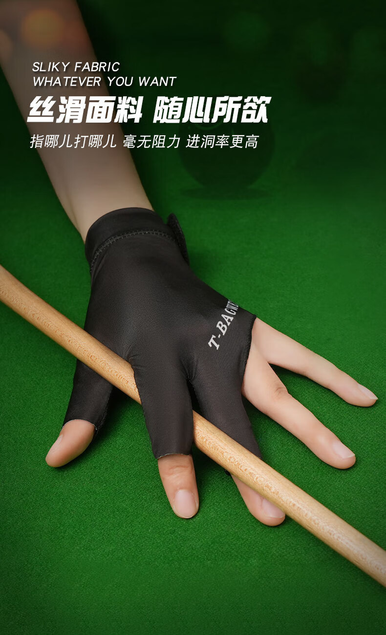 台球手套男漏三指冰丝透气防滑左手单只装桌球手套女T3 台球手套黑色