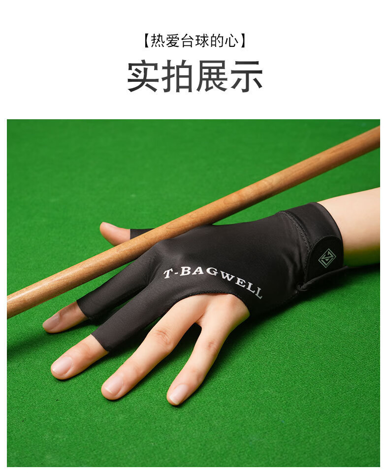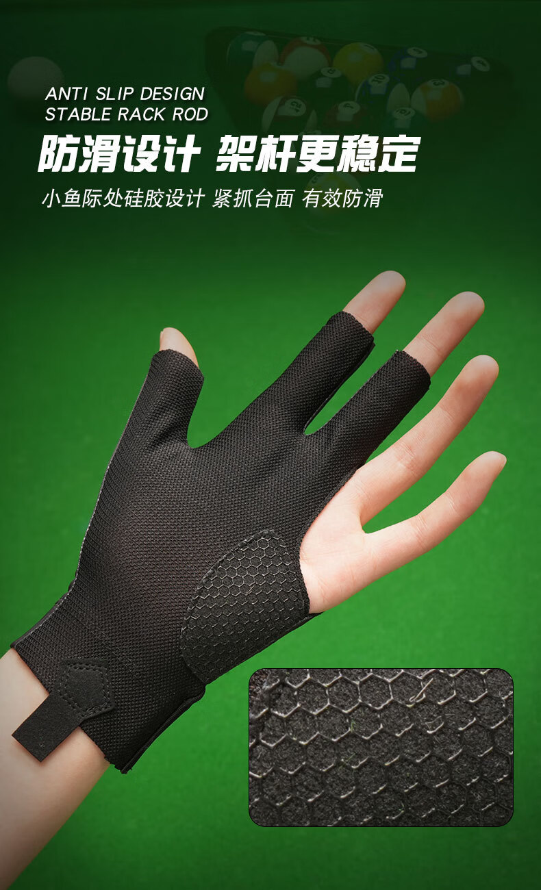 男女黑八斯诺克台球三指手套桌球手套露指防滑战术左手台球手套 黑色