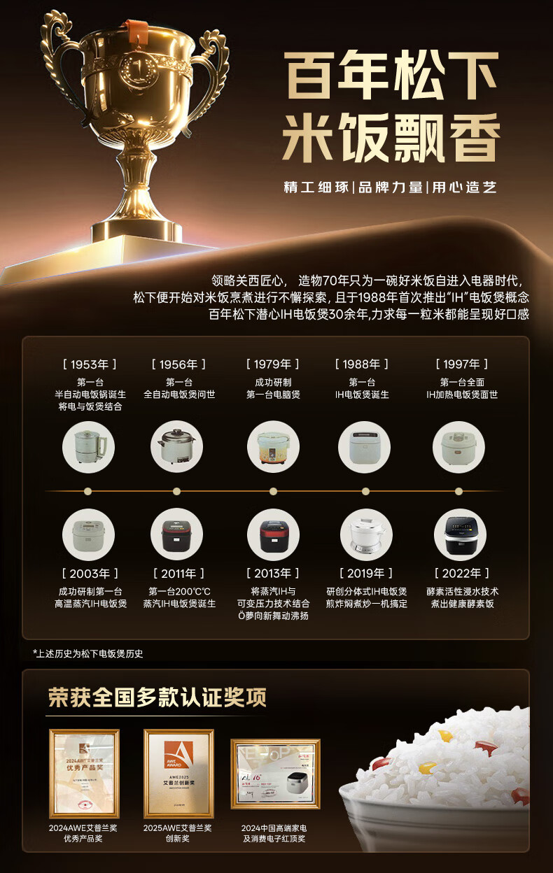 松下(Panasonic)【国家补贴20%】Xtra零零煲2.0电饭煲0涂层家用电饭锅4-5人IH无涂层不锈钢4升一级能效SR-HFS155-W