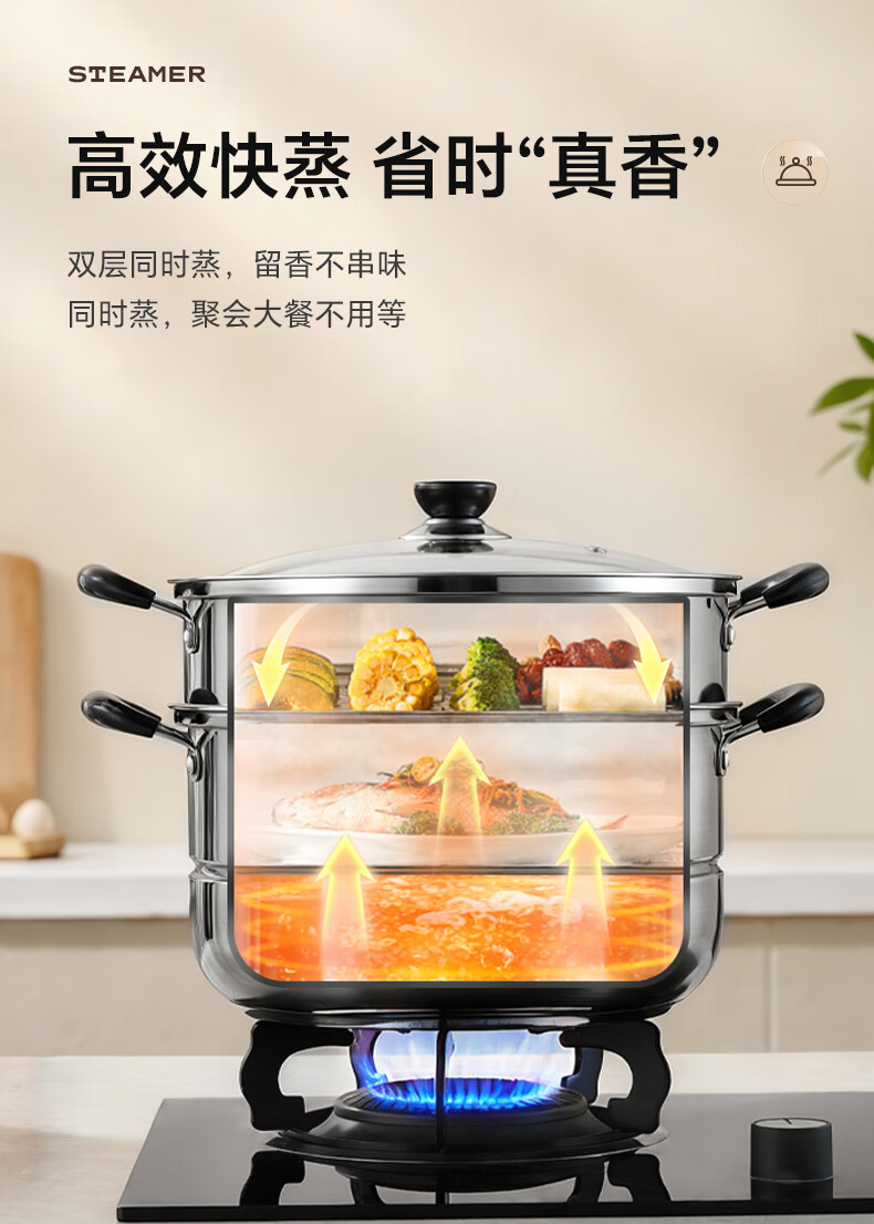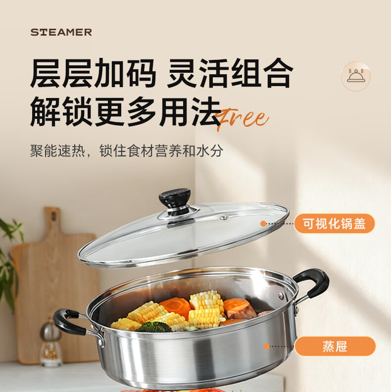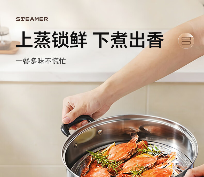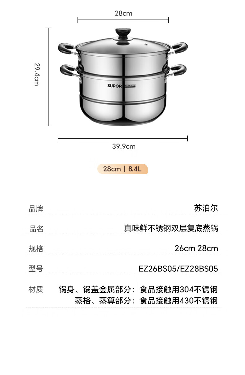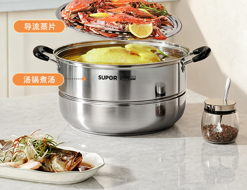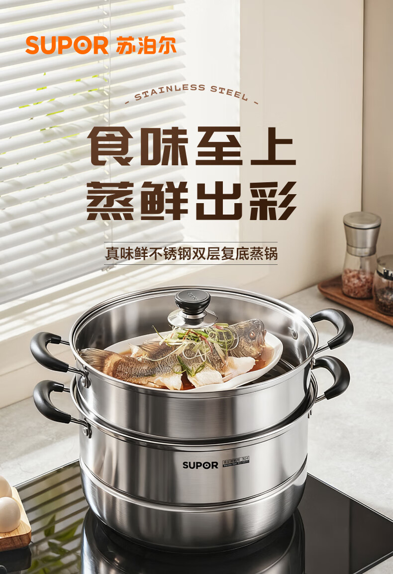 苏泊尔SUPOR 蒸锅真味鲜不锈钢双层复底28cm蒸鱼锅汤锅蒸笼EZ28BS05