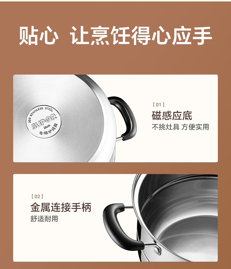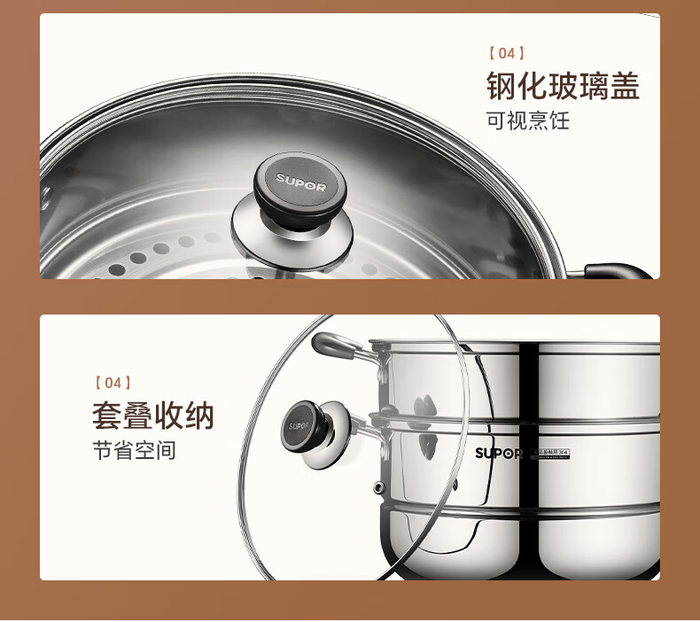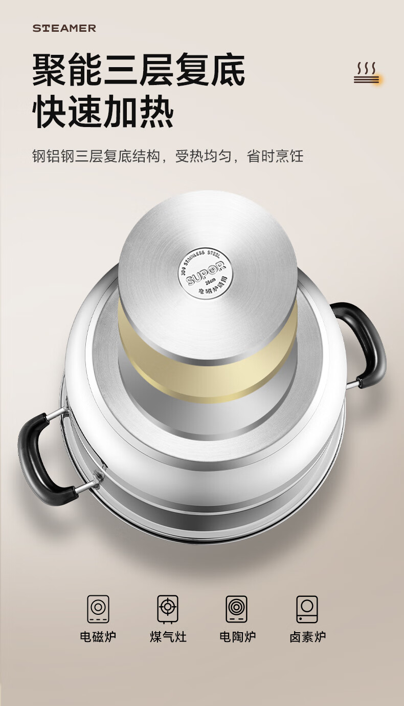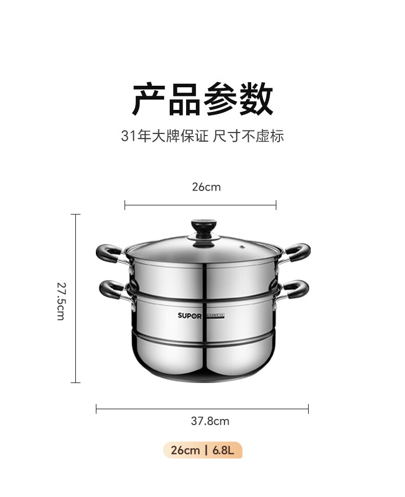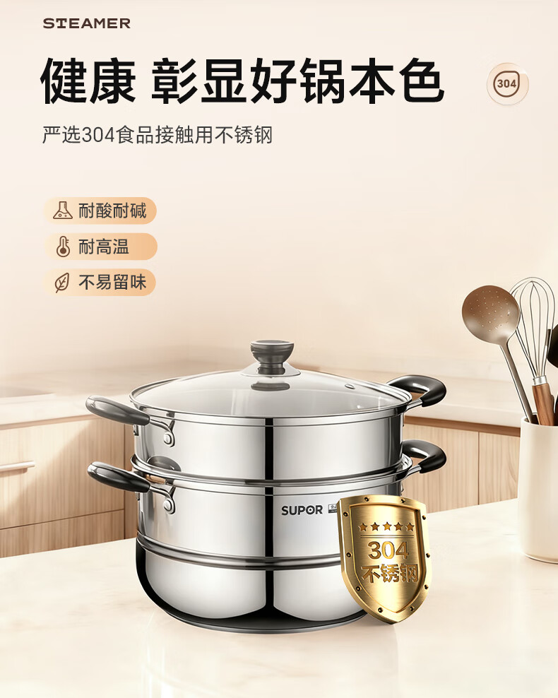 苏泊尔SUPOR 蒸锅真味鲜不锈钢双层复底28cm蒸鱼锅汤锅蒸笼EZ28BS05